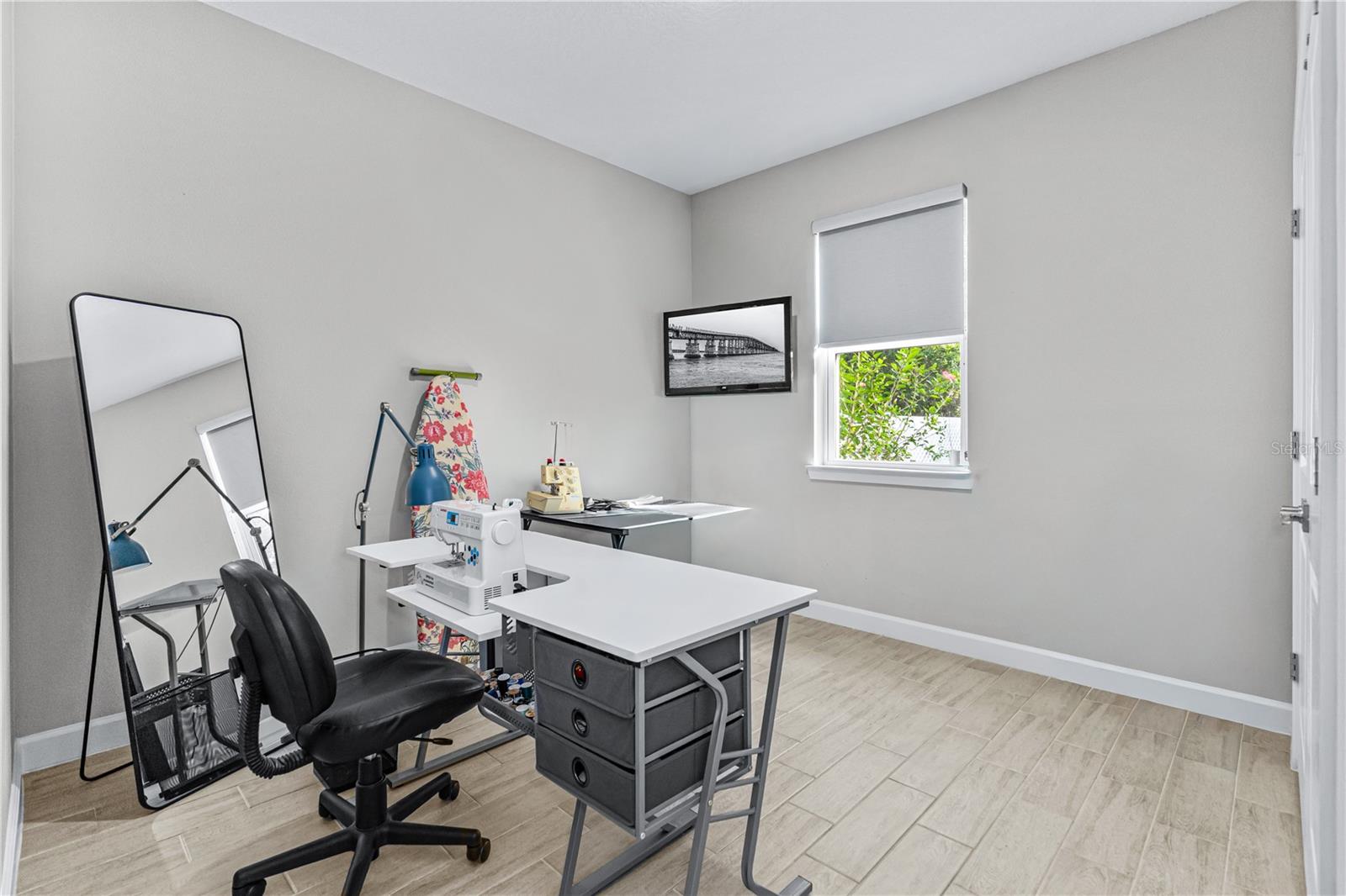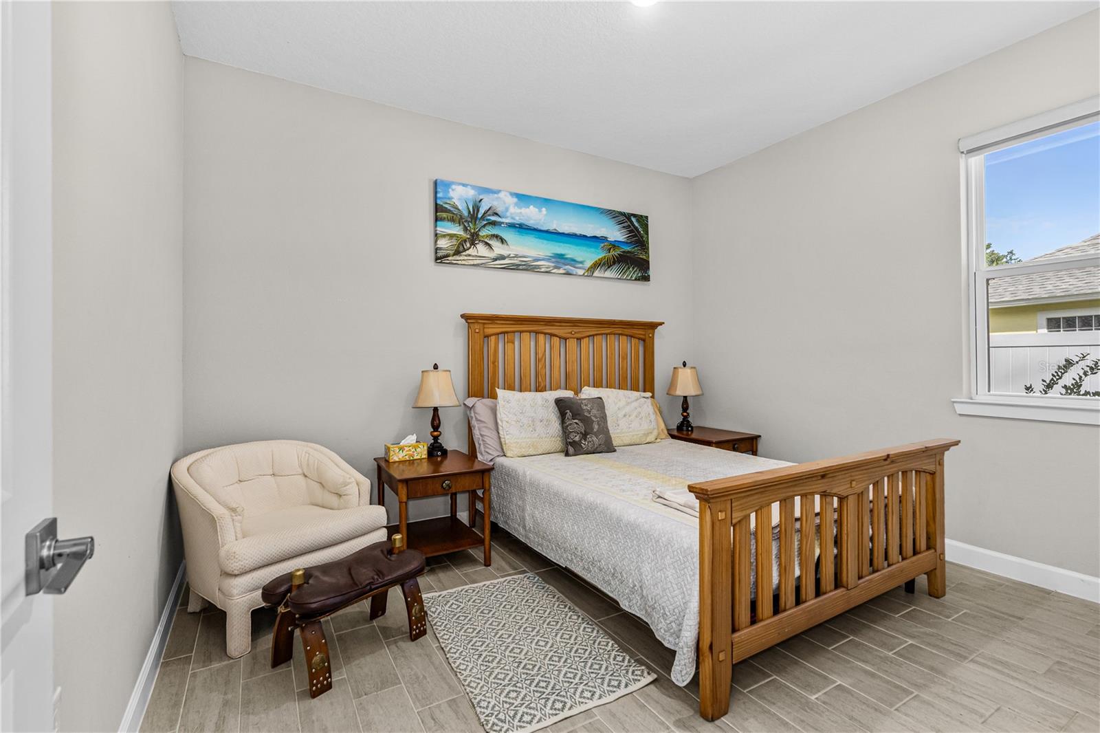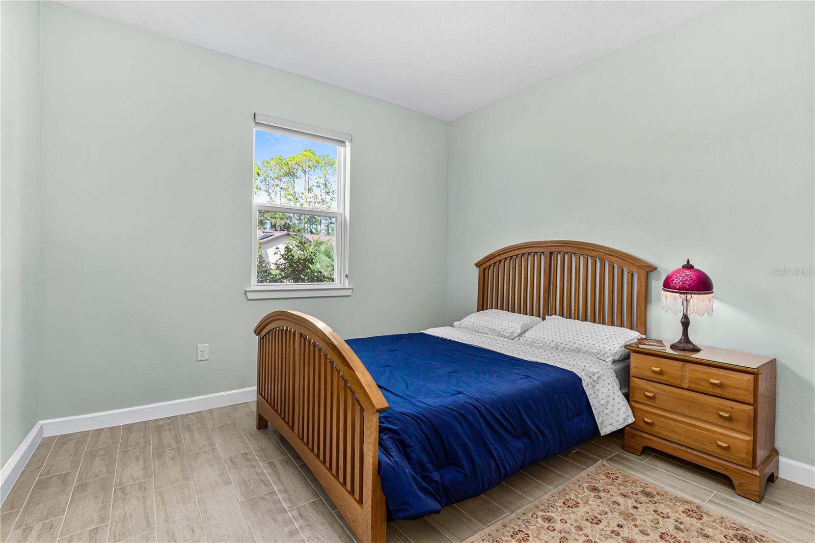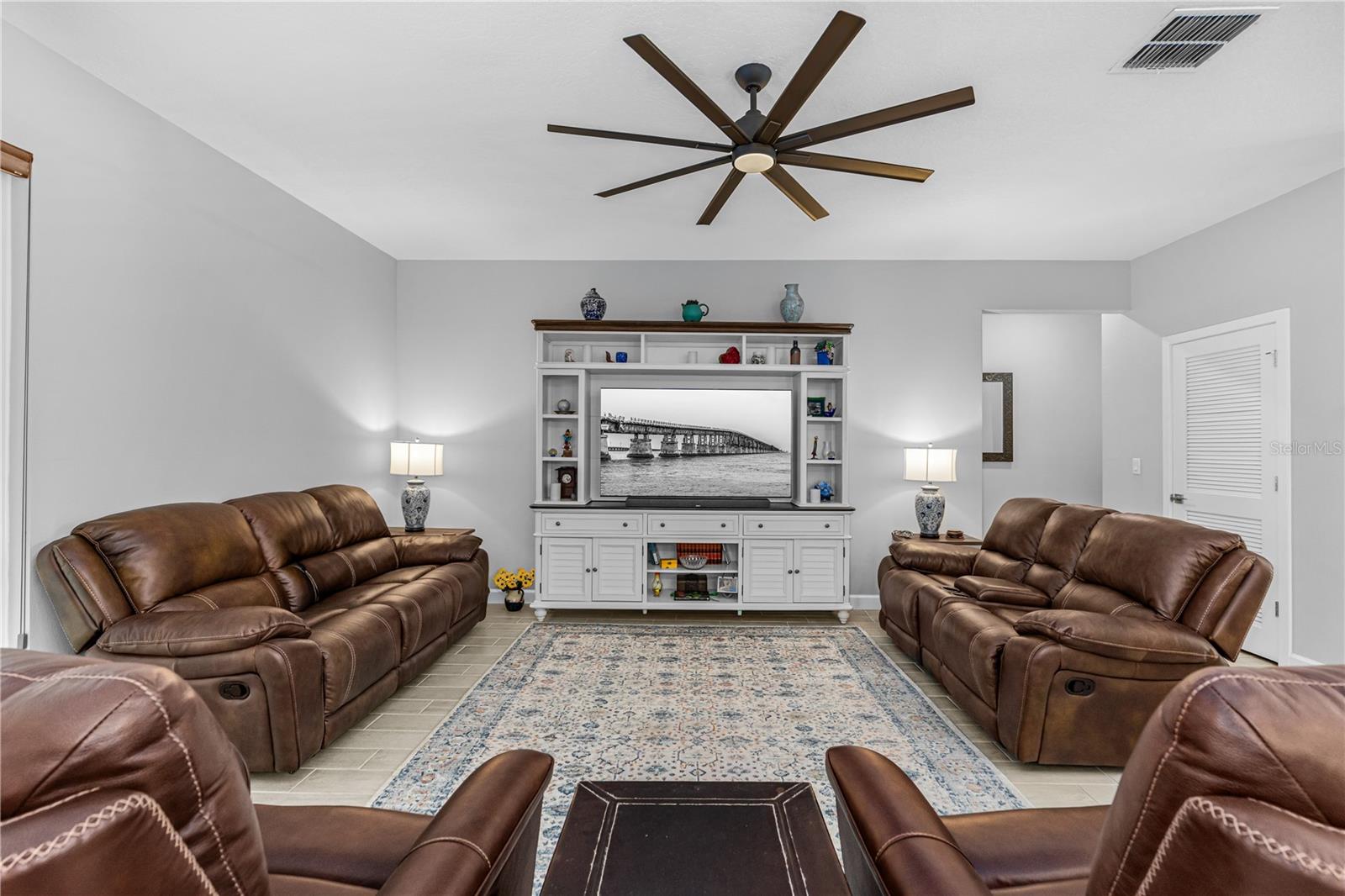 Discover Modern Florida Living! Experience comfort, efficiency, and natural beauty in this solar-powered, single-level Brite Built home. Ideally located near shopping, dining, and recreation, this residence offers the perfect balance of convenience and privacy. The backyard, bordering a tranquil preserve, creates a peaceful retreat surrounded by nature. Thoughtfully landscaped with native plants to attract birds and pollinators, the yard also conserves irrigation water for eco-friendly living. Enjoy outdoor entertaining on the extended paver patio or relax in the screened lanai featuring an epoxied floor and ceiling fan—perfect for morning coffee or evening BBQs. The mature citrus tree even produced oranges this year! With no HOA fees and a low average power bill of just $25.66, this home keeps your monthly expenses low. Inside, the open-concept layout includes 4 spacious bedrooms, 3 full baths, and a versatile flex room—ideal for a home office or den. The interior laundry room offers a utility sink for added convenience. The two-car garage features an epoxied floor, overhead storage, a bump-out area, a hybrid electric water heater, and a whole-house water softener system. The chef’s kitchen showcases soft-close cabinetry with roll-out shelves, under-cabinet lighting, and a reverse osmosis system. A stunning 10-foot quartz island anchors the space, perfect for casual dining and entertaining. Durable wood-look porcelain tile flows throughout the entire 2,306 square feet, complemented by abundant storage including upgraded California Closets in all bedrooms. The spacious primary suite overlooks the serene backyard and features an oversized walk-in closet, dual vanities, a glass-enclosed walk-in shower, and a private water closet. Enjoy the year-round blooms of rocket vine, Carolina jessamine, and confederate jasmine just outside your window.Built with quality and care, this home still carries its 10-year structural warranty—a true testament to lasting peace of mind. Upgrades Included: Solar panels – owned and included California Closets in all 4 bedroomsem Improved sliding glass patio door Epoxied garage and lanai floors Fully enclosed lanai Patio pavers & landscape curbing Native backyard plantings Under-cabinet kitchen lighting Ceiling fans in living room, primary bedroom, and lanai Updated light fixtures in kitchen, dining, and entry. Upper garage storage + pegboard wall Whole house surge protection Rain gutter helmets Kitchen cabinet rollouts Smart garage opener 10-Year structural warranty