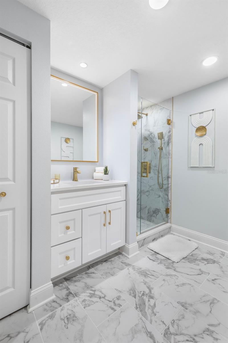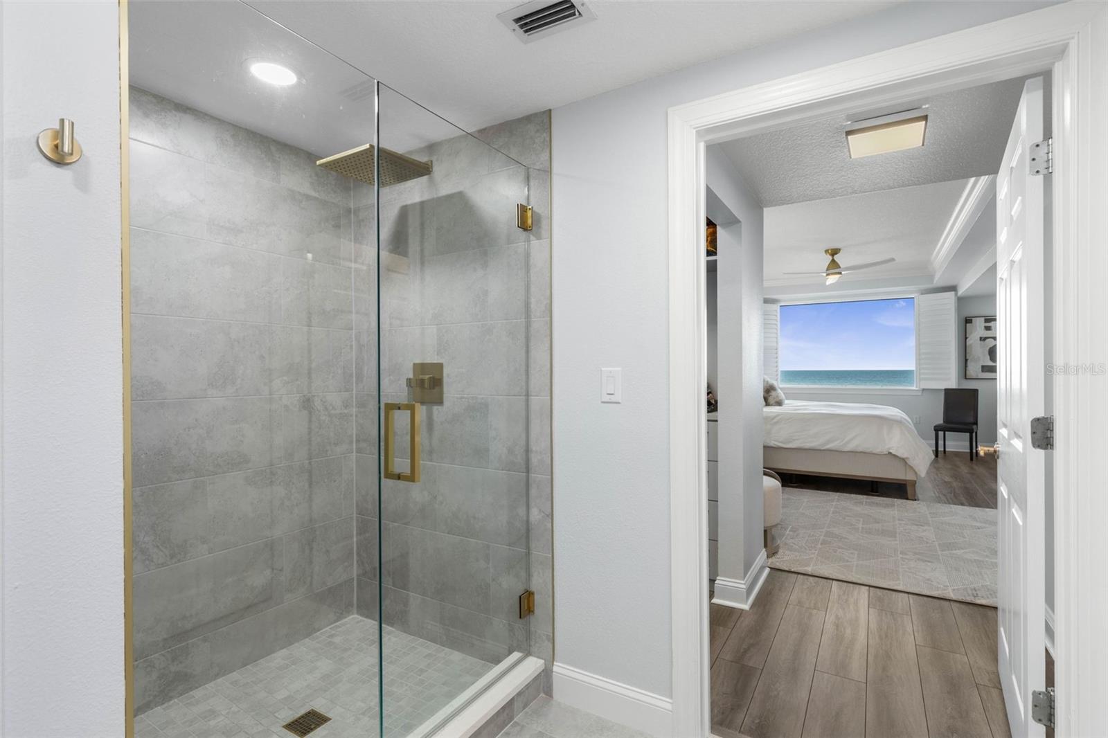 Experience oceanfront luxury at its finest. This beautifully remodeled 3-bedroom, 2.5-bath condominium offers direct ocean views from the moment you step inside. Thoughtfully redesigned with over $100,000 in high- end upgrades, this residence reflects exceptional craftsmanship and attention to detail throughout. Residents can also rest easy knowing that Surf Club III recently passed its Structural Integrity Reserve Study with no added assessments. The open-concept living area features elegant LVP flooring and floor-to-ceiling glass sliding doors that frame endless Atlantic views. The kitchen shines with crisp new white cabinetry, a specialty glass tile backsplash highlighted by under-cabinet lighting, pullout storage, quartz countertops, newer appliances, and stylish ceiling lighting—ideal for both entertaining and everyday living. The spacious primary suite is a private retreat, offering ocean breezes through impact windows that look directly out to the sparkling Atlantic. Closet space has been maximized with custom California Closet built-ins, adding convenience and organization. The fully renovated bath showcases dual vanities with custom mirrors and designer lighting, along with a frameless glass shower featuring an oversized rain head—creating a true spa-like oasis. The guest bath mirrors the same level of luxury with a full remodel including designer tilework, brushed gold fixtures, and a frameless glass enclosure featuring both a rain shower and handheld shower—sure to impress family and friends. Additional highlights include plantation shutters, crown molding throughout the main living areas and bedrooms, designer paint, upgraded lighting and fans, added electrical outlets in closets, a new A/C (2023), and a large-capacity LG washer and dryer. Every inch of this residence has been cared for with precision. Located within one of Palm Coast’s most desirable oceanfront communities, residents enjoy a truly exceptional resort lifestyle—complete with gated security, two oceanfront heated pools with clubhouses, and three private boardwalks for easy beach access. Amenities also include two libraries, a spa, fire pit, and grilling area, plus a lighted tennis center with eight newly resurfaced pickleball courts, additional tennis courts, a pool, basketball and bocce courts, a riverfront dock with kayak racks, and miles of scenic trails. Just minutes from charming local restaurants, boutiques, and art venues—and only 18 miles from historic St. Augustine or 30 miles from Daytona Beach—this immaculate residence offers the perfect blend of coastal luxury and everyday comfort.