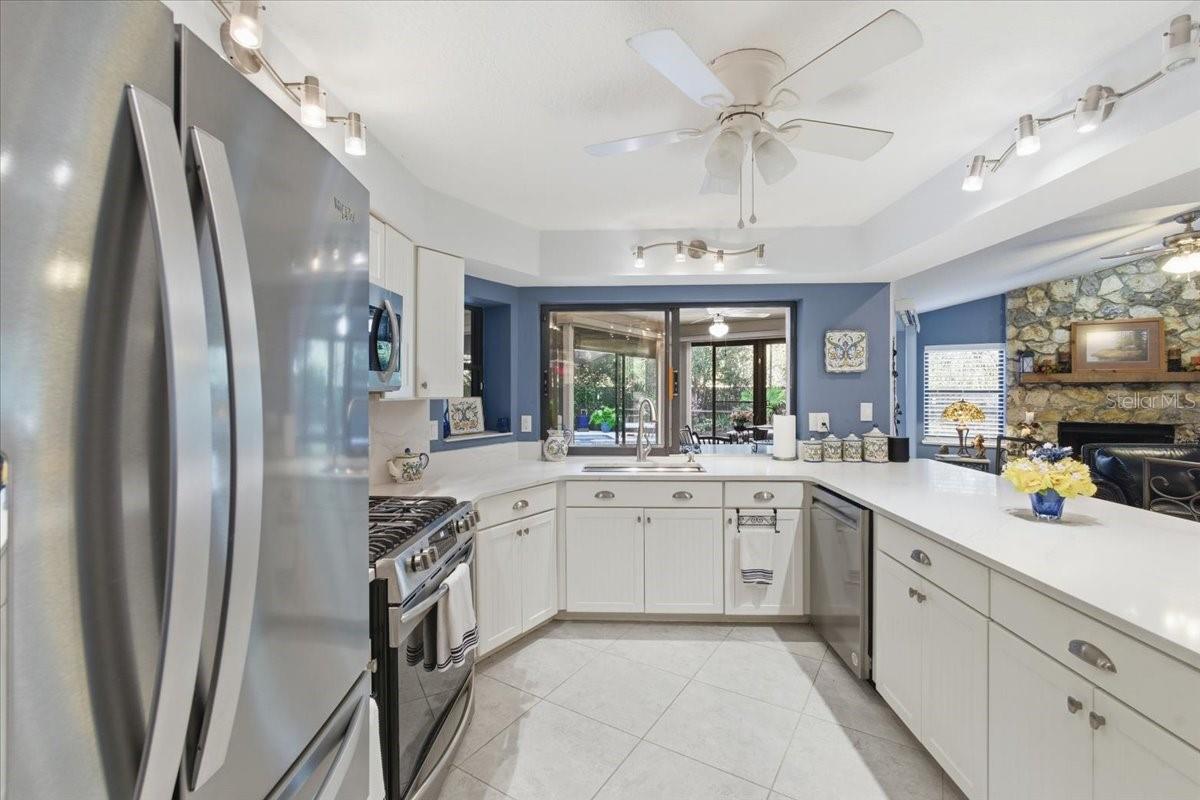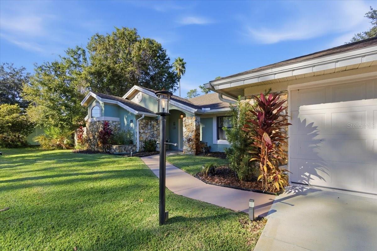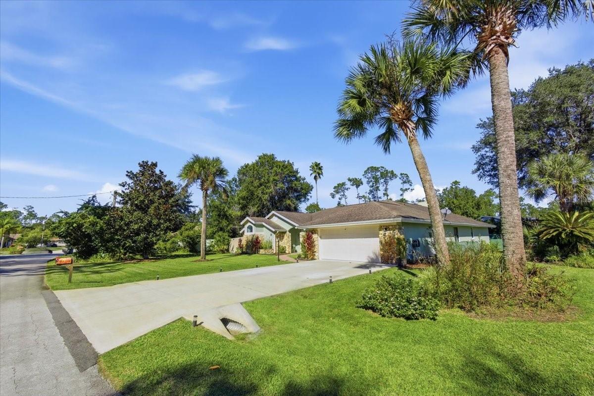 Located in the highly desirable Pine Lakes Golf Community with no HOA and no CDD fee, this spectacular concrete block custom Charles Wayne Construction pool home showcases exceptional craftmanship. Known for his 4 x 16 stud construction, Charles Wayne built this home with strength and attention to detail throughout. Set on an oversized corner lot with lush, mature landscaping, the property offers a fenced yard with space for a trailer, garden tools, or outdoor enjoyment. Inside, you’ll find soaring ceilings, a split floor plan and two spacious living areas that make this home ideal for families who want room to spread out or combine generations under one roof. The beautifully designed chef’s kitchen is a showpiece with quartz countertops, a stainless-steel gas stove, and an extended countertop that continues into the lanai, perfect for entertaining, serving guests or creating additional storage and prep space. The master suite is truly spectacular, featuring a sparkling chandelier, a huge walk-in shower, relaxing soaking tub, two spacious sinks with abundant counter space, and a massive walk-in finished closet. Elegant and comfortable, this private retreat offers both beauty and functionality. The spacious lanai is under air, providing an additional 400 square feet of comfortable living space, bringing the total area to over 2,800 square feet. This versatile area is perfect for hosting gatherings, creating a sunroom, or enjoying a quiet evening overlooking the pool. The wood burning fireplace adds warmth and charm to the main living area, while the private backyard oasis includes a sparkling pool and spa surrounded by mature landscaping. Additional highlights include a 2013 roof, resurfaced pool with new pump, a Generac generator system and a well for irrigation. This home perfectly combines luxury, comfort and quality construction in one of Palm Coasts most sought-after golf communities.