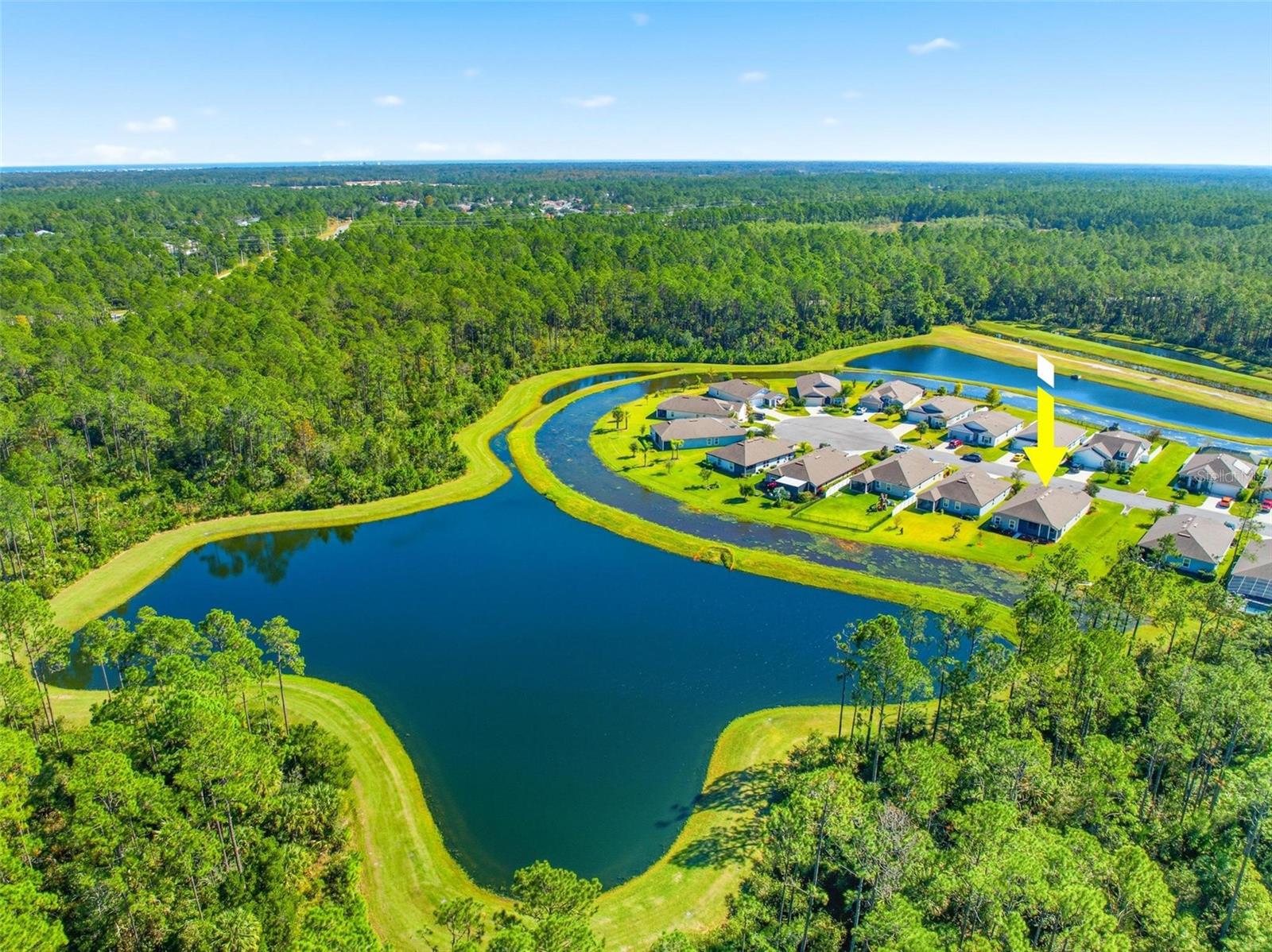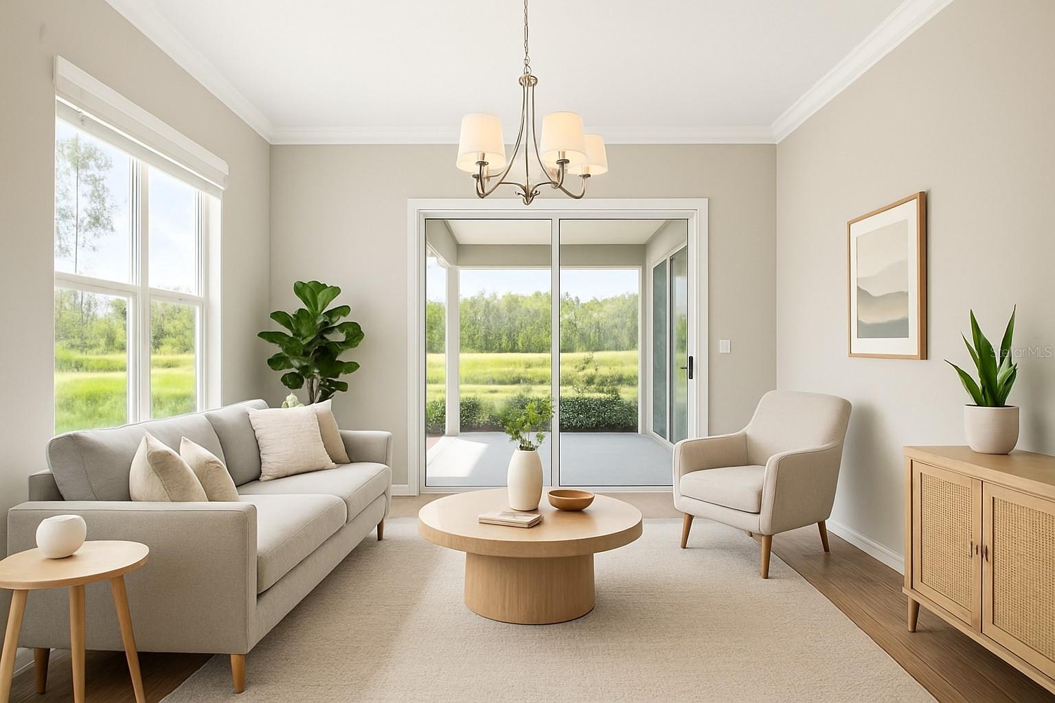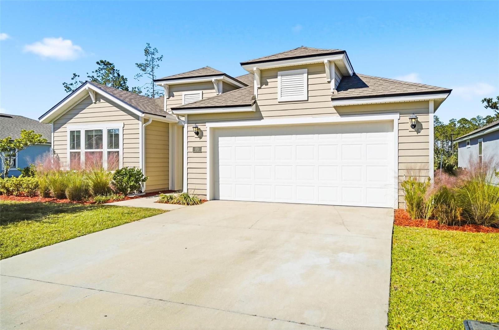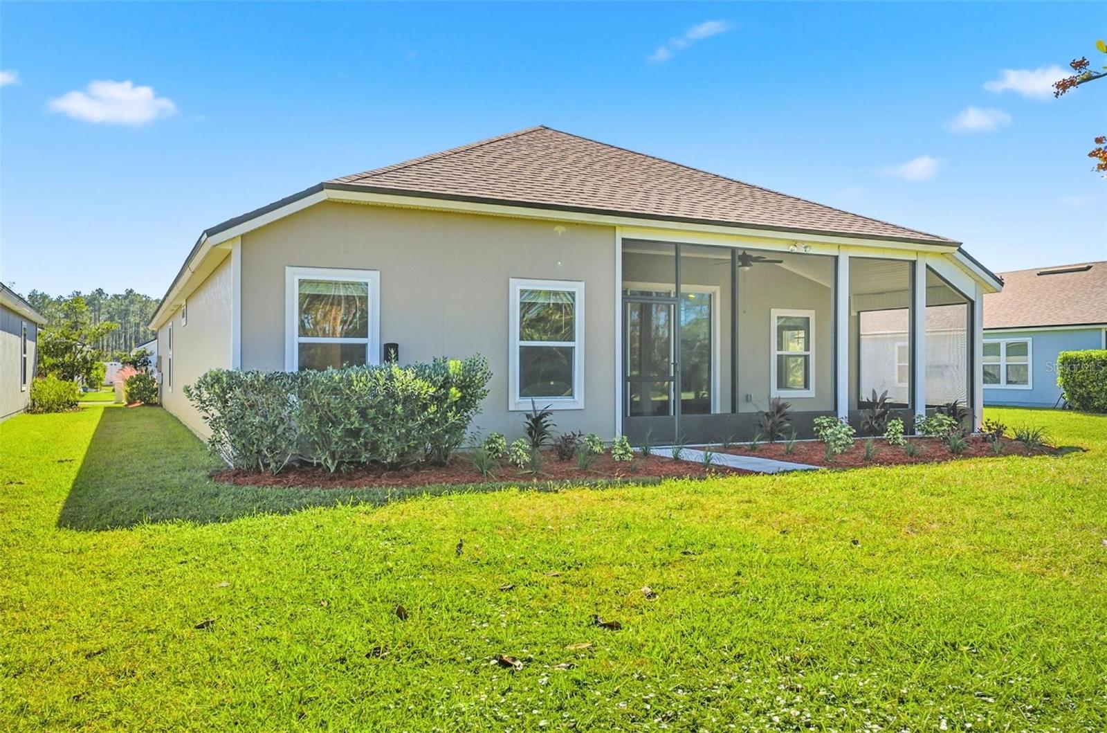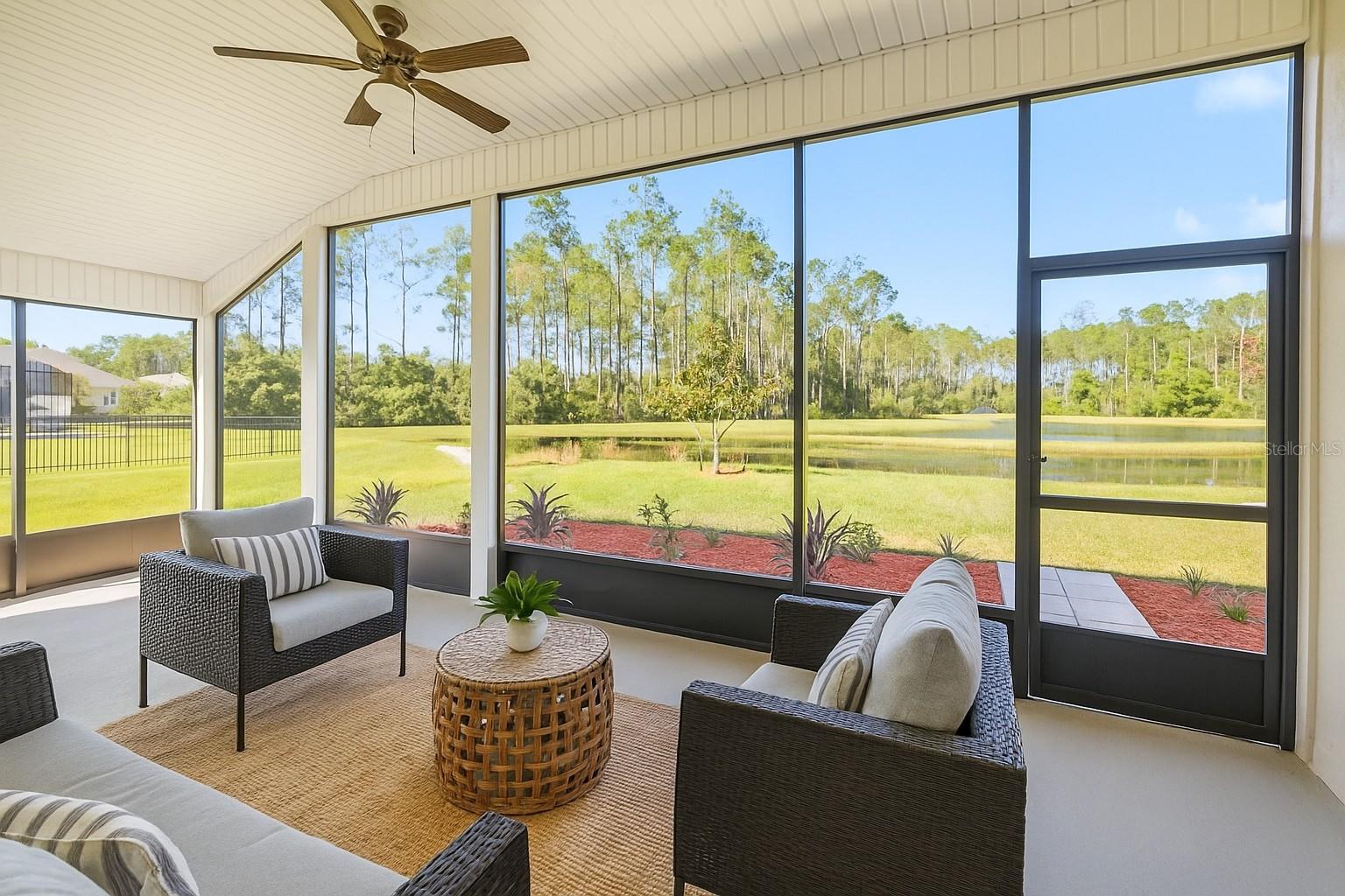 One or more photo(s) has been virtually staged. Experience luxury living in this stunning 3-bedroom, 3-bathroom home in the Grand Landings community! Featuring tall ceilings, including a beautiful cathedral design in the open living area, this home showcases luxury upgrades throughout. The gourmet kitchen boasts quartz countertops, cabinets, upgraded appliances, and an elegant etched-glass pantry door. Wood-look porcelain plank tile enhances the living spaces, while ceiling fans with lights are featured in every bedroom, the living area, and the spacious screened lanai. The primary suite is a true retreat with a large double-sink vanity, a massive walk-in shower, and four separate closets for ultimate storage. Enjoy serene views of the preserve and pond from your screened lanai, perfect for relaxing in nature.The irrigation system runs on reclaimed water for added efficiency. Grand Landings offers resort-style amenities including a clubhouse, fitness center, and community pool, all just minutes from I-95, Flagler Beach, shopping, and restaurants. Don’t miss your chance—schedule your private showing today!