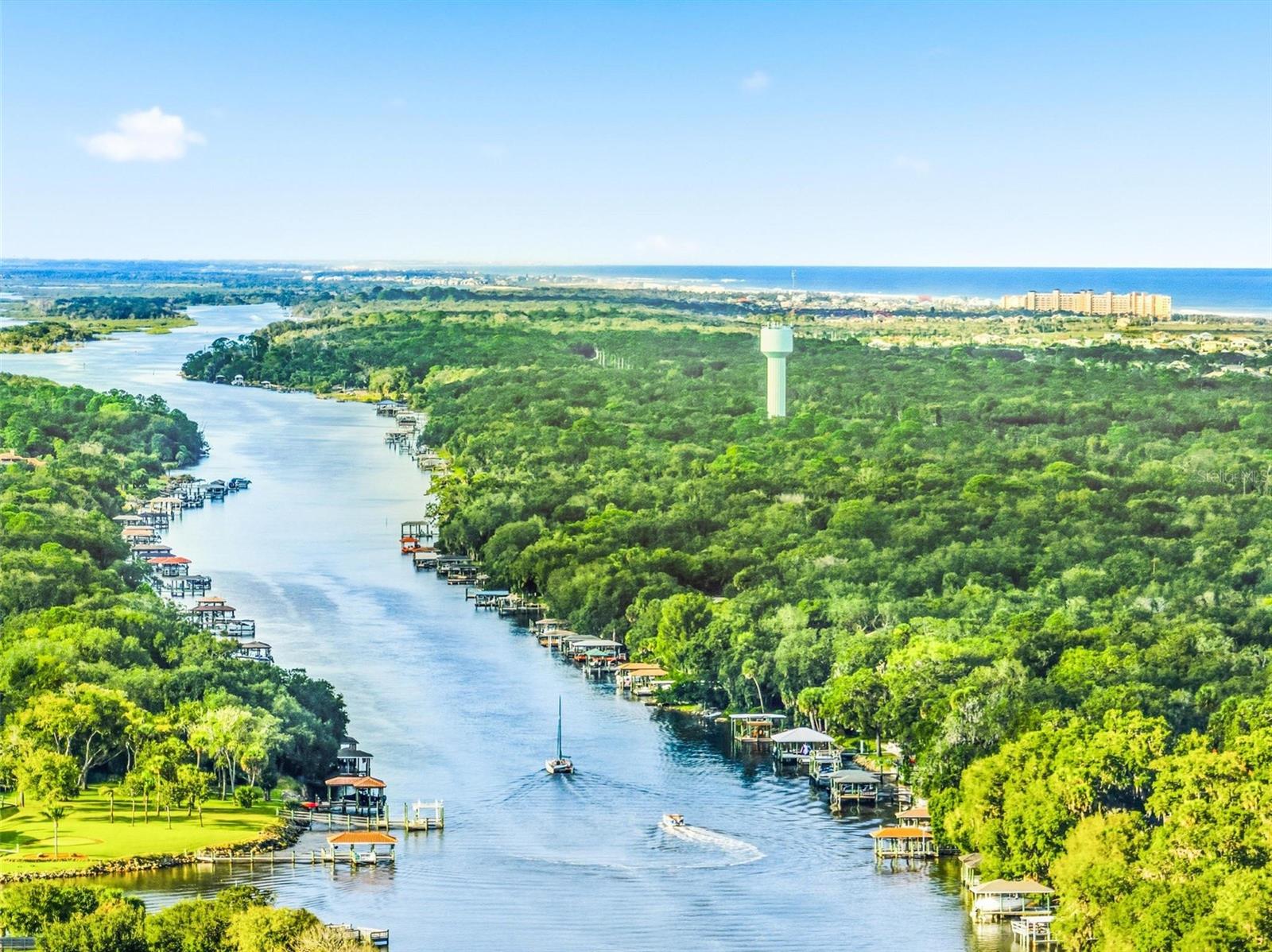Experience one of the most unique properties you'll ever see. Located on a barrier island in the Hammock of Palm Coast Florida, just a mile from the beach and steps away from the Intracoastal, this stunning estate is surrounded by mature old oaks and lush landscaping, creating a peaceful natural sanctuary. The home features 4 bedrooms, 2.5 bathrooms, an office, a family den, and is situated on a double lot with a separate 48x18x17 RV or boat garage fully equipped with water and electric. Walking up to the front door you are welcomed by a hidden garden behind a natural green hedge, here you can relax on your secluded front porch; a bird lovers dream. The backyard feels like your own private resort. It can compete with any tropical island paradise, it features an infinity pool, spa, sun-shelf and a Seminole Indian-built tiki hut and outdoor firepit making it perfect for outdoor living and entertaining. The Hammock is unincorporated to Palm Coast and there are no restrictions with any recreational vehicles. You can have Boats, RV's, and as many vehicles as you want. There are no rental restrictions, short term rentals are allowed. Located 30 minutes from downtown Saint Augustine and 15 minutes from Downtown Flagler Beach. The Hammock is home to Malacompra bike trails, many walking paths, Bings landing which is a river front park with boat launch. This property is a rare find—secluded, elegant, and perfect for those seeking a serene paradise.