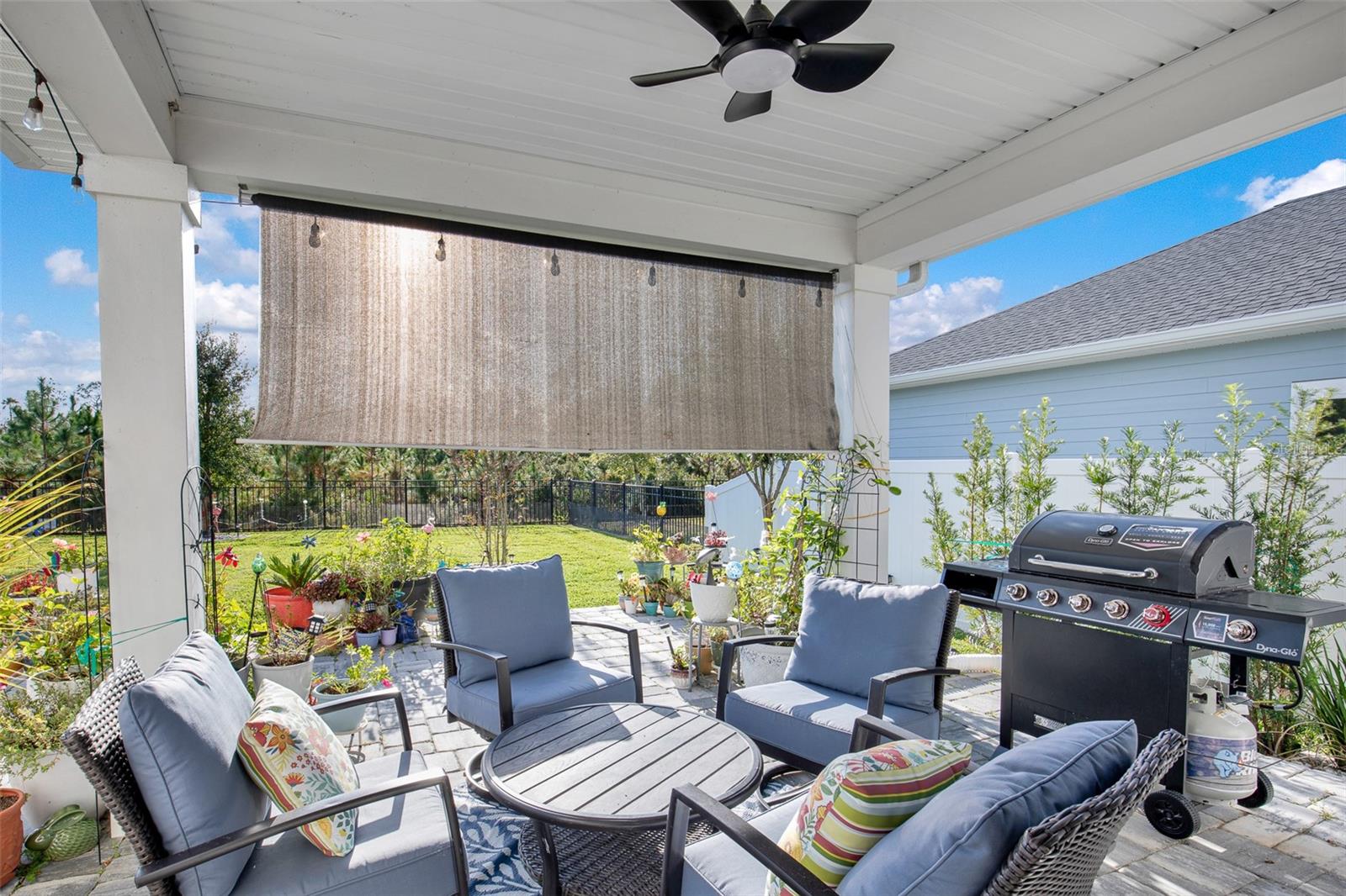 Experience the perfect blend of sophistication and comfort in this stunning 3-bedroom, 2.5-bath home with a versatile flex/office space. The open-concept layout is filled with natural light, designer touches, and a seamless flow that’s ideal for entertaining or relaxing. The gourmet kitchen showcases quartz countertops, modern cabinetry, stainless steel appliances, and a large island that anchors the living space beautifully. Tile floors extend through the main level, while the office features luxury vinyl flooring and a custom wood accent wall for a warm, inviting touch. Upstairs offers a spacious loft, generous bedrooms, and plush carpeting for ultimate comfort. Step outside to a private backyard retreat with a paver patio, fire pit, and peaceful wooded views—no rear neighbors! Nestled on a quiet cul-de-sac, this home also includes a 2-car garage, irrigation system, termite protection, and a transferable structural warranty. Enjoy resort-style living with a beautiful community pool, playground, dog park, and fitness center—everything you need right at your doorstep. Every detail has been thoughtfully designed to blend comfort, style, and functionality—making this home the perfect place to live, relax, and make lasting memories.