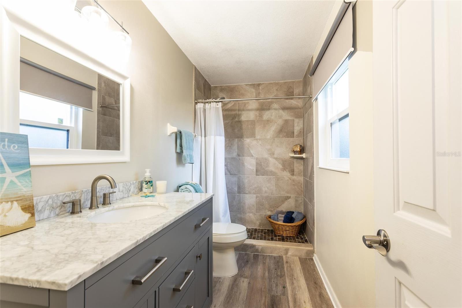 Seeking a WELL PRICED home that combines the convenience of easy access to everything PC has to offer yet privacy and seclusion are tantamount? This charming 2- 2 block home might have a slightly smaller footprint, (under 1200 square feet), but it's thoughtful design and prime location make it a hidden gem. Situated on a fenced corner lot and nestled against a serene wooded area at the end of a quiet cul-de-sac, this home offers a pleasant retreat. Inside you’ll discover a range of exceptional features. The kitchen underwent a modern transformation in 2022, ensuring a contemporary and functional space. Both bathrooms were elegantly redesigned in the same year, complete with a brand-new shower in the ensuite and new vanities, sinks, faucets, comfortable right-height toilets. Practicality meets safety with a hurricane-strength garage door, Pella double pane windows, storm doors on both exterior entrances and storm shutters for all the windows. The roof was replaced in 2016, while newly added gutters in 2021 enhance rainwater management. Inside, all carpeting has been removed, and the UNIQUE concrete floors painted and sealed. NEW LVP flooring was also installed in the kitchen and both baths. Despite being constructed in 1994, this home's effective year is considered 2010 due to these numerous upgrades. AND THAT'S NOT ALL: You'll enjoy the luxury of not one, but two screened patios. The spacious lot presents endless possibilities too, whether you dream of creating a tranquil garden, setting up a delightful patio space, or even adding a pool, the fenced yard provides a blank canvas for your ideas. Whether you're retired seeking a peaceful surroundings or a first-time homebuyer looking for a cozy yet stylish home, this residence will captivate your heart, and home is where the heart is!