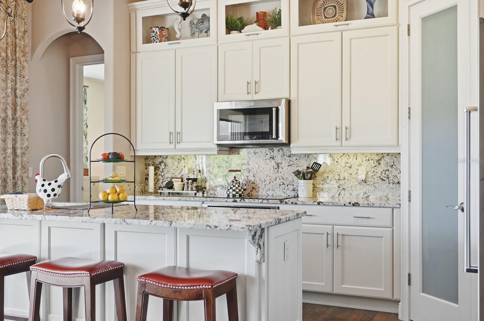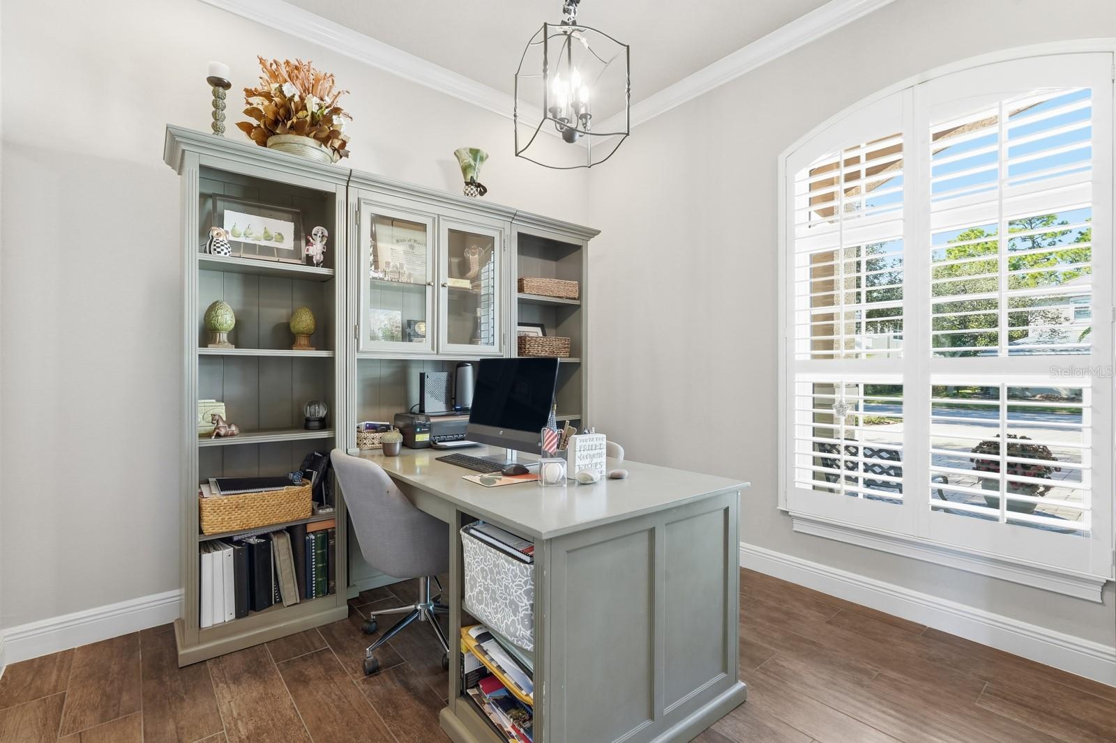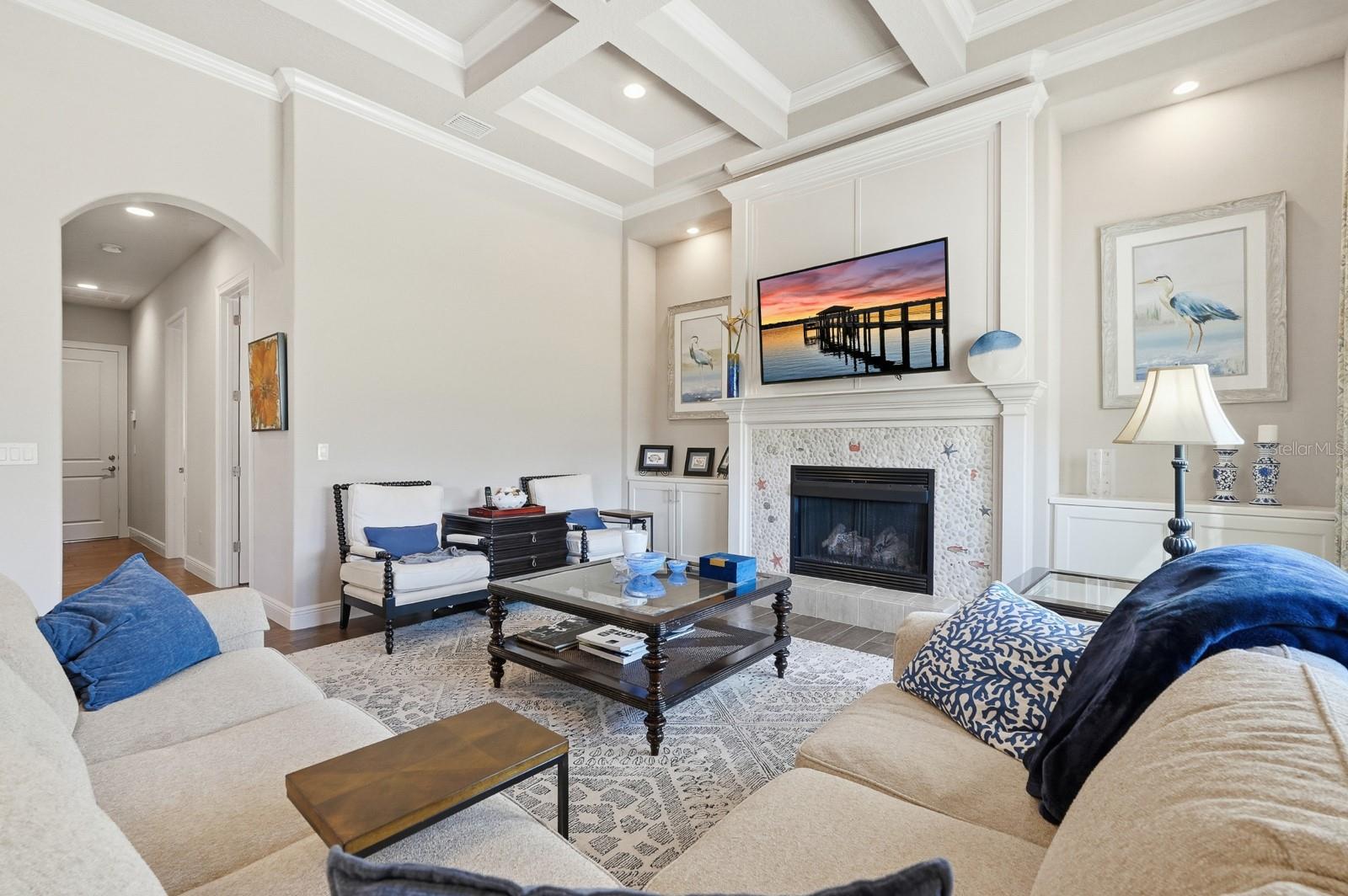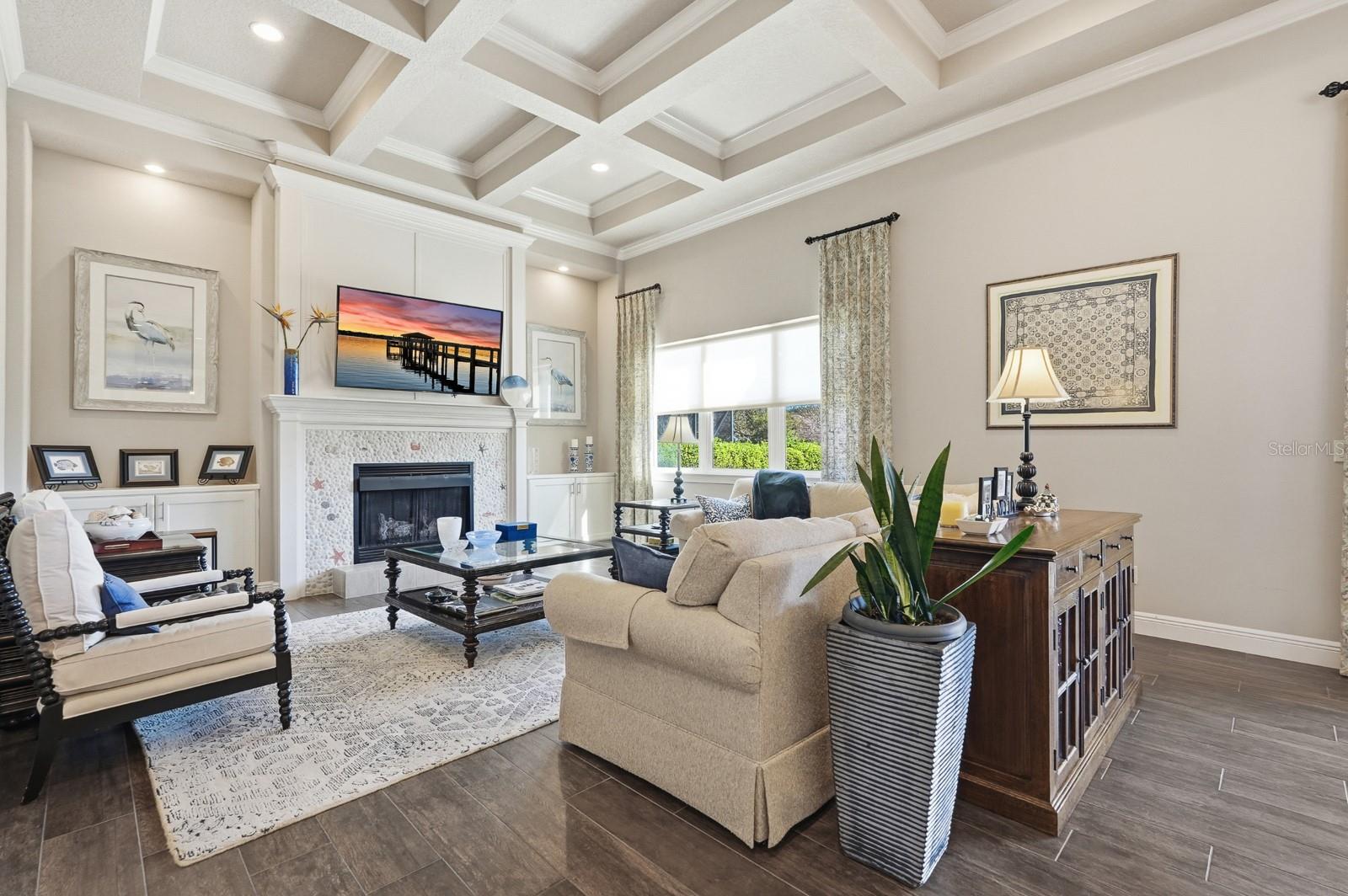 This exceptional home offers it all — views, privacy, and a prime location. The home features a spacious great room that flows effortlessly into the kitchen and dining areas, ideal for both entertaining and everyday living. Nearly every room overlooks the water, bringing natural beauty indoors. The bedrooms are arranged in a split floor plan for added privacy, and the home has been lovingly cared for with numerous thoughtful upgrades throughout. You’ll appreciate the 12-foot ceilings with elegant crown molding and coffered details. The kitchen boasts 42-inch cabinets, granite countertops, a separate island, and a walk-in pantry — a dream for anyone who enjoys cooking and gathering with friends and family. You will enjoy the money saving features that come with having a well for irrigation water and the impact windows with both insurance and electric bills. Additional highlights include custom window treatments, a dedicated office space, and a 3-car garage. The end result is your opportunity to own a truly beautiful, sensational home. Schedule your private showing today and experience it for yourself!