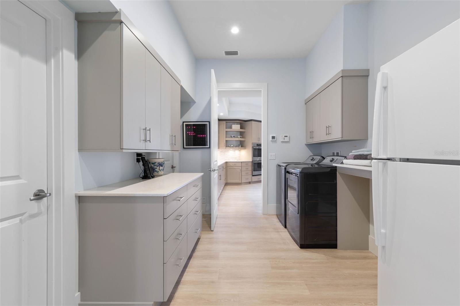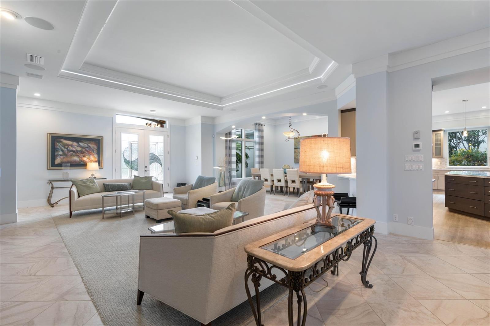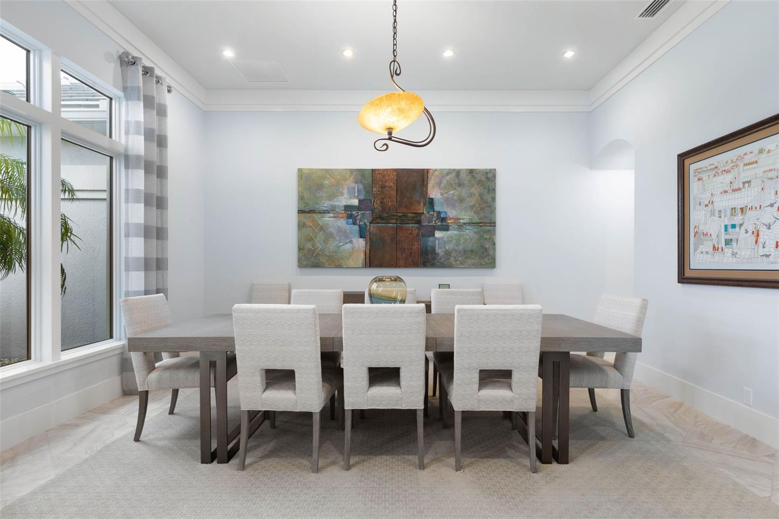 Nestled in the gated Ocean Hammock community, 2 Driftwood Lane offers refined coastal living on the 5th green of the Ocean Course at Hammock Beach Resort. Built in 2019, this custom home features 3,164 sq ft of thoughtful design and effortless flow. A massive gourmet kitchen with double pantry closets and storage at every turn anchors the home, complemented by an electric fireplace, saltwater pool, and a beautifully blended covered lanai that extends the living space outdoors. The flexible floor-plan includes a large hobby room with its own exterior door, ideal for gardening, crafting, or coastal projects. The third bedroom features wall-to-wall custom cabinetry, creating a perfect work-from-home office. Each bedroom offers the privacy of its own ensuite. Situated on an oversized lot, this home delivers easy, low-maintenance luxury just minutes from the beach. Golf memberships are optional, with the property perfectly positioned between Hammock Dunes Club and Hammock Beach Golf Resort & Spa. The marina is also close by for boaters seeking convenience. A rare combination of modern construction, storage galore, and a premier golf course setting, this is refined coastal living at its best.