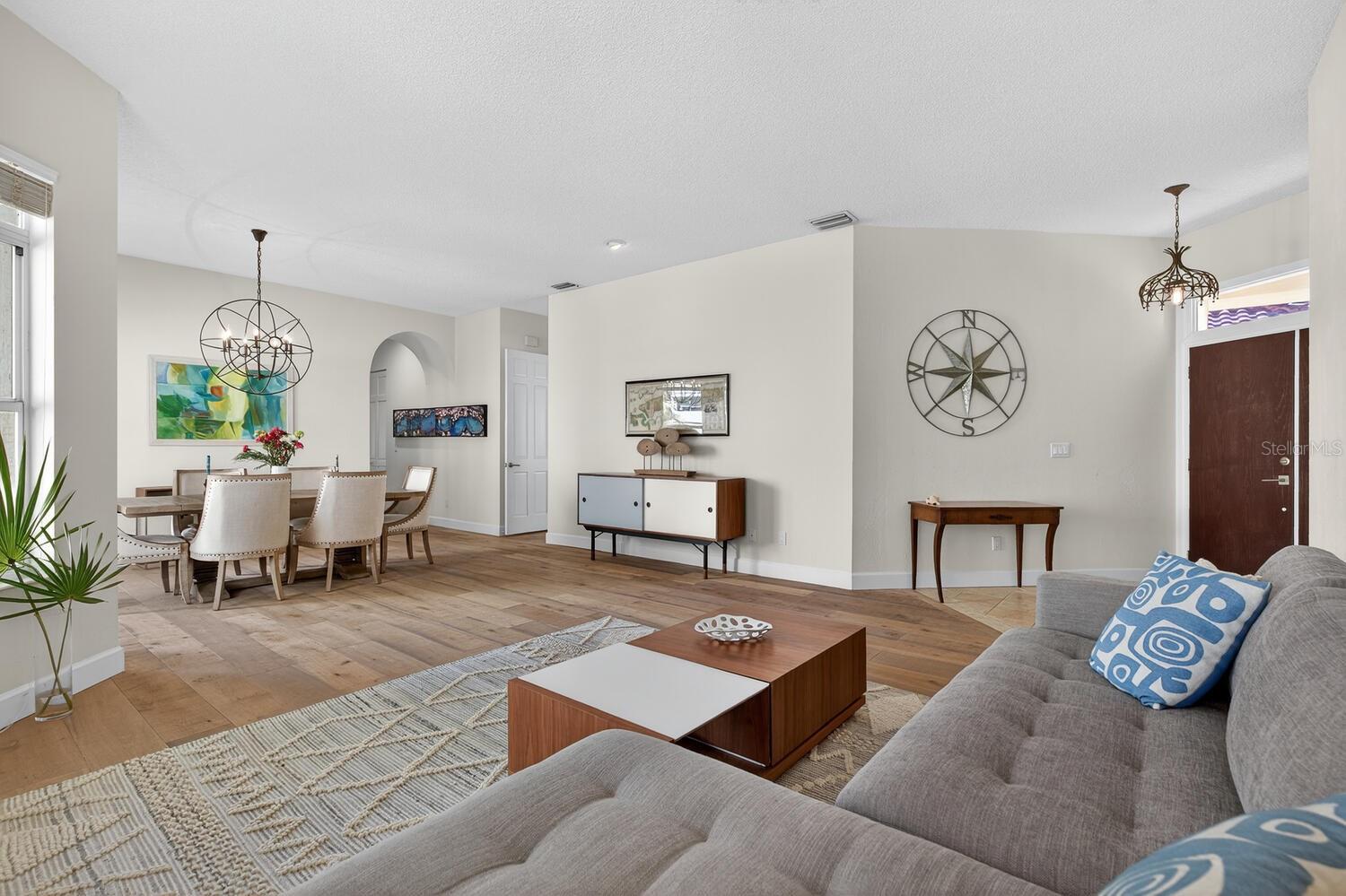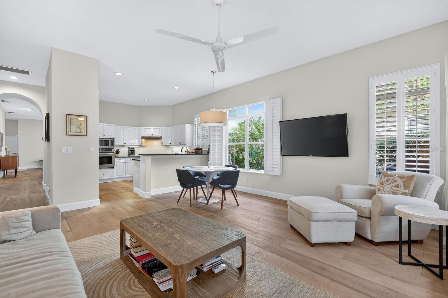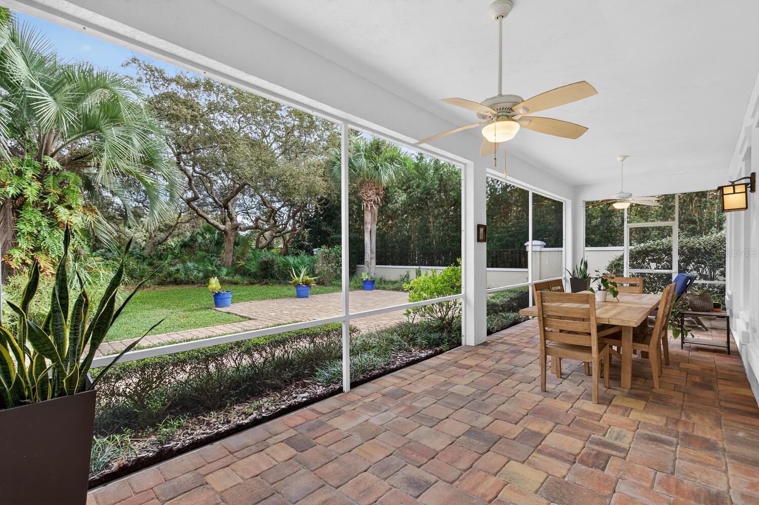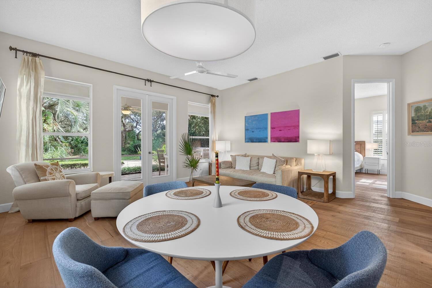 Experience the pinnacle of Florida coastal living in this exquisite 2-bedroom, 2-bath Golf Villa (2,004 sq ft) in the exclusive gated Hammock Dunes community, Palm Coast. Perched on the renowned Tom Fazio Links Golf Course with lush landscaping for ultimate privacy and serenity. Enjoy low-maintenance luxury with HOA-managed grounds and private dune walkover to pristine Atlantic beaches just steps away. Beautifully updated with elegant wood flooring throughout. The gourmet kitchen boasts granite countertops, stainless steel appliances, spacious pantry, and breakfast bar—seamlessly open to the bright family room with expansive windows framing lush private backyard views. Screened paver patio flows to a large open paver deck, perfect for embracing indoor-outdoor Florida living with tranquil golf course vistas. The luxurious primary suite boasts panoramic garden views, oversized walk-in closet, and spa-like bath with soaking tub, separate shower, dual vanities, and water closet. Elevate your lifestyle with optional membership to the award-winning Hammock Dunes Club, a Distinguished Emerald Club of the World: two Audubon-certified golf courses, oceanfront clubhouse, fine/casual dining, 5,000 sq ft fitness center, resort pool, tennis, croquet, and more. Your perfect coastal retreat awaits—schedule a private tour today!