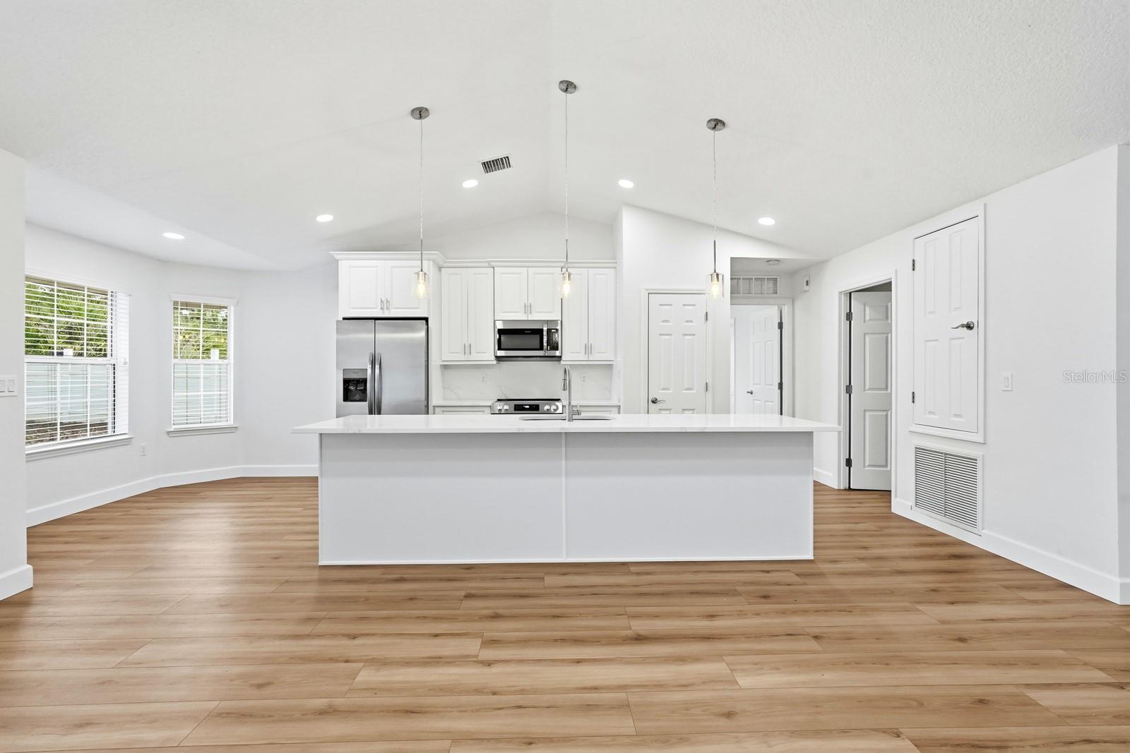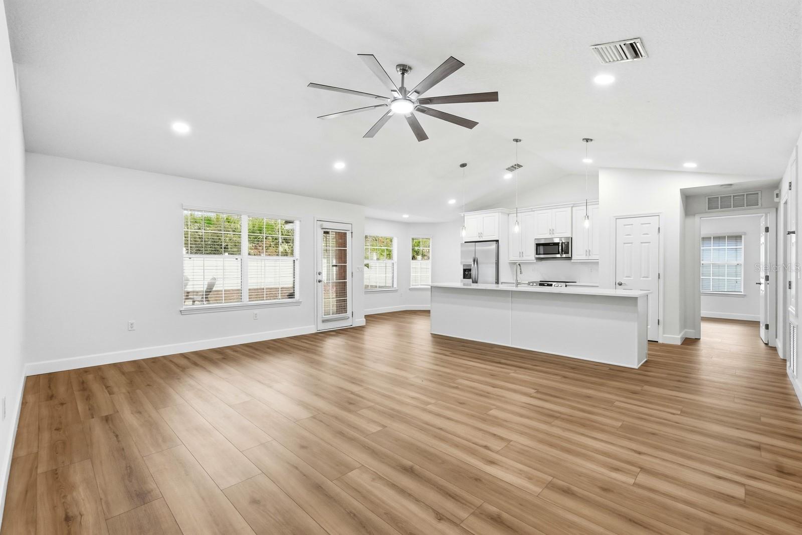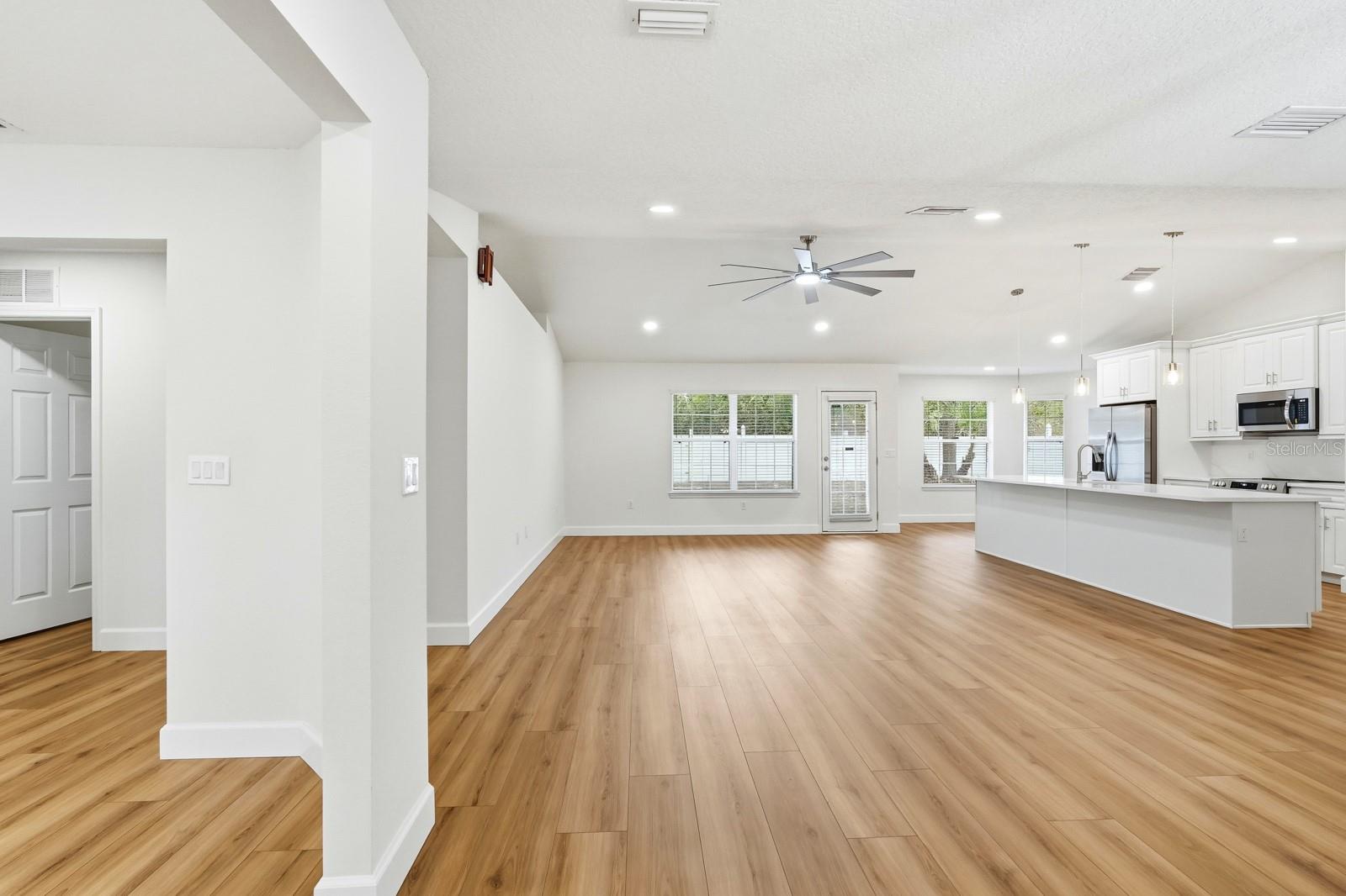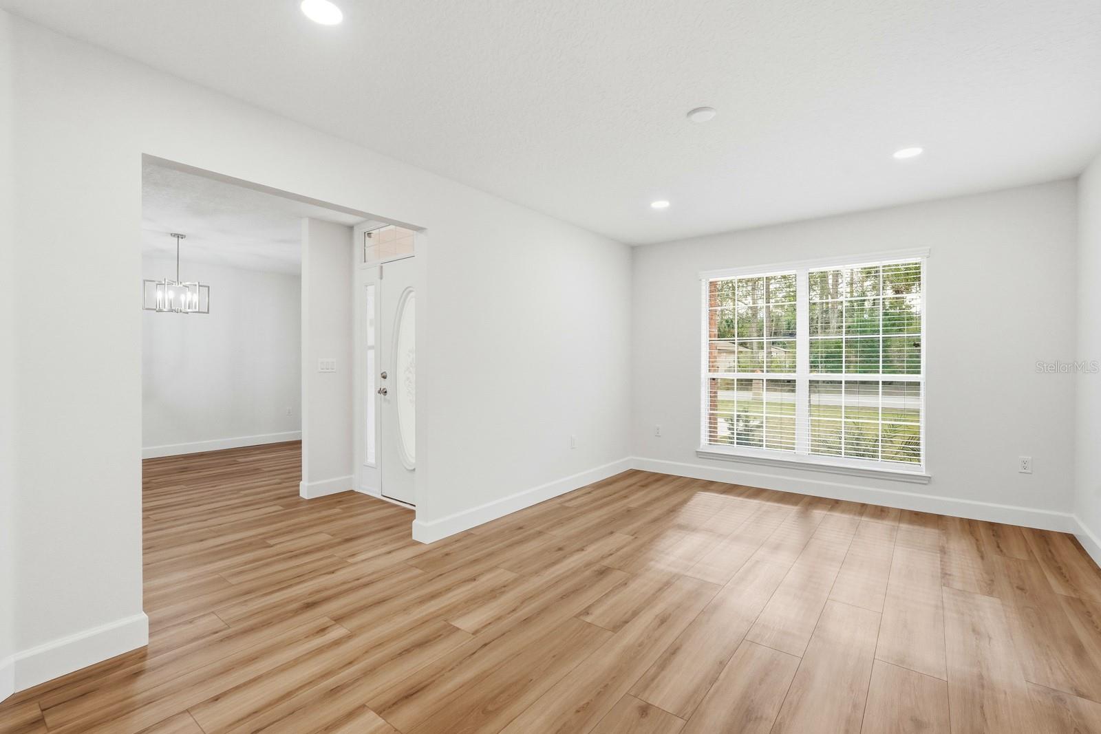 Completely Renovated & Move-In Ready! This stunning 4-bedroom plus flex home offers modern upgrades and thoughtful design throughout. Enjoy peace of mind with a new roof, new A/C, water treatment system, and fresh interior paint, along with luxury vinyl plank flooring throughout the entire home. The spacious layout features a formal dining room and a bright great room/kitchen combination, perfect for everyday living and entertaining. The beautifully updated kitchen showcases quartz countertops, a large center island, brand-new appliances, and a sunny breakfast nook. The primary suite is a true retreat with a fully renovated spa-like bathroom, complete with a stand-alone soaking tub with accent wall, a new tiled walk-in shower, dual sinks, and a generous walk-in closet. Outdoor living is just as inviting with an open rear patio, cozy firepit area, and fully fenced backyard with vinyl privacy fencing. Additional upgrades include new landscaping, irrigation system on well, and a garage privacy screen. Ideally located in the center of town, close to schools and shopping, and just a short drive to the beach—this home checks every box. Schedule your private showing today!