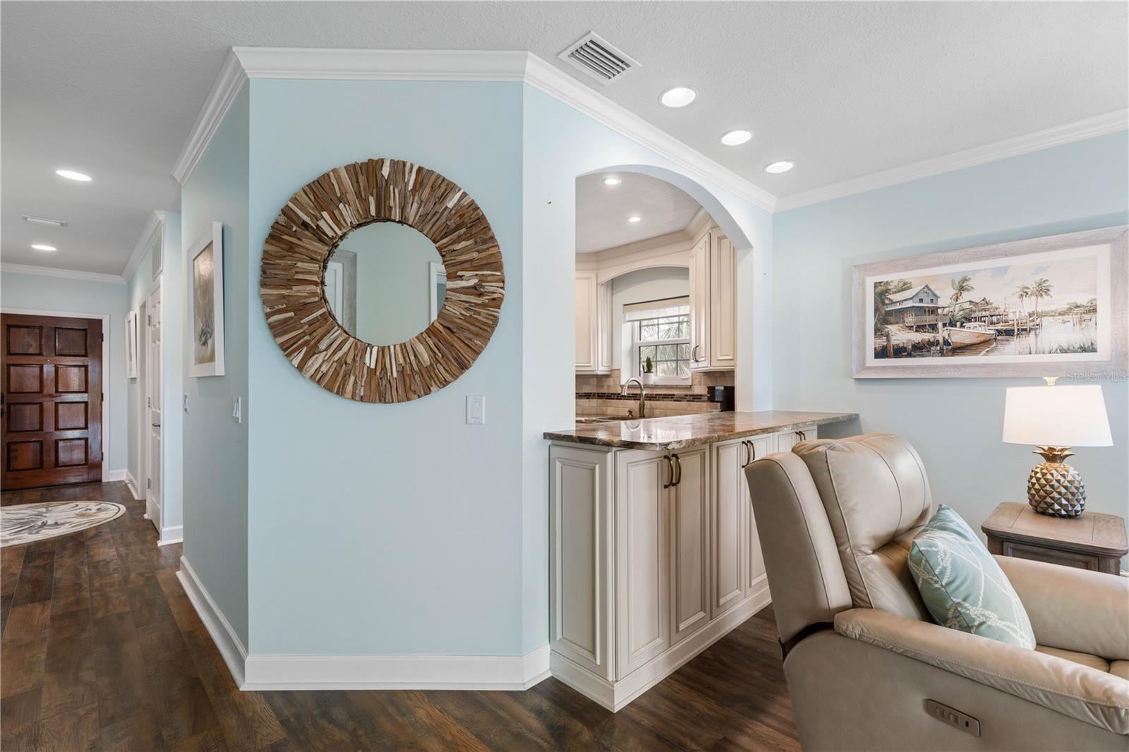 Waterfront living at its best in this competitively priced 3-bedroom, 2-bath corner, top-floor condo offering maintenance-free living and serene coastal surroundings along the Intracoastal Waterway. This light-filled end unit features vaulted ceilings, a desirable split floorplan, and abundant windows with peaceful water views from the kitchen, living room, primary bedroom, and screened lanai—creating a calm, serene interior perfect for relaxing or entertaining. The fully renovated condo includes luxury vinyl plank flooring (2023), updated ceiling fans, a chef-inspired kitchen with stone countertops, wood cabinetry with crown molding and soft-close drawers, stainless steel appliances including a 2023 range and 2022 refrigerator, plus a 2025 washer, dryer, and 2025 A/C. The spacious primary suite offers vaulted ceilings, water views, and an updated ensuite bath with dual vanities and a walk-in shower, while two generous guest bedrooms provide flexible living options. Enjoy a pet-friendly waterfront community with marina, pool, clubhouse, pickleball, tennis, shuffleboard, putting green, and waterfront park, with HOA covering water, sewer, internet, and termite maintenance, all conveniently located near European Village and just minutes to the beach.