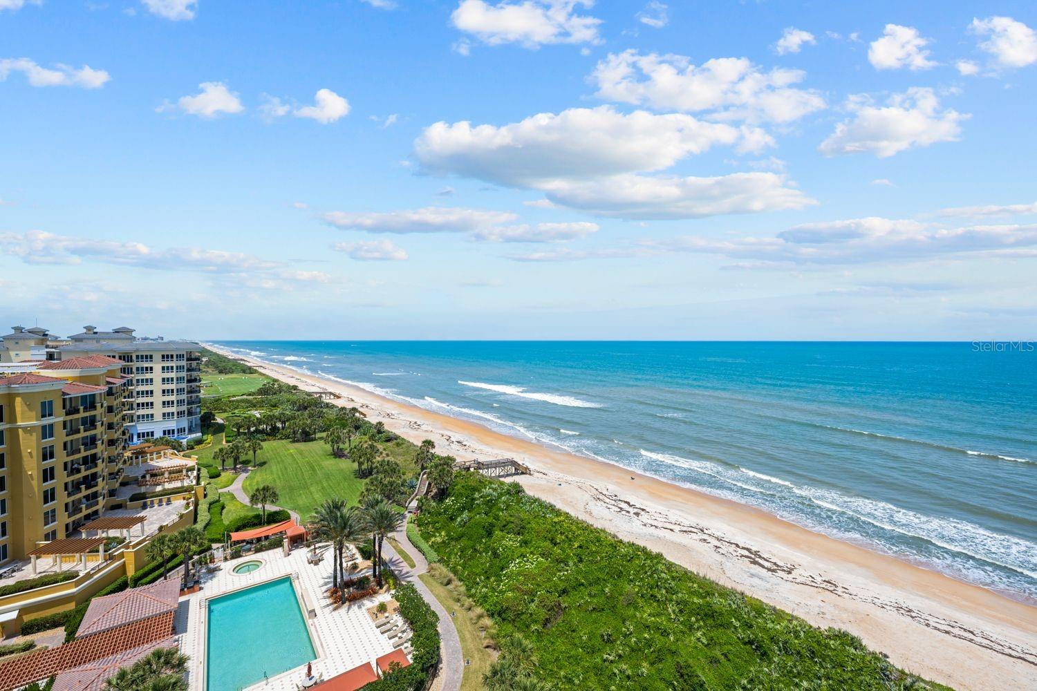 Experience luxury oceanfront living at its finest at Portofino in Hammock Dunes. This coveted south-facing "Furnished" end unit offers magnificent ocean views the moment you enter your residence from your private, elegantly appointed elevator and foyer. Portofino showcases an open concept design with dramatic full-height sliding glass doors on the balconies and oversized windows that provide panoramic views of the Atlantic Ocean. These sumptuous views extend from the living room, family room, dining room, kitchen, and primary bedroom. The guest bedrooms are located on the west side of the residence, ensuring privacy, a balcony that overlooks the picturesque fairway and offers stunning sunset views. The kitchen features exquisite custom cabinetry, along with a standalone refrigerator and freezer. The primary bedroom boasts an oversized walk-in closet with built-in custom cabinetry that includes jewelry drawers and compartments. A spacious primary bath completes this well-deserved retreat. Portofino offers a lifestyle like no other, with a beautifully appointed lobby, a large social room with a bar and serving pantry for special events, and a richly appointed library with a fireplace. Additionally, there's a billiards room adjacent to the bar area and social room, a state-of-the-art fitness room, two guest suites for friends or family, and a theater room with stadium seating. The property also features a large pool and spa, cabanas, direct beach access, under-building assigned parking, individual storage lockers, and bike storage. Membership to the award-winning Hammock Dunes Club is available, though not mandatory. This membership grants access to two renowned Audubon-certified 18-hole golf courses, two stunning clubhouses, casual and oceanfront dining, tennis, pickleball, bocce, oceanside croquet, a state-of-the-art fitness center, an oceanside pool and spa, a splash pad, and a wealth of activities and friendships that can last a lifetime. Conveniently located just three miles from I-95, this home offers easy access to Daytona, Orlando, Jacksonville, and Flagler Executive Airports.