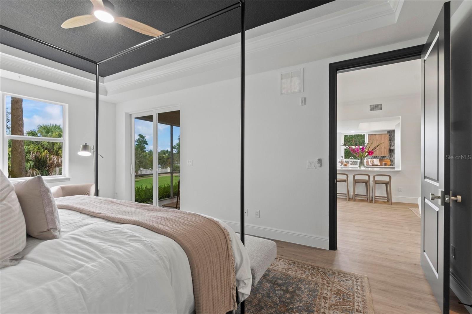 Welcome to Grand Vista at Grand Haven, an exclusive collection of just 24 brand-new luxury residences nestled within the sought-after Grand Haven community in Palm Coast just moments from the Intracoastal Waterway. Thoughtfully designed for elevated coastal living, this 3-bedroom, 3 bathroom residence blends refined European style with modern Florida comfort. Step inside to 10-foot ceilings, elegant crown molding and 7-inch baseboards, creating a light-filled, upscale atmosphere throughout. The designer kitchen is a true showpiece, featuring luxury quartz stone countertops, European cabinetry, handcrafted Italian tile and a premium GE Café appliance package, complemented by Williams Sonoma lighting and brushed gold plumbing fixtures. High-grade LVT flooring flows seamlessly through the living spaces, offering both beauty and durability. The primary suite delivers spa-level sophistication with a freestanding soaking tub, Toto bath fixtures and curated finishes designed for relaxation. A dedicated laundry room—complete with washer, dryer, cabinetry and sink—adds everyday convenience, while high-impact windows provide peace of mind and energy efficiency. Enjoy indoor-outdoor living from your screened-in patio and appreciate the rare luxury of a private two-car garage. Residents of Grand Vista enjoy full access to the world-class amenities of Grand Haven, a vibrant, gated community known for its active lifestyle and resort-style offerings. Amenities include a fitness center, pool, tennis, pickleball, bocce, croquet and basketball courts, along with access to a championship golf course. Social spaces, cafés and event venues create a true sense of community, all just minutes from Palm Coast’s best shopping, dining, and coastal attractions. To summarize: Brand new. Architecturally refined. Perfectly positioned. Grand Vista offers a rare opportunity to own new construction luxury in one of Palm Coast’s most desirable communities—where lifestyle, design, and location come together seamlessly.