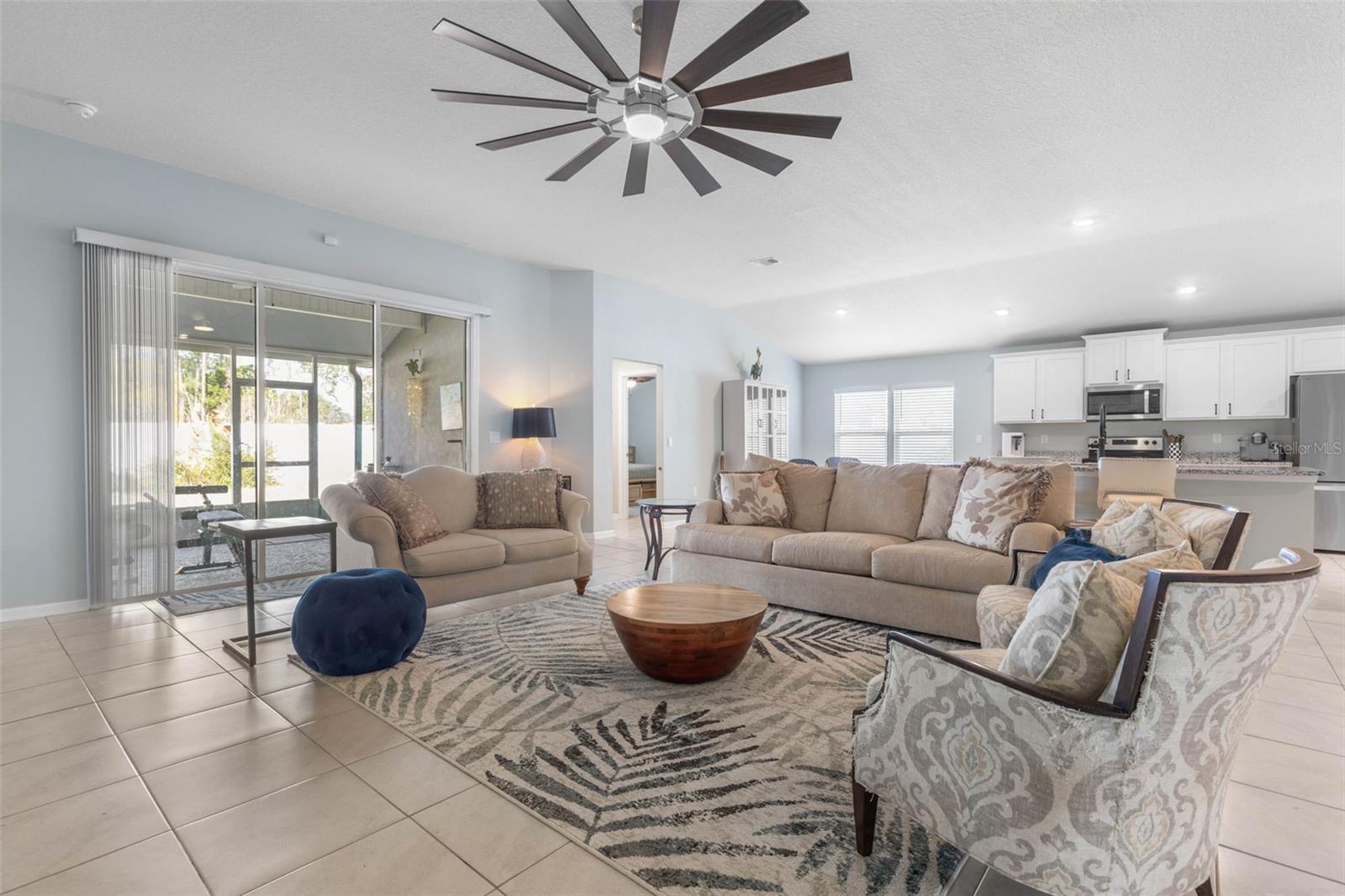 New from 2022, 11 Pittson Ln offers modern design, thoughtful upgrades, and a prime Palm Coast location close to beaches, trails, schools, shopping, and dining. This 3-bedroom, 3-bathroom home features an open floor plan with high vaulted ceilings that create a bright, spacious feel throughout. A dedicated office/flex room with French doors provides versatility for remote work, a guest space, or a formal sitting area. The main living area flows seamlessly to the outdoors through a 3-panel sliding glass door, leading to a covered lanai with a new screen enclosure (2023)—perfect for relaxing or entertaining. The open concept main spaces are designed for everyday comfort and hosting alike, while new carpet in the bedrooms adds warmth and comfort. The private primary suite showcases a tray ceiling, walk-in closet, dual sinks, and a spacious step-in shower. Additional bedrooms and bathrooms are thoughtfully positioned to provide privacy and convenience for family or guests. Outside, enjoy a fully fenced backyard with a new vinyl fence (2023). An oversized driveway and a 3-car garage offer ample storage and parking. Conveniently located near Flagler Beach, scenic walking and biking trails, top-rated schools, restaurants, and shopping, this home delivers the perfect blend of modern living and coastal lifestyle. Don’t miss the opportunity to own this better-than-new Palm Coast home in a sought-after location.