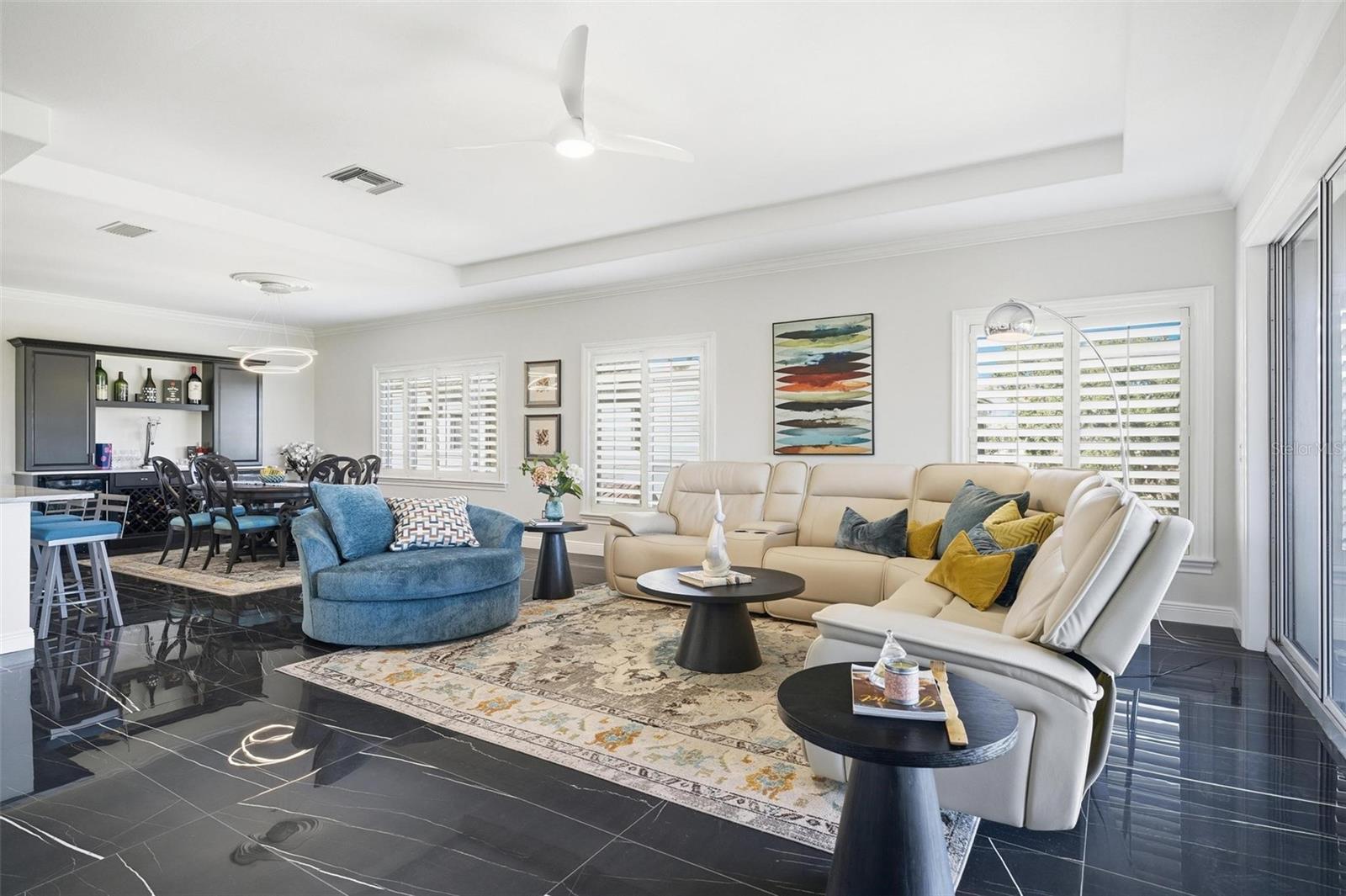 Welcome to paradise at Waterside at Palm Coast, where coastal elegance meets effortless living. This expansive third-floor condominium, offering over 2,400 square feet, lives like a private home—delivering generous space, refined finishes, and serene surroundings rarely found in condominium living. Inside, the three spacious bedrooms and three full bathrooms provide comfort and privacy. The beautifully updated kitchen features stainless steel appliances, modern design elements, Quartzite counters, stainless steel back splash and a layout ideal for both everyday living and entertaining. Large-format tile flooring throughout, paired with stylish contemporary lighting, creates a bright, cohesive, and upscale aesthetic. Adding a touch of sophistication, a custom-built wine and entertainment center features a striking wall of cabinetry with two Wine Enthusiast refrigerators, creating a perfect focal point for hosting and showcasing your collection. Step onto the large covered patio and unwind while enjoying tranquil canal-side breezes—perfect for morning coffee, sunset cocktails, or hosting friends in a relaxed waterfront setting. Waterside at Palm Coast offers resort-inspired amenities including a community pool, hot tub, and grilling area, all set within a prime canal-front location just moments from the Intracoastal Waterway—a true boater’s paradise. You will have plenty of room for all your toys with the oversized one car garage! Adding to the allure, the seller is offering a boat slip (listed for sale separately) with a 10,000-lb lift, providing seamless access to the water and elevating this property into a rare and highly desirable lifestyle opportunity. Enjoy carefree ownership with an HOA that maintains exterior building upkeep and includes cable and internet, allowing you to focus on living, relaxing, and enjoying the coastal lifestyle. Recent updates to the home include new Quartzite countertops in the kitchen and primary bathroom, new dishwasher and refrigerator, and a smart toilet in the primary bathroom. This is more than a condominium—it is a beautiful waterfront retreat, offering space, comfort, and freedom in one of Palm Coast’s most coveted communities. Located close to the ICW, the marina, shopping, dining, parks and recreation, and the beaches! BRING ALL OFFERS! The owner is also selling a boat slip which can only be sold to Waterside Condo owners.