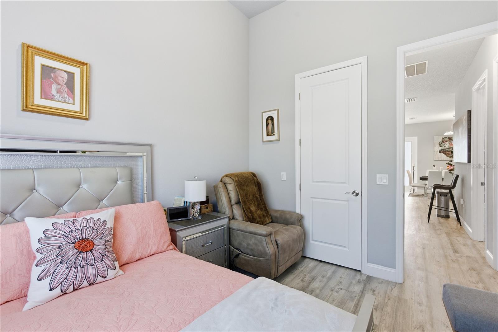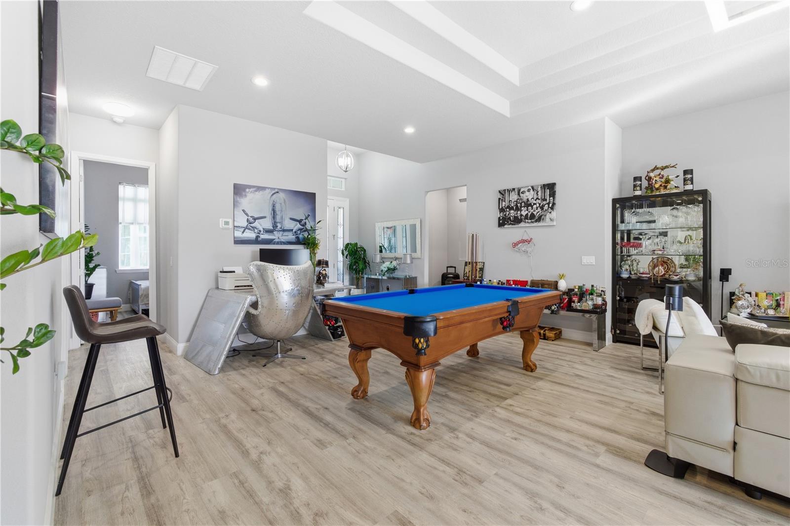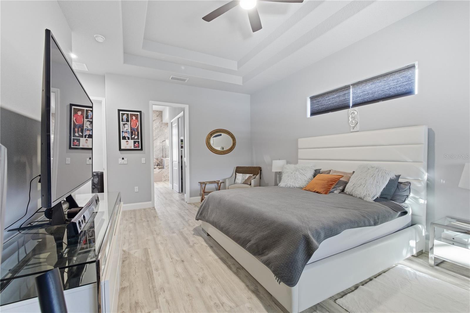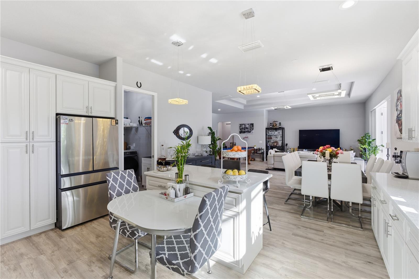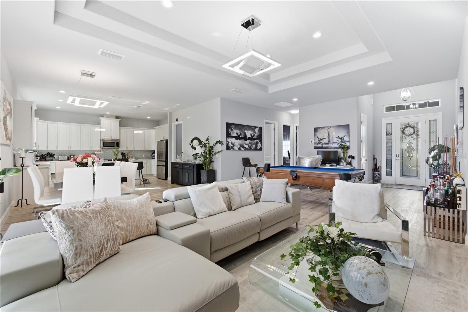 Welcome to this nearly new, 2022-built heated pool home, offering a fully fenced backyard and a 3-car tandem garage (two-car frontage with an extra-deep bay ideal for a third vehicle, boat, or additional storage). Step inside to a bright, open layout highlighted by soaring tray ceilings and a spacious, airy feel throughout. The open-concept floor plan is perfect for entertaining, featuring a beautiful light-filled kitchen with a large center island and island seating, ideal for gathering with family and friends. The private primary suite showcases a tray ceiling and a luxurious en-suite bath with his-and-hers vanities, a soaking garden tub, a large walk-in shower, and generous walk-in closets. The split-bedroom layout provides privacy, with the second and third bedrooms offering high ceilings and sharing a spacious second full bath. Step outside to your own private retreat—an impressive in-ground heated pool with a huge screened lanai, accented by elegant travertine tile flooring. The expansive covered area is perfect for year-round outdoor living and entertaining, all within a beautifully landscaped and private backyard. Located in one of Palm Coast’s most desirable NO-HOA communities with no rental restrictions, this home offers exceptional flexibility for primary residence, second home, or investment use. Enjoy proximity to miles of biking and hiking trails, the Palm Coast Tennis & Pickleball Center, and just minutes to the beach. Welcome home to your own private oasis.--