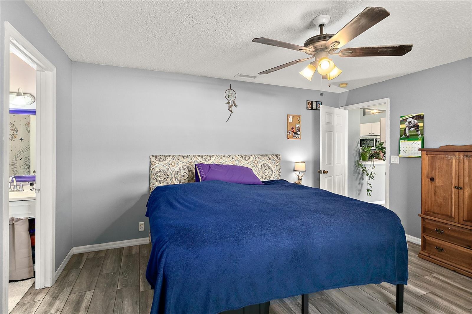 If you looking for a top-notch starter home or are ready to downsize, this home checks all the boxes. A large fenced back yard, with room for all the family and your pets. Or you could add a pool! There's already a shed to store your garden tools along with irrigation system and a well. The convenient kitchen has room for a small table or a coffee bar. The home was built by Skyway Builders, one of the area's best. A split plan allows for privacy with the Primary Bedroom on the opposite side of Bedrooms 2 & 3. Tile floors throughout make for easy upkeep. The metal roof was installed in 2020, HVAC airhandler in 2017, compressor in 2021 and coil in 2024.