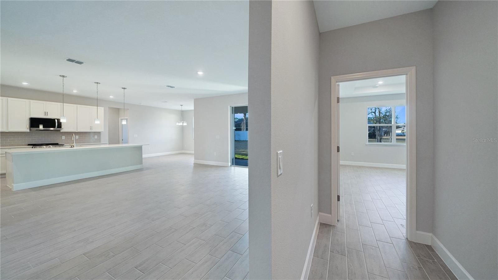 Brand new and energy efficient, by Bright Homes, this residence features clean, modern design and solid concrete block construction, creating a durable, low maintenance living experience. The exterior offers strong curb appeal with clean architectural lines, a stone accented front elevation, a full gutter system, irrigation, and an upgraded modern front door that sets the tone upon arrival. Inside, the Bright Dream floor plan offers an award winning layout with tile flooring throughout and no carpet, creating a bright, spacious main living area ideal for everyday living and entertaining. The kitchen is thoughtfully designed with quartz countertops, upgraded appliances, and 42 inch soft close cabinetry, blending modern style with practical functionality. A flexible bonus space provides versatility for a home office, media room, or additional living area, while a private guest suite with its own full bath offers comfort and privacy for visitors or multigenerational living. The primary suite serves as a relaxing retreat with tray ceilings, 9 foot 4 inch ceiling heights, and a large walk in closet. Living space extends outdoors to the covered lanai, with energy efficient construction throughout. A one year workmanship warranty and a ten year structural warranty provide added peace of mind. Located in the highly sought after Cypress Knoll E Section of Palm Coast, this central location offers the rare advantage of no HOA or CDD fees, along with convenient access to schools, parks, and everyday amenities. Enjoy easy drives to St Augustine and Jacksonville, with Palm Coast’s beaches just minutes away, offering modern new construction without added community costs. Photos are digitally enhanced and could be altered, please verify. Some photos are virtually staged.