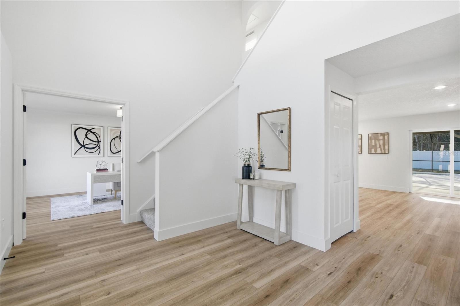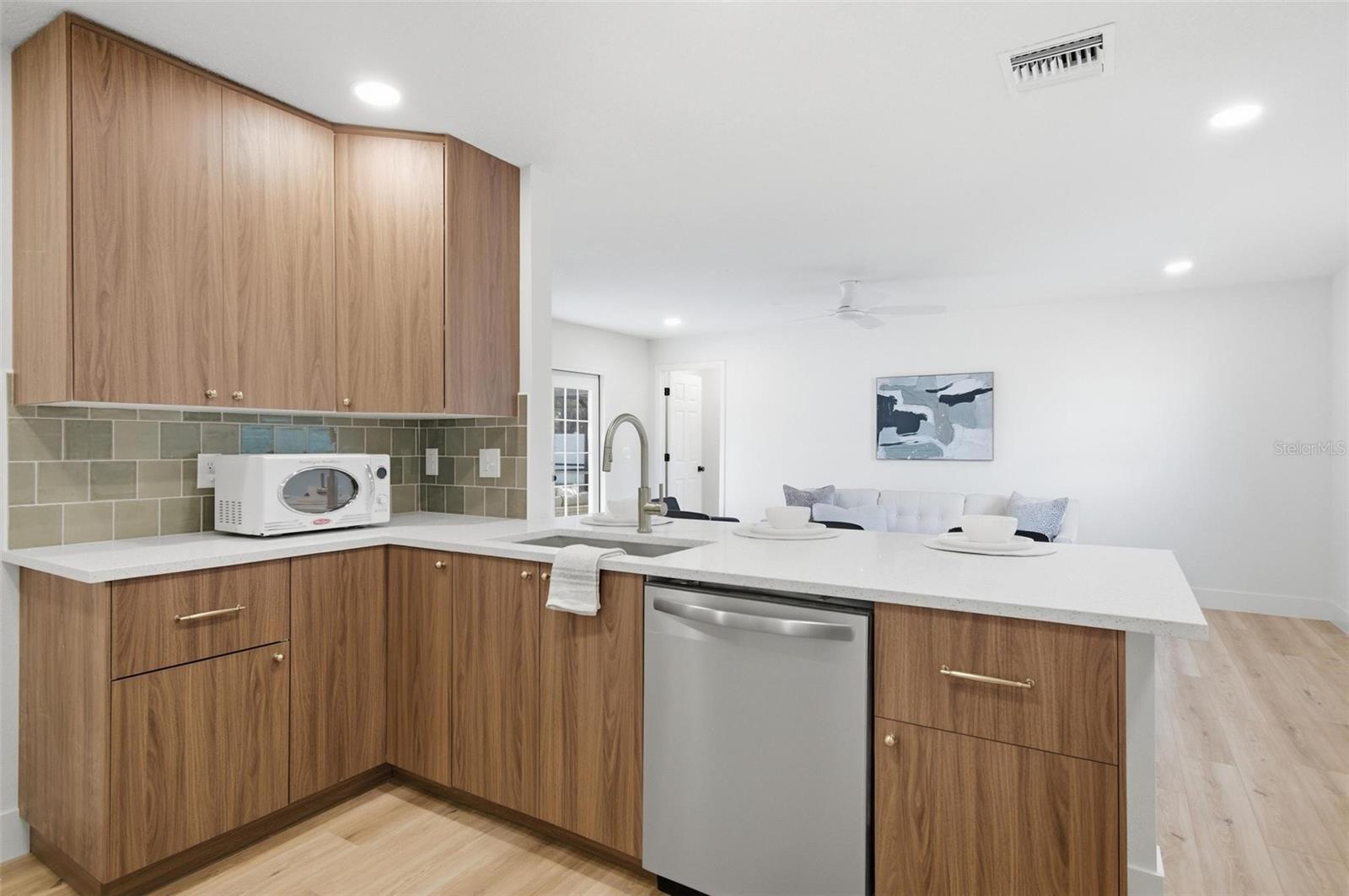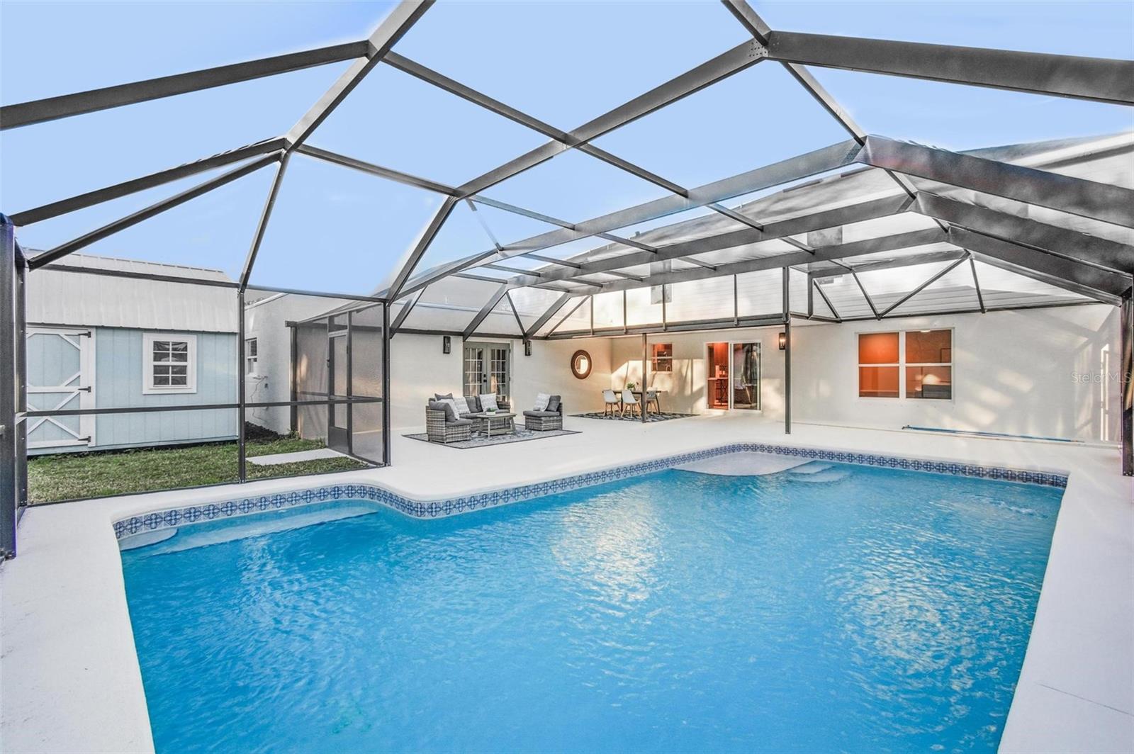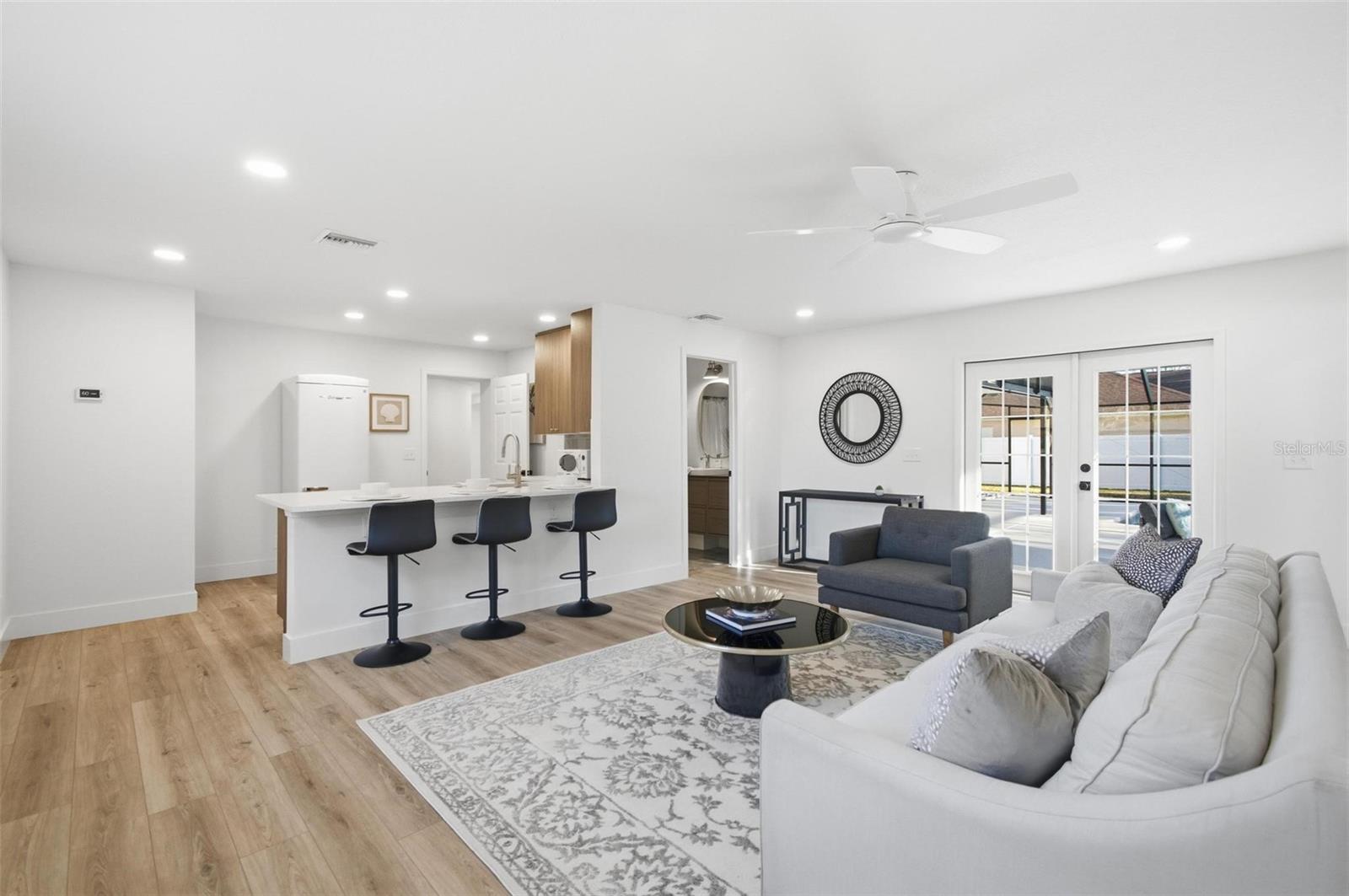 Stunningly remodeled mid-century modern home with space for everyone! 6 bedrooms plus a dedicated office AND a FULL mother-in-law suite with private bath, kitchen, bedroom, and living room. The main kitchen is beautifully updated with quartz countertops and green subway tile and flows seamlessly to the outdoor entertaining area, featuring a gorgeous pool and expansive patio space. Upstairs, there are five guest bedrooms plus the large Primary Suite, with an ensuite bathroom and walk in closets. The property offer a spacious yard, newer shed, and a brand new fence! Perfect home for generational living or those needing a little extra space. Brand new roof, newer A/Cs, and newer water heater complete this move-in ready home. 5 minutes to Target and 12 minutes to the beach!