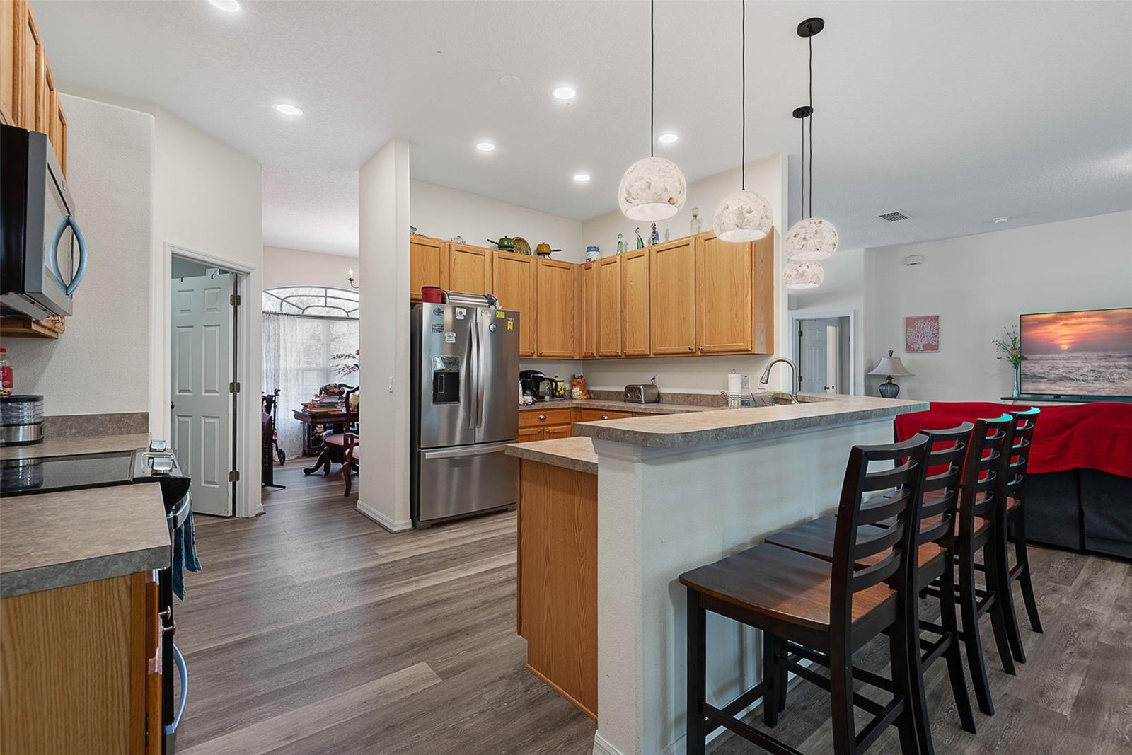Located in the beautiful Pine Lakes area of Palm Coast, this 4-bedroom, 2-bathroom home features a desirable split floor plan and is just minutes from beaches, restaurants, and shopping. Recent upgrades include a new 4-ton AC (2025) and a roof replaced in 2020, offering peace of mind for years to come. Inside, you’ll find new vinyl plank flooring, new carpet, and custom lighting throughout. The kitchen is equipped with 1-year-old Whirlpool appliances, and the updated bathroom adds a modern touch. A new sliding glass door and front entry door enhance both curb appeal and functionality. Move-in ready, thoughtfully updated, and well laid out for privacy — this home is a must-see.
