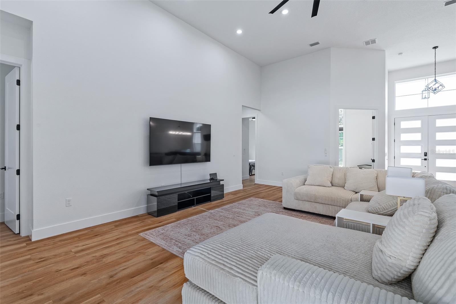 Welcome to 7 Fortune Lane in Palm Coast, a brand-new custom home built by Wise Choice Custom Homes and ready for its first owners. From the moment you pull up, the lush landscaping and clean, modern lines give the home a strong first impression. It’s the kind of place people slow down to look at when they drive by. Step through the double French doors and you’re immediately met with 14-foot ceilings, large windows, and an open layout that makes the whole home feel bright and relaxed. The main living area flows naturally into the kitchen and out to the covered patio thanks to a three-panel sliding glass door that opens wide for gatherings, cookouts, or just enjoying a quiet evening outside. The builder didn’t cut corners here — from the grand light fixtures to the deep farmhouse sink and upgraded finishes, everything feels solid and well thought out. The kitchen is the centerpiece of the home and built to be used. A massive 16-foot island gives you all the prep and seating space you could want, paired with custom 44-inch cabinetry, plenty of storage, a wine cooler, and quality appliances. It’s easy to picture hosting holidays here or having everyone gather around while dinner is cooking. The split floor plan keeps things comfortable and private. The primary suite sits on its own side of the home and feels like a true retreat with his-and-her closets and a spacious bathroom featuring a floor-to-ceiling tiled shower and clean, modern finishes. On the opposite side, you’ll find three additional bedrooms, two full baths, and a dedicated office that works perfectly for remote work, a gym, or a quiet study. One of the most appealing features is the separate in-law suite. Tucked away for privacy, it has its own bedroom and full bath, making it ideal for extended family, long-term guests, or even a live-in parent. It gives everyone their own space while still being under one roof, which is something more buyers are looking for today. The fenced backyard offers room for kids, pets, and weekend get-togethers, with space to add a pool or create your own outdoor setup. At just under 2,500 square feet, the home feels spacious without being overwhelming, and every inch was designed to be both comfortable and functional. Location-wise, you’re in a prime Palm Coast spot — just minutes to shops, restaurants, and everyday conveniences, and about six minutes to the beach. You get the feel of a quiet neighborhood with the benefit of being close to everything. This is a solid, well-built new construction home with the upgrades already done and the space people actually want. It’s move-in ready and waiting for someone to make it their own.