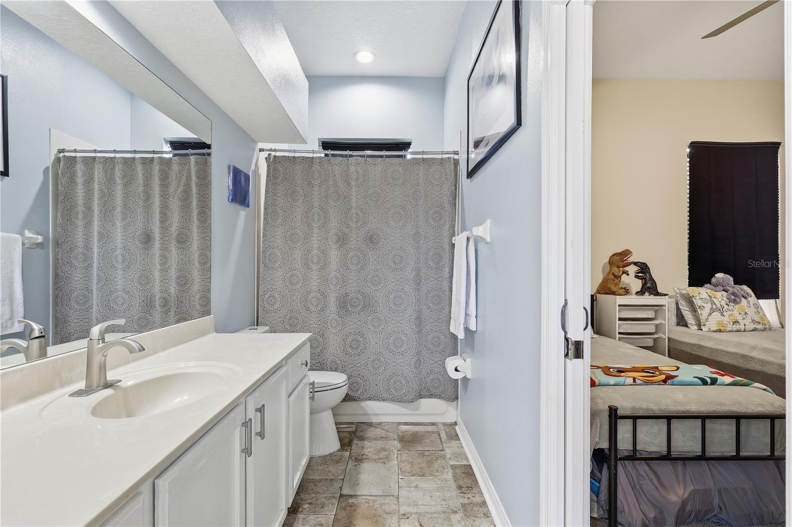 Beautifully updated 4BR/3BA custom home with a 3-car garage, circular driveway, and a private fenced yard in the wonderful Pine Lakes neighborhood of Palm Coast. This spacious split floor plan offers formal living and dining rooms plus a cozy family room—perfect for everyday living and entertaining. The updated eat-in kitchen features quartz countertops, stainless steel appliances, a center island and plenty of space for gatherings. Tray ceilings add elegance to the living, dining, and family rooms, complemented by tile flooring and newer carpet. The primary suite is a true retreat with dual vanities, a garden tub, a large walk-in shower, and his-and-hers walk-in closets. Enjoy Florida living on the large covered and screened porch overlooking the fenced backyard—ideal for relaxing, pets, and play. With a 3-car garage and ample parking, hosting friends and family is easy. Major updates include: enlarged ductwork for improved airflow (2025), 50-gallon water heater (2026), A/C (2020), tile & carpet (2022), interior paint (2022), exterior paint—Sherwin-Williams (2025), new roof with skylights (2024), new ceiling fans & lighting (2022), quartz countertops (2022), and new toilets (2023). Centrally located close to major shopping, dining, and Palm Coast’s famous beaches, plus miles of walking and biking trails and Pine Lakes Golf Course—this move-in ready home is a rare find!