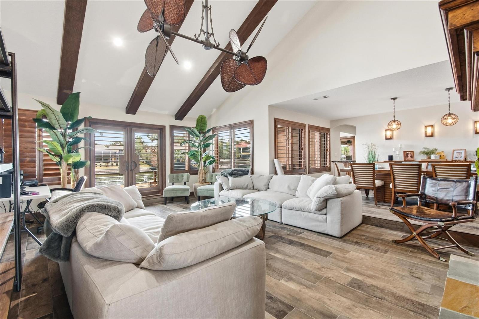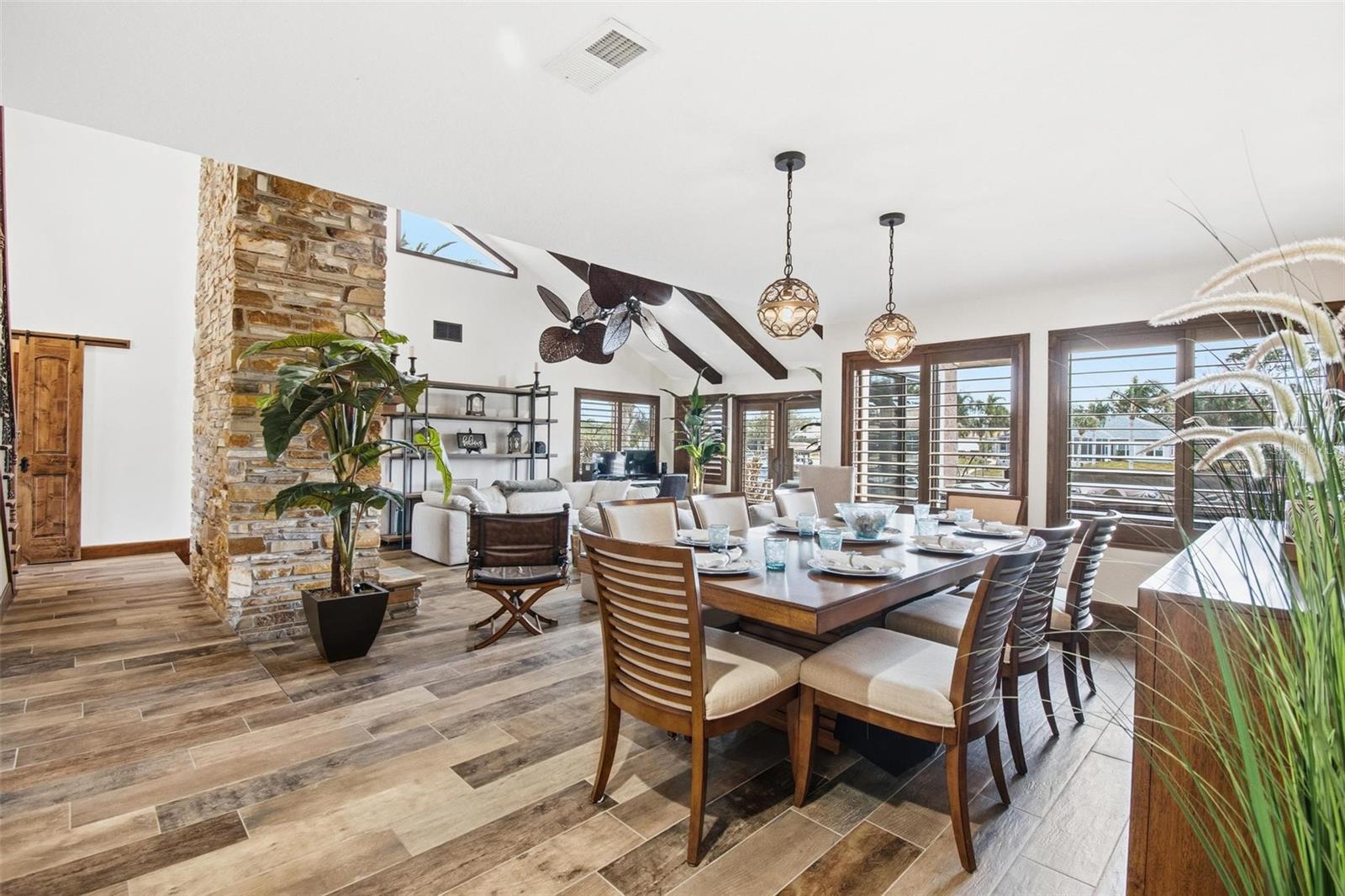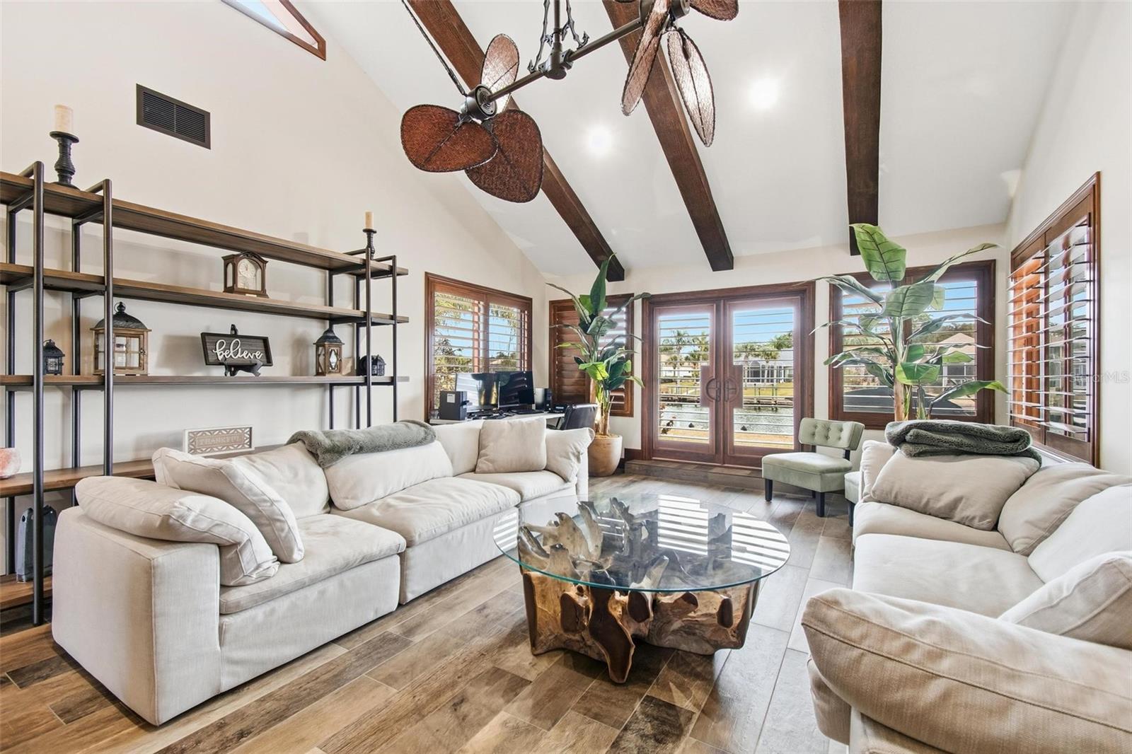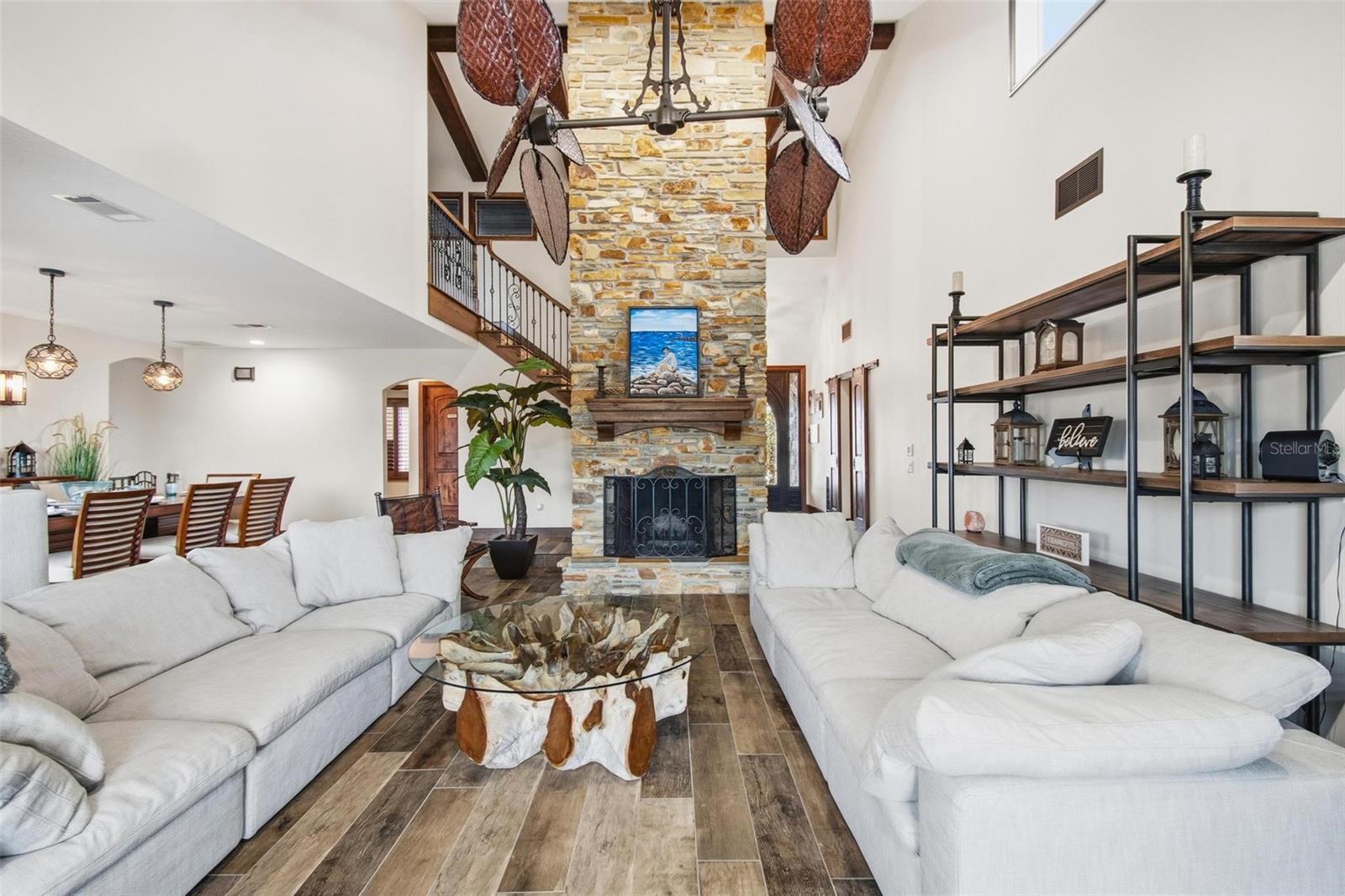 3583 Sq Ft. Home with 4 Bedrooms and 3 full baths on gorgeous canal in Sailboat Country right around the corner from the Intracoastal. 3 Bedrooms and 2 baths downstairs. Huge Primary Suite is entirely upstairs with a large balcony that was just re-done. Large walk-in custom closet, In the bathroom there are 2 vanities with custom cabinetry and a large makeup vanity all with granite counters, 2 Person jet tub with remote control. All closets have custom built in’s Ceiling fans in all rooms 2 woodburning fireplaces Laundry room with lots of storage cabinets Dream custom kitchen with huge Island with cabinets that have pullouts and drawers on both sides. Smaller Island has cabinets and drawers on both sides 48 in. 6 burner dual fuel range with 2 ovens and a grill. Gas cooktop and electric ovens Separate wall oven and microwave Quartz Countertops Walk in pantry Saltwater pool with electric heater Separate Salt Water Hot Tub Outdoor kitchen with permanent concrete table Huge dock with boat lift Floating jet ski dock for 2 jet skis’ Gorgeous landscaping Formal Dining Room Formal Living Room Family room 2 bedrooms and 1 bath downstairs are in their own wing with a barn door entrance. Custom plantation blinds on every window Beautiful tile in all rooms. Wood Floors in primary suite 250-gallon inground propane tank New roof (2025) New Balcony (2025) Whole house water purifier Tankless water heater Hurricane rated garage door Custom Finleo Sauna (in garage)