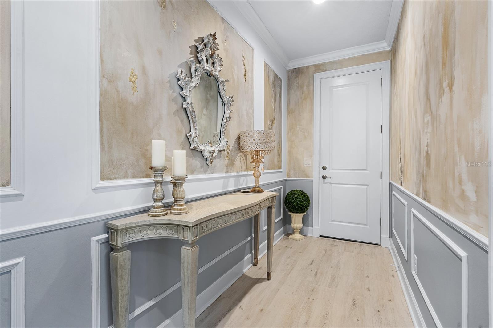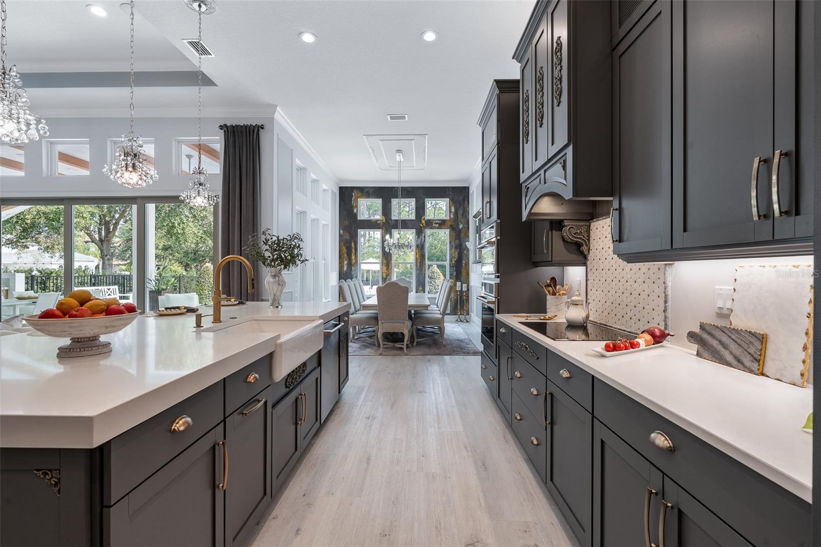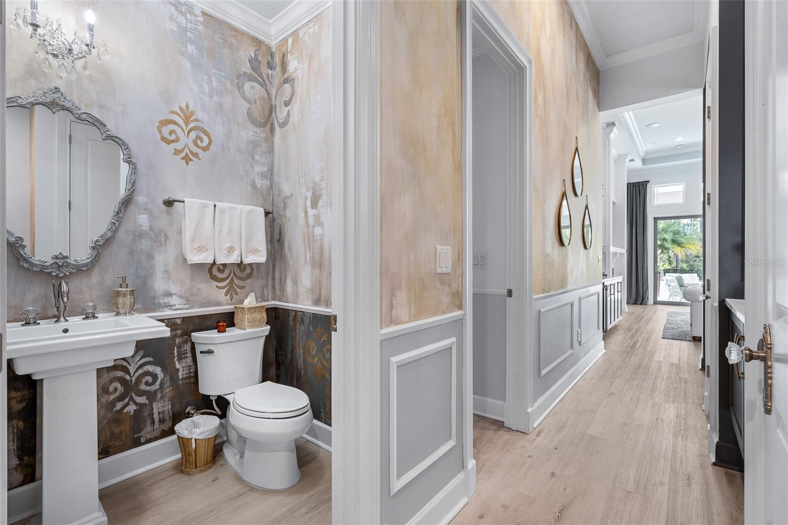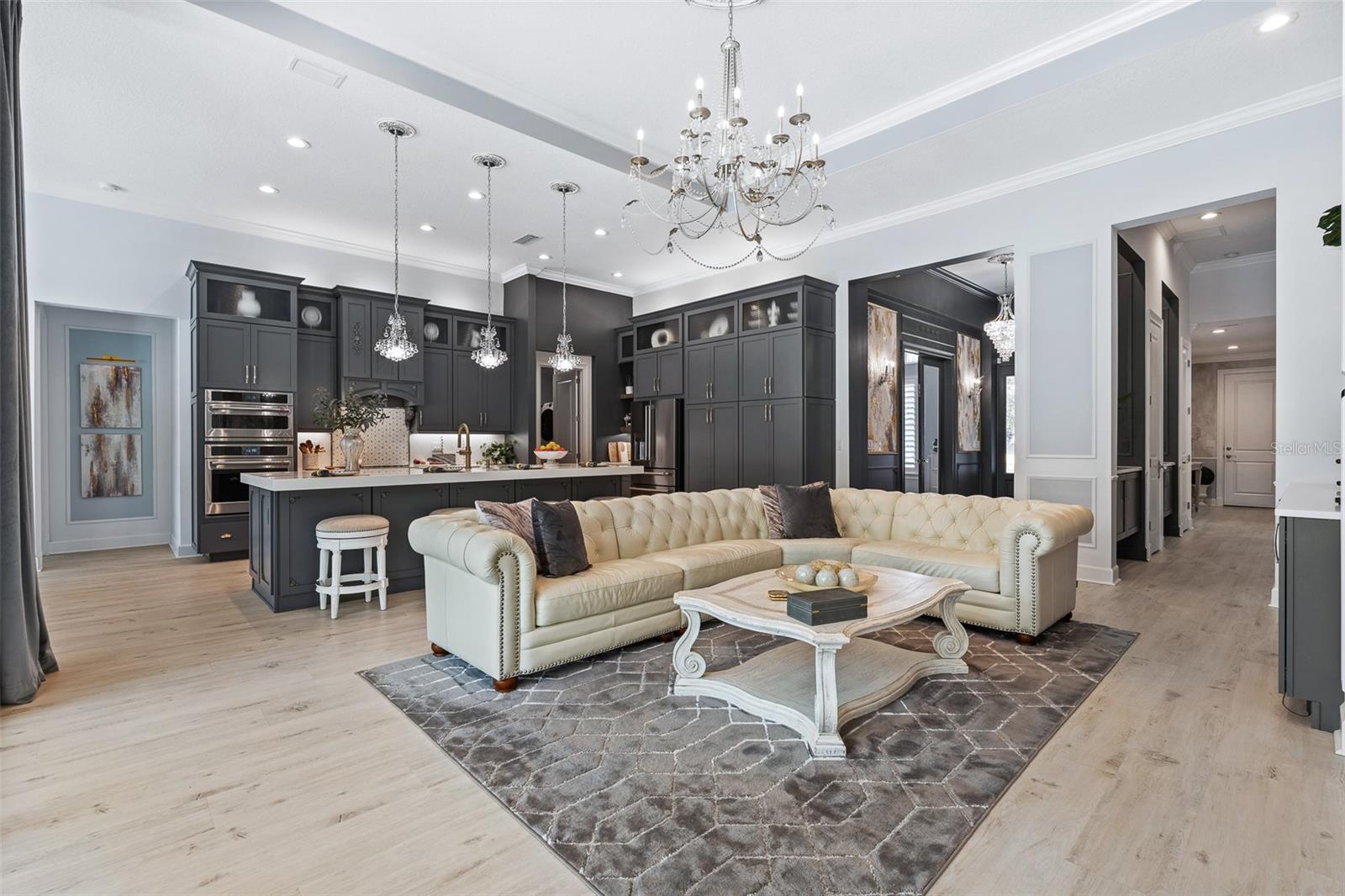 Elegant and unique, customized pool home on over 1/3 acre (15,605 sq ft). 4 bedrooms plus a den/office with 4 bathrooms and a split 4 car garage. This home has two beautiful settings with a water view in the front and a preserve view in the back, all surrounded by mature trees and landscaping. Oversized fenced yard with east exposure perfect for entertaining. This home is over 4,100 square feet total and over 2,900 sq ft of living space. 12' plus ceilings in living area and tray ceilings in living room and owner's bedroom. Smooth walls throughout. Transferable National New Home Warranty Program to 2033. Beautiful detail throughout with crown molding in every room, wall molding designs, 8' doors and upgraded, Nostalgic Warehouse brand interior door hardware, custom paint colors, custom wall artistry and beautiful light fixtures, chandeliers, and fans. Luxury vinyl plank and tile floors. Plantation shutters in all bedrooms, office, and garage. GE Smart Cafe brand appliances in kitchen and bar. Extended laundry area with refrigerator and large capacity GE Smart stack washer and dryer. 50-gallon AO Smith Hybrid electric water heater with recirculating pump and timer. GE 300 Amp electric service panel. Carrier high efficiency 16 SEER HVAC system. Alexa compatible smart home lighting, Surround sound system with Kilpsch speakers in great room and on lanai. Seven Samsung TVs, including Frame TV in Living Room. Full home security system with 2 keypads. Ring doorbell and video system. 60" Dimplex electric fireplace with heater blower and color features. Retractable Dirt Devil central vacuum system throughout and car vacuum kit in garage. California brand closets, custom garage storage cabinets with work bench, Monkey Bar brand shelving, high quality epoxy floors and attic access pull-down stairs in both 2-car garages. Summer kitchen with Coyote brand BBQ with exhaust hood, sink and beverage refrigerator. Cedar beam ceiling on covered lanai and cedar plank ceiling at outdoor entry. Full exterior seamless gutters tied to an underground drainage system. Fenced and hedged yard with Hampton style heated pool with LED changeable colors, natural tumbled limestone deck, and automatic pest spray system. Professional landscaping and low voltage lighting in front and rear. Many upgrades and improvements were added after the original construction. HOA includes individual lawn maintenance, irrigation with water from the lakes, common area maintenance, security gates, Hotwire TV, and internet. Solid Homeowners Association with over $1 million in reserves. With just 340 total homesites with golf, water or preserve views, The Conservatory is a gated, prestigious custom home community affiliated with the Hammock Beach Club. When joining the Hammock Beach Club, you will enjoy a beautiful Tom Watson designed 18-hole golf course, pro shop, clubhouse, fitness center, heated pool, breakfast and lunch cafe and separate event dining room located within the gates of The Conservatory. In addition, the Hammock Beach Resort Club boasts a second 18-hole golf course, The Ocean Course, and a variety of amenities, including indoor/outdoor pools, several restaurants, tennis, pickleball, a full calendar of planned events and beach activities. See link for Hammock Beach Club information https://www.theclubathammockbeach.com/