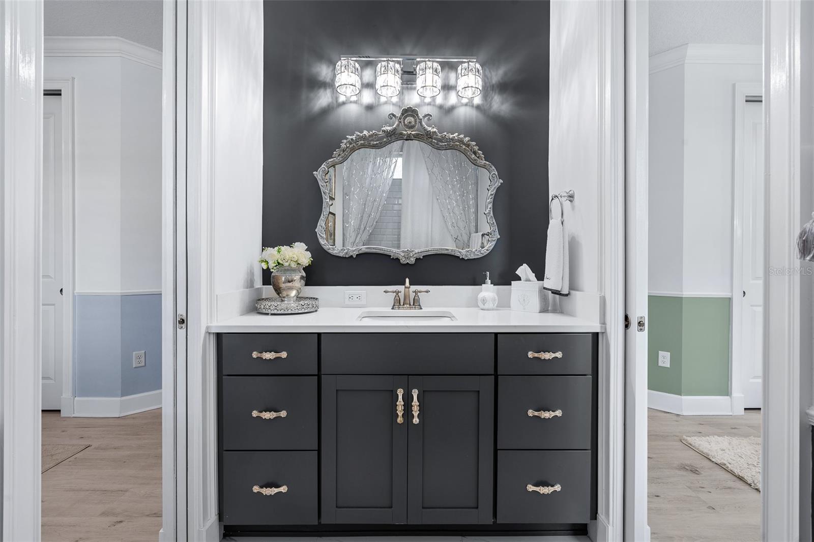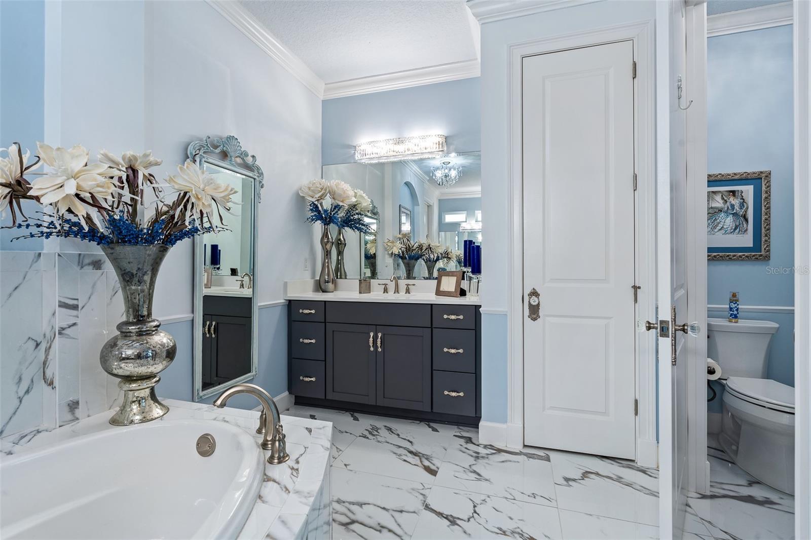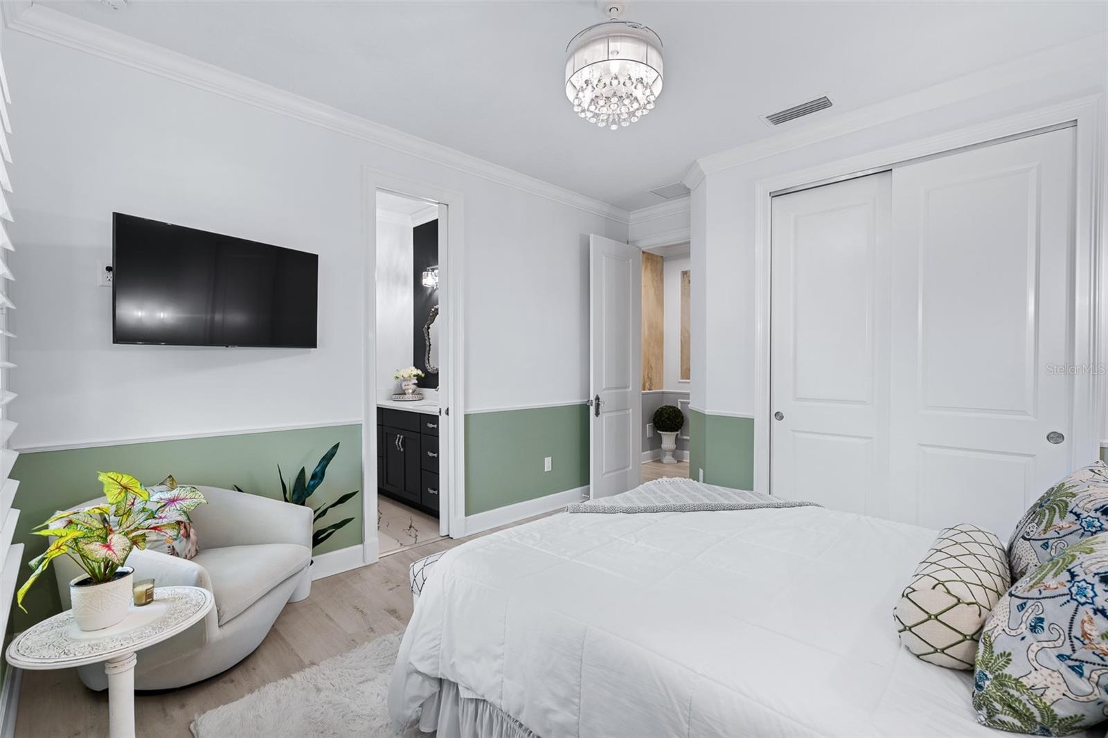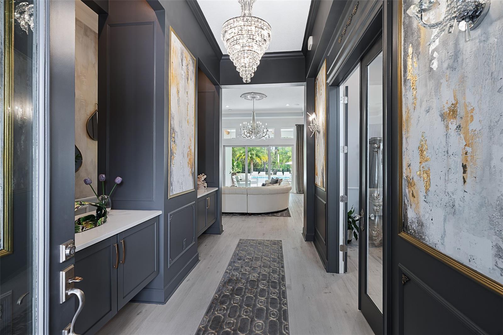 Elegant and unique, customized pool home on over 1/3 acre (15,605 sq ft). 4 bedrooms plus a den/office with 4 bathrooms and a split 4 car garage. This home has two beautiful settings with a water view in the front and a preserve view in the back, all surrounded by mature trees and landscaping. Oversized fenced yard with east exposure perfect for entertaining. This home is over 4,100 square feet total and over 2,900 sq ft of living space. 12' plus ceilings in living area and tray ceilings in living room and owner's bedroom. Smooth walls throughout. Transferable National New Home Warranty Program to 2033. Beautiful detail throughout with crown molding in every room, wall molding designs, 8' doors and upgraded, Nostalgic Warehouse brand interior door hardware, custom paint colors, custom wall artistry and beautiful light fixtures, chandeliers, and fans. Luxury vinyl plank and tile floors. Plantation shutters in all bedrooms, office, and garage. GE Smart Cafe brand appliances in kitchen and bar. Extended laundry area with refrigerator and large capacity GE Smart stack washer and dryer. 50-gallon AO Smith Hybrid electric water heater with recirculating pump and timer. GE 300 Amp electric service panel. Carrier high efficiency 16 SEER HVAC system. Alexa compatible smart home lighting, Surround sound system with Kilpsch speakers in great room and on lanai. Seven Samsung TVs, including Frame TV in Living Room. Full home security system with 2 keypads. Ring doorbell and video system. 60" Dimplex electric fireplace with heater blower and color features. Retractable Dirt Devil central vacuum system throughout and car vacuum kit in garage. California brand closets, custom garage storage cabinets with work bench, Monkey Bar brand shelving, high quality epoxy floors and attic access pull-down stairs in both 2-car garages. Summer kitchen with Coyote brand BBQ with exhaust hood, sink and beverage refrigerator. Cedar beam ceiling on covered lanai and cedar plank ceiling at outdoor entry. Full exterior seamless gutters tied to an underground drainage system. Fenced and hedged yard with Hampton style heated pool with LED changeable colors, natural tumbled limestone deck, and automatic pest spray system. Professional landscaping and low voltage lighting in front and rear. Many upgrades and improvements were added after the original construction. HOA includes individual lawn maintenance, irrigation with water from the lakes, common area maintenance, security gates, Hotwire TV, and internet. Solid Homeowners Association with over $1 million in reserves. With just 340 total homesites with golf, water or preserve views, The Conservatory is a gated, prestigious custom home community affiliated with the Hammock Beach Club. When joining the Hammock Beach Club, you will enjoy a beautiful Tom Watson designed 18-hole golf course, pro shop, clubhouse, fitness center, heated pool, breakfast and lunch cafe and separate event dining room located within the gates of The Conservatory. In addition, the Hammock Beach Resort Club boasts a second 18-hole golf course, The Ocean Course, and a variety of amenities, including indoor/outdoor pools, several restaurants, tennis, pickleball, a full calendar of planned events and beach activities. See link for Hammock Beach Club information https://www.theclubathammockbeach.com/