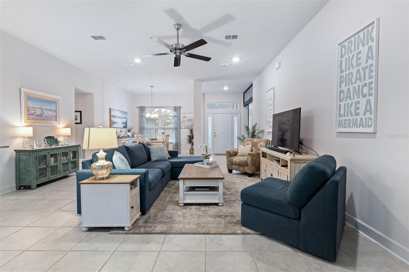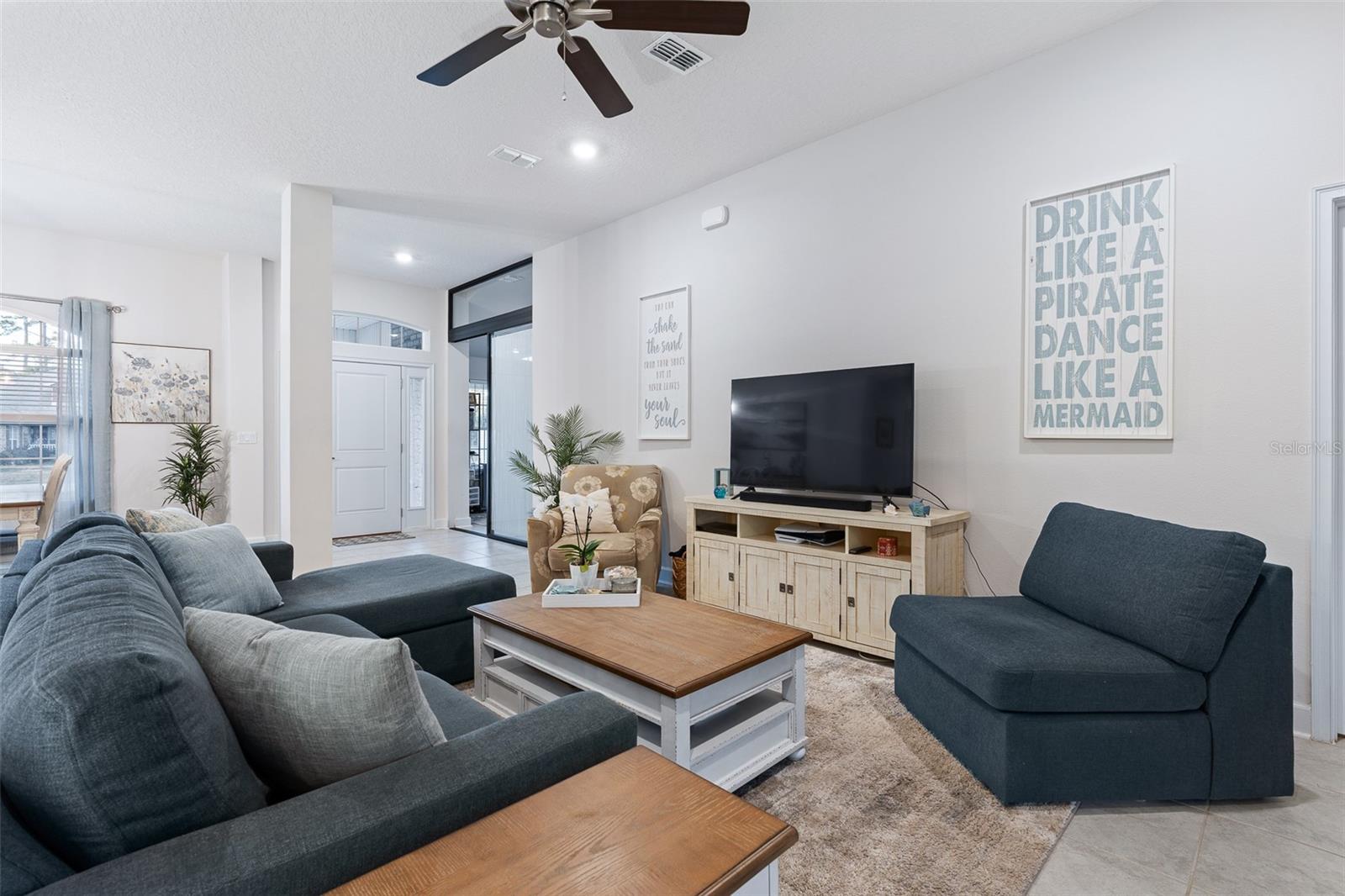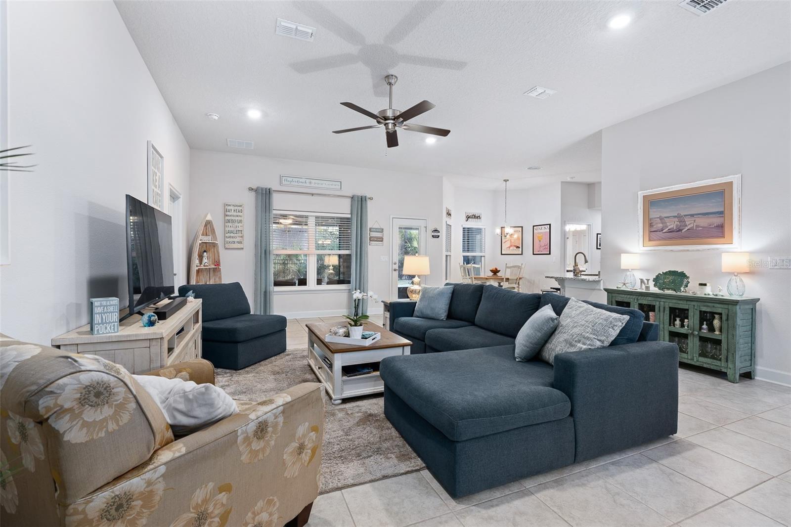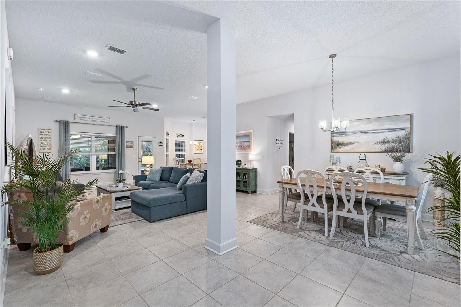 This beautifully upgraded 2023 Seminole Woods home boasts nearly $50,000 in upgrades! There is no need to wait for a pool installation, as this home features a brand-new, sparkling pool with an upgraded travertine patio, completed in January 2026! The spacious open floor plan of this brick construction home showcases soaring ceilings, four bedrooms, and three full bathrooms, with a thoughtfully designed split-bedroom layout. The office includes a newly installed glass partition and door, allowing an abundance of natural light to illuminate the space. The kitchen offers a large breakfast bar and granite countertops, complemented by a delightful view of the new pool. The oversized primary bedroom provides direct access to the lanai and pool, along with new dual custom closets and dual bathroom vanities. Two bedrooms located at the rear of the home share a generously sized bathroom featuring dual vanities, which also serves as a convenient pool bath. Perfect for in-law living, the front bedroom includes its own shared bathroom, ensuring privacy from the other bedrooms. The yard is enclosed with a vinyl privacy fence to the front and sides, while a metal fence enhances the view from the backyard. The home is also equipped with newly installed gutters, and the lanai has been screened. Situated on the south side of Palm Coast, this property is just a short drive from Flagler Beach and Ormond Beach. It enjoys close proximity to shopping in Palm Coast, as well as easy access to I-95 and US-1 for travel and commuting. Additionally, the Seminole Woods Neighborhood Park is merely a short walk away. Schedule your tour today to experience this stunning Seminole Woods home before it is gone!
