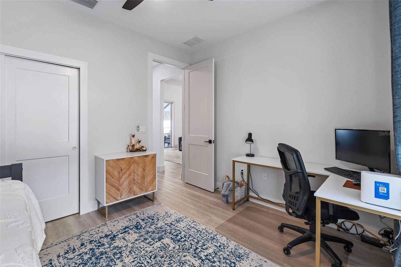 Welcome to this stunning, nearly new modern home that delivers the elevated lifestyle you've been searching for. Built in 2021, this 3-bedroom, 2-bathroom concrete block home in Palm Coast, Florida combines contemporary design with high-end finishes that feel anything but builder-grade. From the moment you step inside, soaring 12 and 11-foot ceilings, smooth walls, and luxury vinyl plank flooring throughout create an expansive, airy atmosphere that immediately sets this home apart. The open-concept layout flows effortlessly from the dramatic electric fireplace focal wall to the chef-inspired kitchen featuring a center island — perfect for entertaining or everyday living. Step outside to your private oasis: a sparkling pool and large screened lanai that extend your living space year-round in true Florida fashion. Whether you're a first-time buyer seeking modern style, a family wanting move-in ready convenience, or a buyer tired of dated finishes, this home delivers on every level. Key Property Features Modern Construction: Concrete block build completed in 2021 — low maintenance, energy efficient, and built to current codes Bedrooms/Bathrooms: 3 spacious bedrooms | 2 full bathrooms Soaring Ceilings: 12-ft ceilings in main living area open feel throughout Luxury Flooring: LVP (luxury vinyl plank) flooring installed throughout the entire home — durable, stylish, and easy to maintain Premium Interior Finishes: Smooth walls, 5-inch baseboards, and 8-foot interior doors elevate every room beyond typical new construction Electric Fireplace Focal Wall: A stunning statement piece that anchors the living area and adds warmth and ambiance Chef's Kitchen: Center island layout ideal for meal prep, casual dining, and entertaining guests High-End Aesthetic: Thoughtful finishes throughout give the home a custom, luxury feel from entry to exit Outdoor Living: Large screened lanai overlooking a private pool — your personal Florida retreat for relaxing, dining, or hosting Concrete Block Construction: Added durability, better insulation, and lower insurance costs compared to frame construction Location & Community Benefits – Palm Coast, FL Palm Coast offers one of Florida's most desirable outdoor lifestyles, and this home puts you right in the middle of it: Trails & Outdoor Recreation: Access to over 125 miles of dedicated bike trails and walking paths winding through neighborhoods and nature preserves Parks & Nature: Proximity to Graham Swamp Conservation Area, Linear Park, and Flagler County's beautiful Atlantic beaches just minutes away Shopping & Dining: Convenient access to Palm Coast's Town Center and a growing corridor of local restaurants and retail Commuter Friendly: Easy access to US-1 and I-95 for quick connections to Daytona Beach, St. Augustine, and Jacksonville What makes this 2021-built home stand out from other listings in Palm Coast? Unlike resale homes that require updates, this home was built in 2021 with high-end finishes already in place. Highlights include LVP flooring throughout, 12 and 11-ft ceilings, smooth walls, 5-inch baseboards, 8-ft doors, a center island kitchen, electric fireplace focal wall, and a screened pool lanai — all in a solid concrete block construction that's both durable and energy efficient.