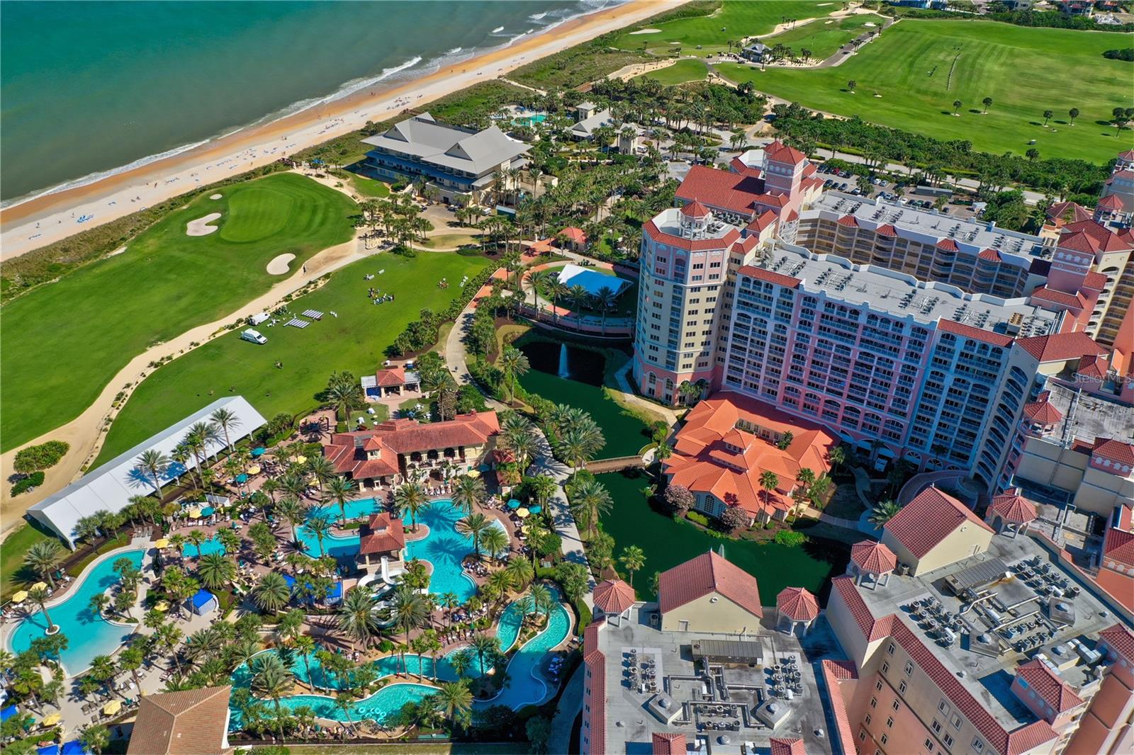 Located within Hammock Beach Resort, this 1-bedroom, 1-bath condominium offers 678 square feet of efficient, well-designed living space with direct views of the Atlantic and the Ocean Course. Whether you’re looking for a personal retreat or an income-producing property, this unit checks both boxes. Offered fully furnished and turnkey for rental. The interior features a welcoming tiled entry, tray ceilings with crown detail, and sliding glass doors that open to a private balcony overlooking the ocean and fairways of the Jack Nicklaus signature design—Ocean Course. Natural light fills the main living area, creating a bright, open feel despite the smart, compact footprint. The kitchenette provides everything needed for short-term stays or weekend escapes, while the spacious bathroom includes a double vanity, walk-in shower, soaking tub, and quality finishes throughout. As a member of The Club at Hammock Beach, you’ll have access to a resort lifestyle few places can rival: multiple pools including a lazy river and waterslide, a world-class spa and fitness center, tennis and pickleball courts, two championship golf courses, and a selection of upscale dining experiences. Whether you choose to enjoy this residence as a year-round coastal home or place it in the highly successful Hammock Beach rental program, it offers both an enviable lifestyle and proven investment potential—all with the Atlantic as your backdrop.