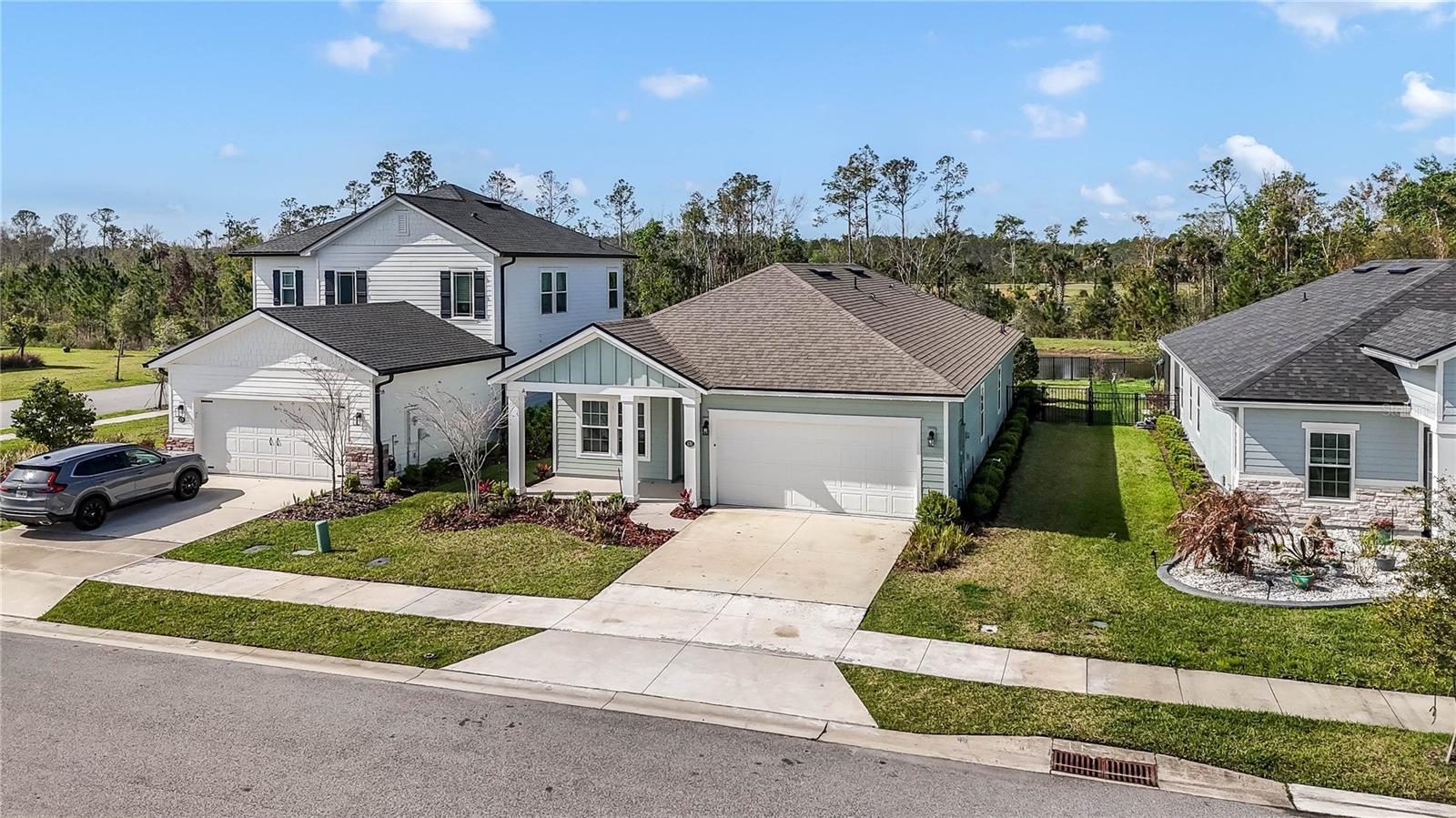 Welcome to a beautifully upgraded home in the sought-after Grand Landings community, built in 2022 and thoughtfully enhanced for modern living and style. This move-in ready home features fresh interior paint and brand-new carpet in all bedrooms, creating a clean, inviting feel throughout. The kitchen is upgraded with a stylish backsplash, while both bathrooms provide enhanced builder tile, adding a polished touch. The primary suite stands out with new bay windows, filling the space with natural light and creating the perfect spot for a cozy sitting area. Additional upgrades include modern light fixtures throughout for a clean, updated look. Enjoy Florida living with a covered front porch and a covered back lanai, ideal for relaxing or entertaining. Located on a quiet cul-de-sac, this home backs up to a peaceful pond and preserve, offering exceptional privacy with no rear neighbors. The fully fenced backyard includes three access gates, providing both convenience and functionality. A perfect blend of upgrades, privacy, and location—ready for its next owner to enjoy.