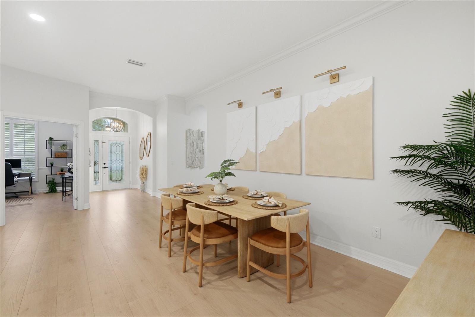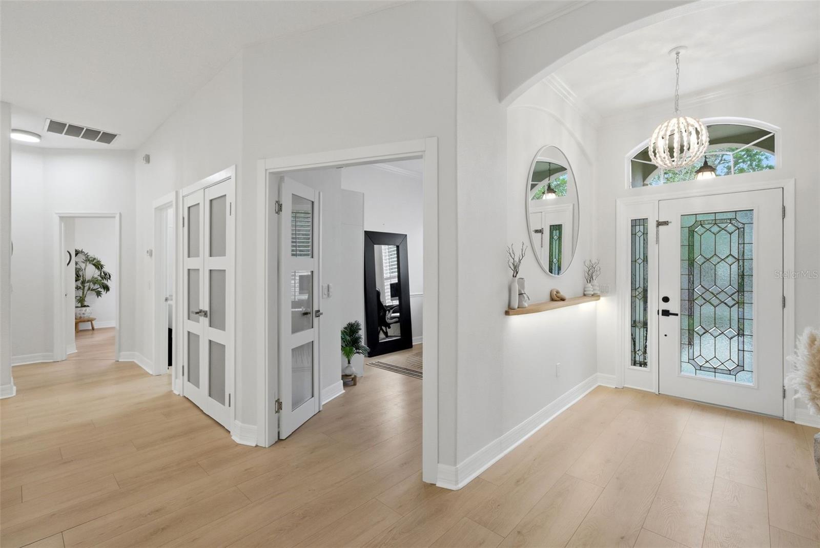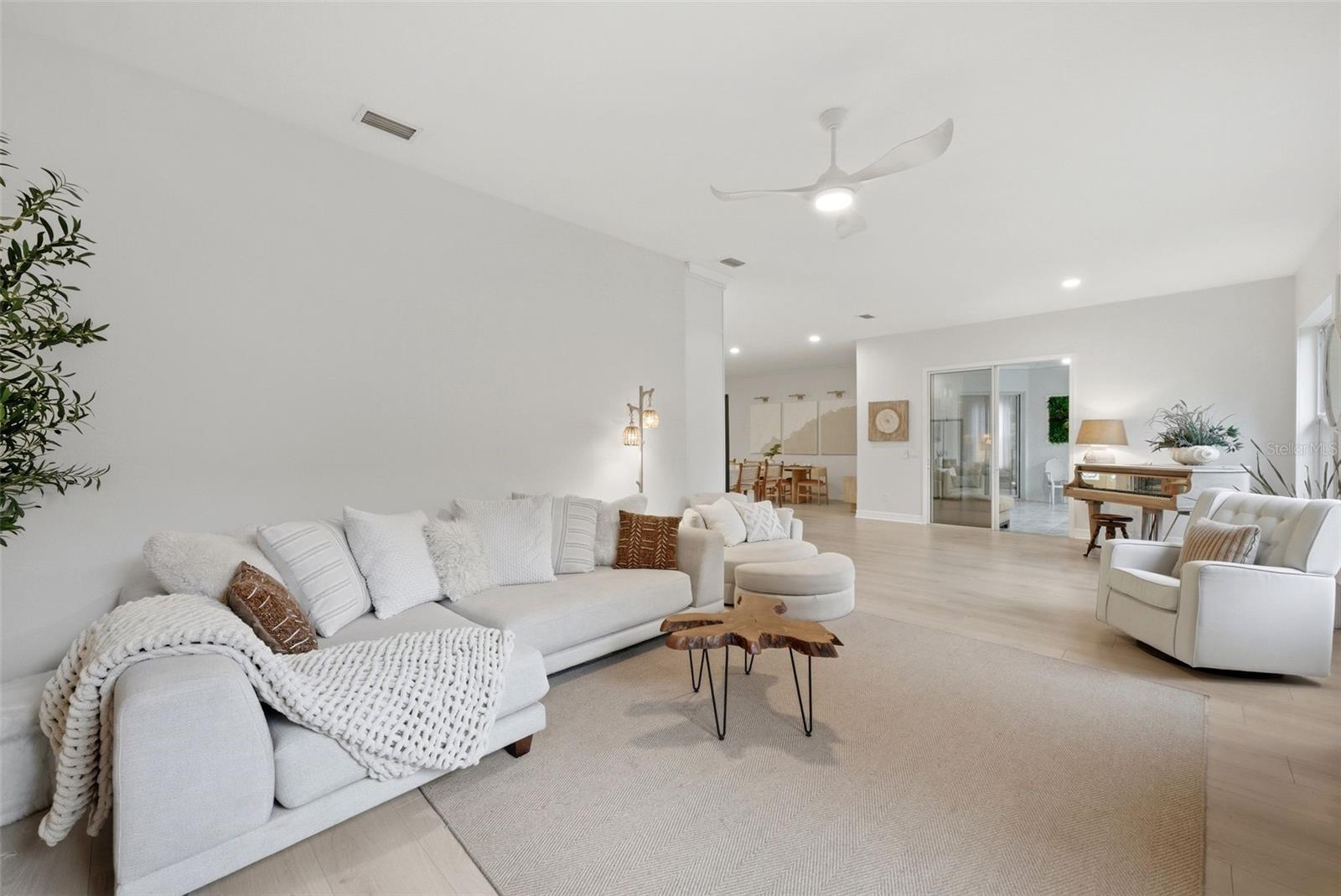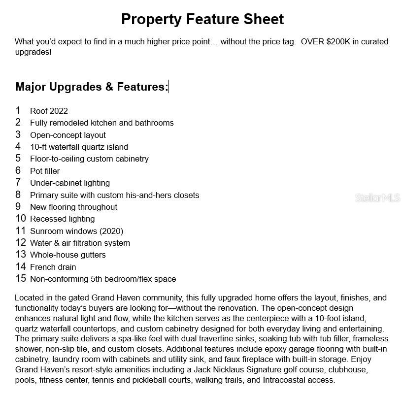 Million Dollar Feel. Without the Million Dollar Price Tag. Over $200K in renovations poured into every inch — meticulously designed, obsessively detailed, with luxury living in mind. Major upgrades include: Roof 2022 | Open-Concept Designer Layout | Fully Remodeled Chef's Kitchen & Spa Bathrooms | 10-FT Waterfall Quartz Island | Floor-to-Ceiling Custom Cabinetry | Custom Built-In Pantry | Chef's Pot Filler | Warm Under-Cabinet Lighting | New Flooring Throughout | Recessed Lighting Throughout | Custom His & Hers Closets | Whole-House Water & Air Filtration System | Full Gutter System | French Drains | Additional Non-Conforming 5th Bedroom / Home Office / Flex Space | Sunroom with Hurricane-Impact Windows 2020 | The Stunning, Fully-Finished Sunroom offers 340 Additional Square Feet of Living Space! Located behind the gates of the prestigious Grand Haven community, this fully upgraded home delivers the finishes, the flow and the feeling of a property worth far more. Nothing was overlooked. From the foundation to the fixtures, every upgrade was chosen with intention — for the "organic modern" feel that today's buyers want. The open-concept design enhances natural light and flow, while the kitchen serves as the centerpiece with a 10-FT Island, Quartz Waterfall Countertops, and Custom Cabinetry designed for both everyday living and entertaining. The primary suite is pure sanctuary — Dual Travertine Vanities, a Freestanding Soaking Tub, a Walk-In Wet-Room / Shower with 8-FT Frameless Glass and Brushed Gold Accents, Non-Slip Floor Tile, and Custom Mirrored Closets. Every room delivers. Additional features: Epoxy Garage Flooring with Built-In Cabinetry, Laundry Room with Cabinets and Utility Sink, Faux Fireplace with Built-In Storage, and an Outdoor Patio with Planters and String Lights. Enjoy Grand Haven’s resort-style amenities including a Jack Nicklaus Signature Golf Course, Clubhouse, 2 resort-style pools with a Restaurant and Tiki Bar, Fitness Center with Daily Classes, Tennis and Pickleball Courts, Walking Trails, and Intracoastal access. Move-in ready. Fully upgraded. Designed for modern living. Furniture is available for purchase. Buyer to verify all measurements. Information is deemed reliable, but not guaranteed.