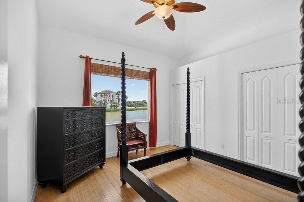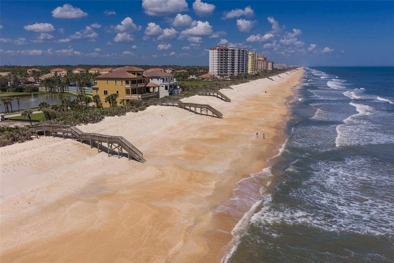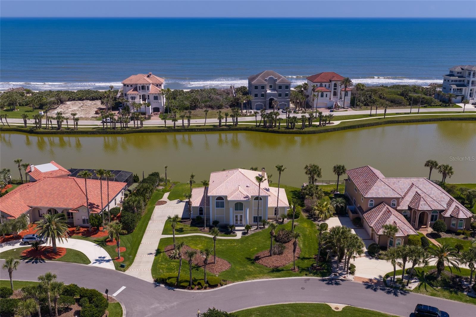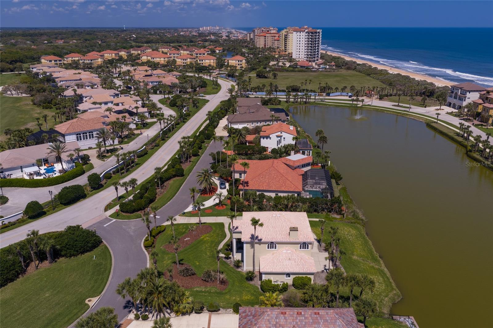 EXQUISITE LAKEFRONT OCEAN VIEW residence in the highly-coveted, gated community of HAMMOCK DUNES, just steps from the Atlantic Ocean with private beach access. From the moment you enter this custom home, expansive water views create an immediate sense of tranquility, immersing you in the natural beauty of this Audubon-certified coastal sanctuary. On the first level, two spacious guest rooms and two full bathrooms, plus a private den, open to a large family/media room with a custom wet bar, ideal for entertaining in relaxed coastal elegance. Ascend the dramatic staircase to the main living area with stunning ocean and lake views from every room. The great room featuring a cozy fireplace, flows seemlessly into the dining area and gourmet kitchen, designed for the modern chef with granite countertops and generous space for gatherings. The primary suite serves as a serene retreat, offering a spa-inspired bath and peaceful views of the surrounding landscape. Recent renovations have elevated this home to like-new condition, blending mediterranean architecture with classic style. Spacious 3-car garage provides abundant storage. Positioned on sought-after San Gabriel Lane within the revered Hammock Dunes community, residents enjoy private beach access and the quiet sophistication of coastal living at its best. Membership to the Hammock Dunes Club is available but not required and offers two championship golf courses, an oceanfront clubhouse with world class amenities including dining, fitness center, heated pool and spa, tennis, pickle ball, croquet and much more. This is more than a home-it's a private sanctuary where luxury, serenity, and seaside beauty exist in perfect harmony.