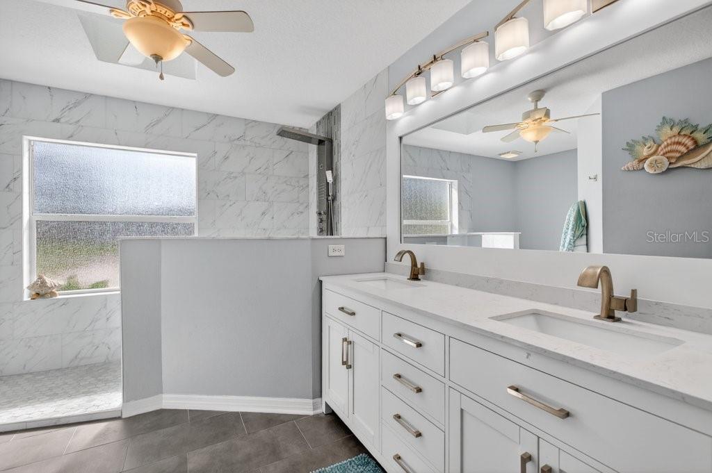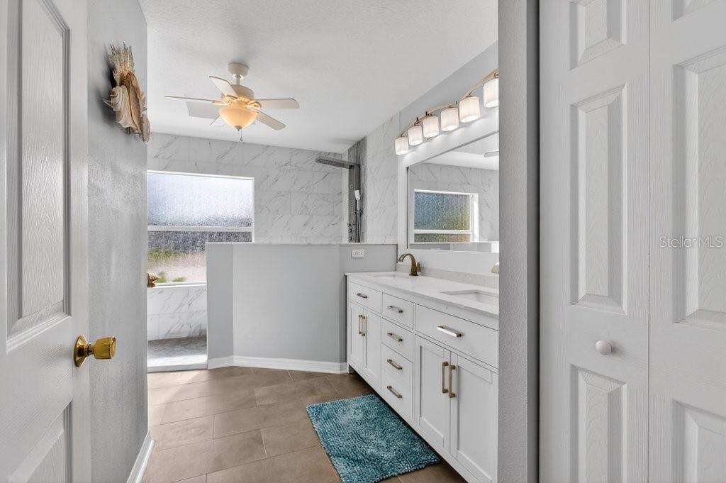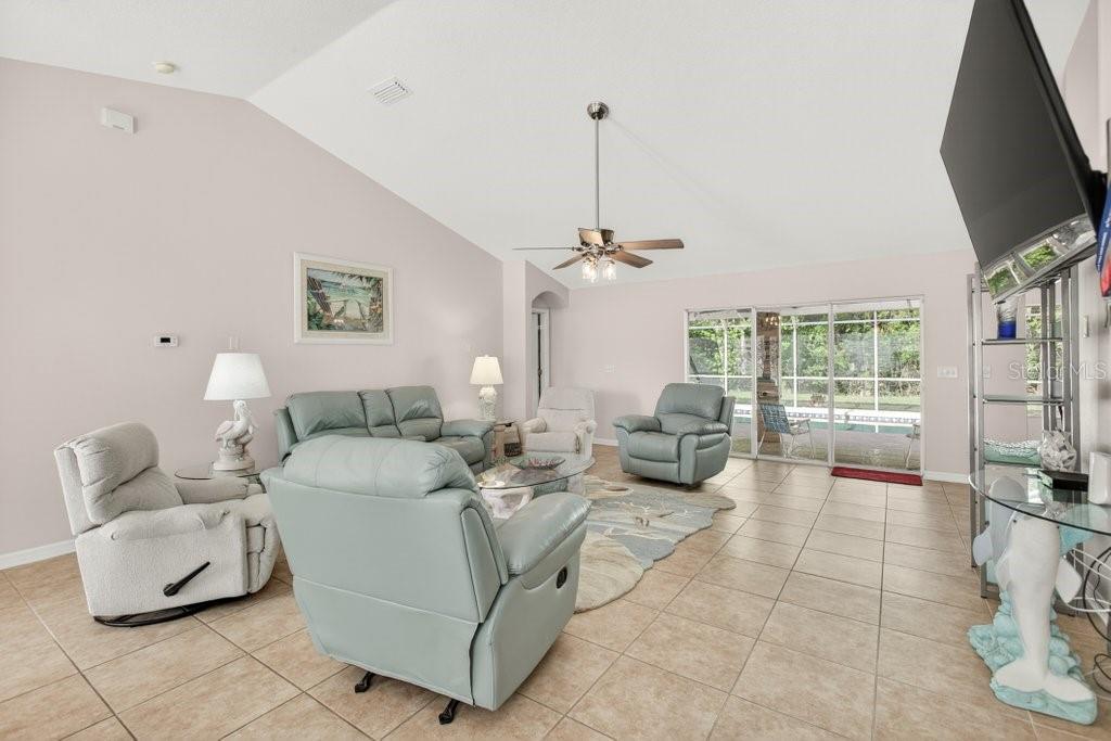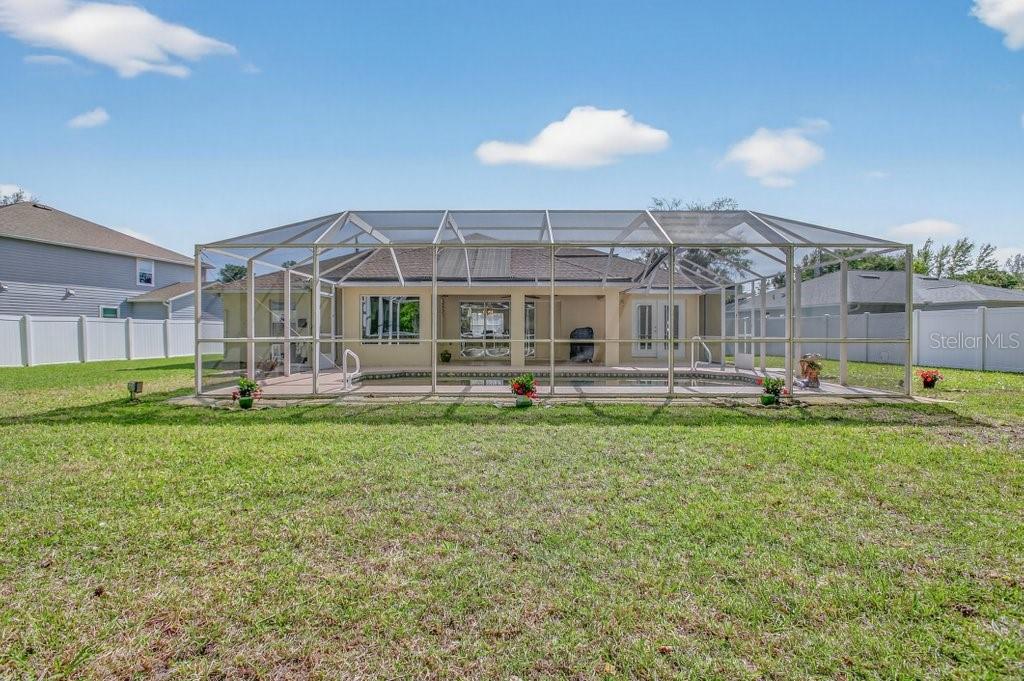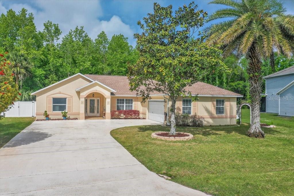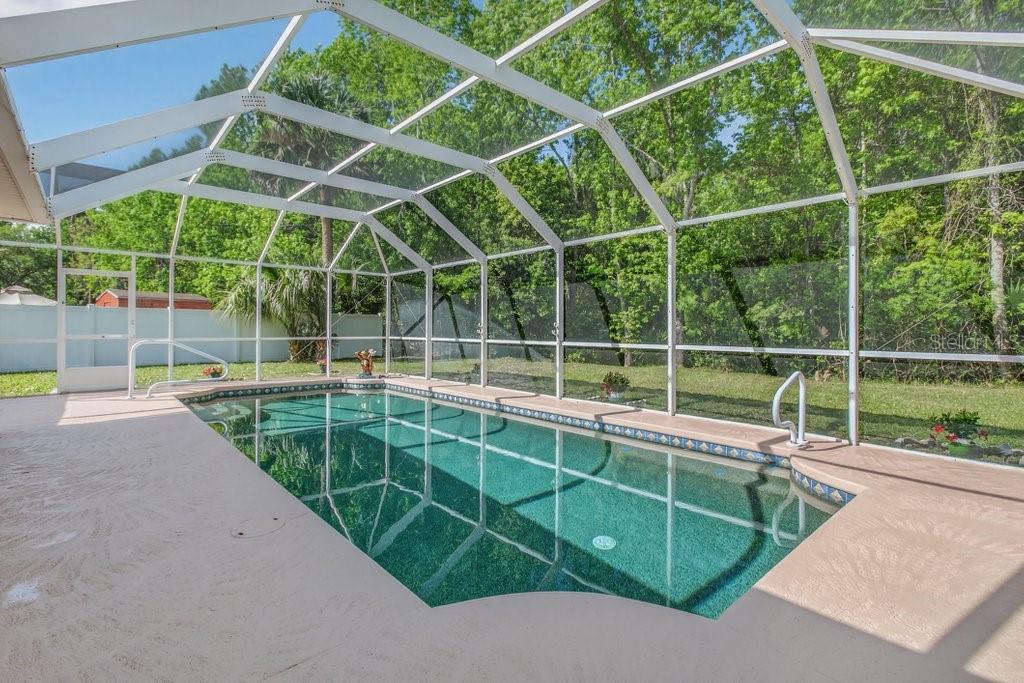 Welcome to this better-than-new 3-bedroom, 2-bath pool home located in the desirable Matanzas Woods community (the “L Section”) of Palm Coast, offering convenient access to US-1 and I-95. This well-maintained property features a private backyard retreat with a PebbleTec-finished pool by All About Pools, a large covered lanai, and additional open patio space, all enclosed by a white vinyl fence for added privacy. The home has been freshly updated with new exterior and interior paint, and the pool area has been newly stained. Inside, the home offers tile flooring throughout and a bright kitchen with white cabinetry and stainless steel appliances. The primary suite includes French doors leading directly to the pool area and a spa-style bathroom with a walk-in shower, double sinks, and a bidet. The guest bathroom has been upgraded with a walk-in shower and stylish finishes. Additional features include custom lighting and ceiling fans throughout, a side-entry two-car garage with an electric screen and side yard access door, and an oversized driveway for extra parking. The property also includes his and hers storage sheds with ramp access, providing added convenience and functionality. The home was fully replumbed in 2025, adding peace of mind for the new owner.