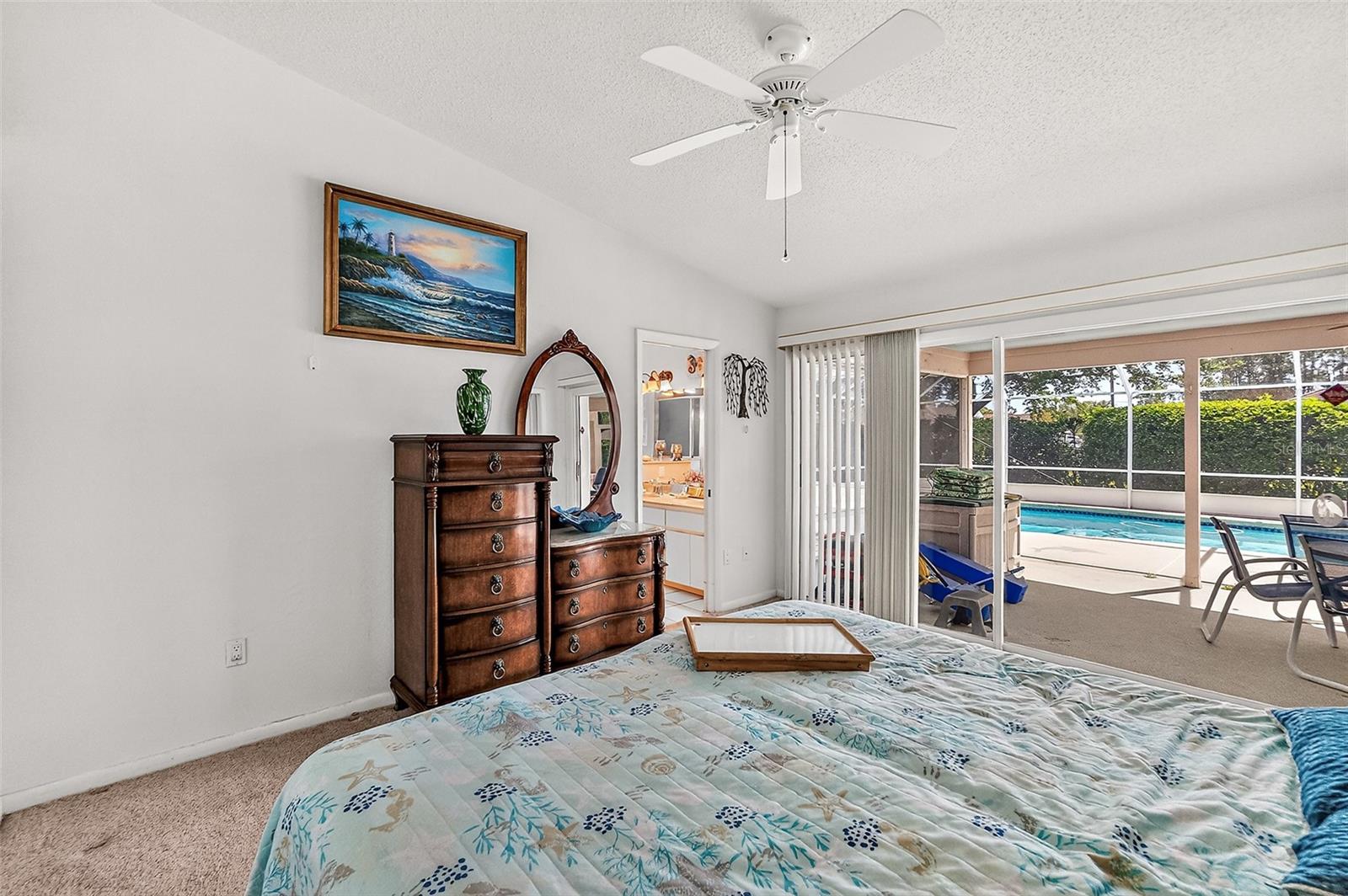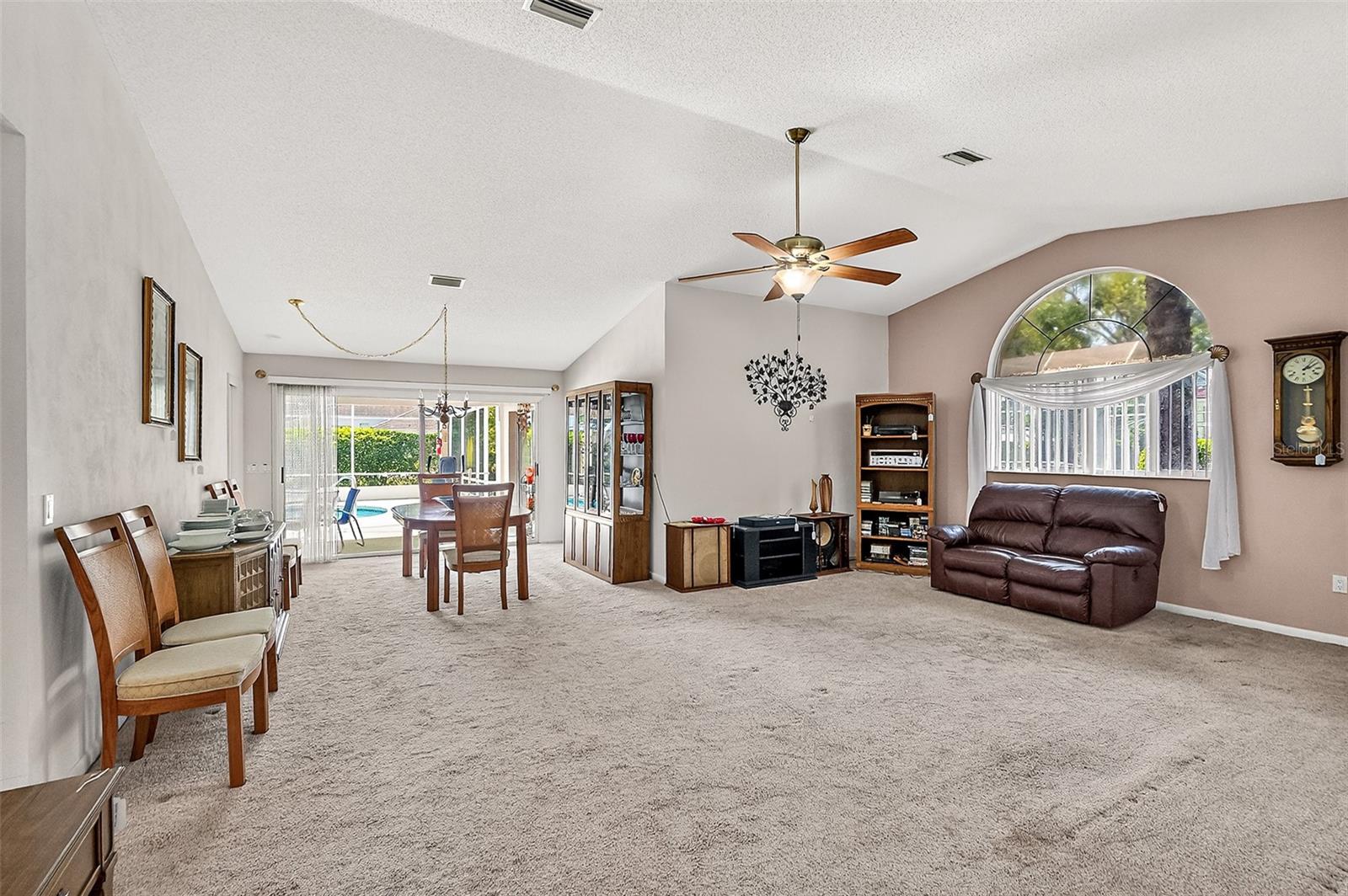 Welcome to the Hamptons, a quiet neighborhood in the center of the Pine Lakes subdivision. This 3 bedroom, split plan home, has high ceilings, an eat-in kitchen and a formal dining room. Sliders from the primary bedroom, dining room and kitchen allow for easy access to the covered lanai and screened in pool. Both baths boast of double sinks and room for guests. There's an interior laundry room a garage with a side entry door, an over-sized lot situated on a culde-sac. Put your personal decorating touches on this one and make it your own.