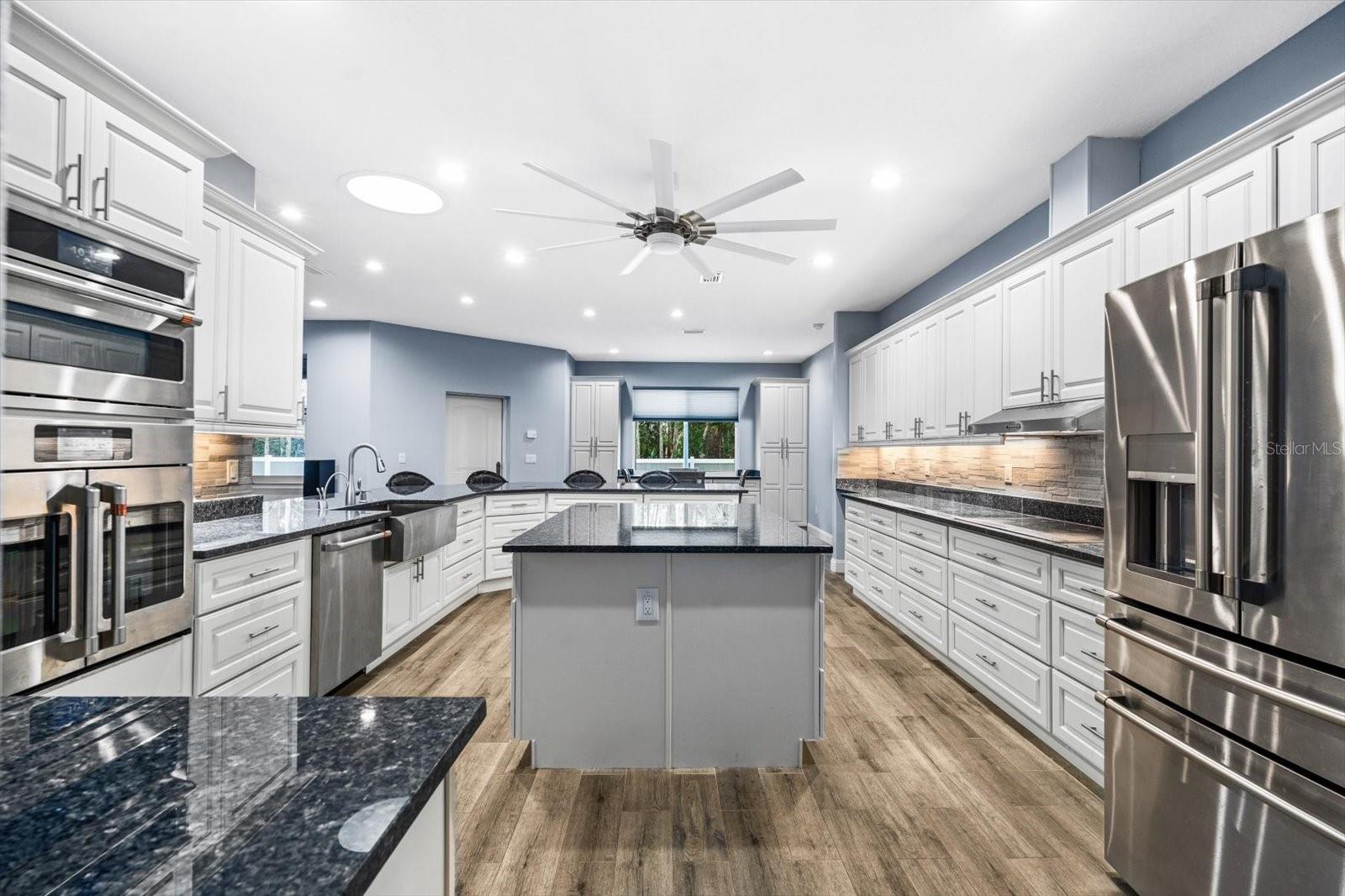 Stunning, upgraded 5-year-old concrete block home in desirable Seminole Woods, perfectly situated on a 0.29-acre corner lot in a quiet cul-de-sac. Enjoy an ideal location just minutes to the beach, AdventHealth Palm Coast, and shopping and dining along SR 100, with quick access to US-1 and I-95. Inside, an open, light-filled floor plan centers around a chef's kitchen with counter-height bar, sun tunnel, soft-close cabinetry, stone backsplash, farmhouse sink, walk-in pantry, and high-end Café GE stainless appliances. The oversized island and breakfast area are perfect for casual gatherings, while the formal dining room with double doors is ideal for special occasions. The private primary suite offers a sitting area, walk-in closet, and spa-like bath with jetted tub, dual vanities, tiled walk-in shower, and separate water closet. A true in-law/guest suite with its own full bath, an additional bedroom with half bath, and a flexible 4th bedroom/office provide room for everyone. ..... Car lovers will appreciate the rare 4-car garage with insulated hurricane-rated doors, heavy-duty motors, and epoxy floors. A whole-house 22kW generator with owned 250-gallon in-ground LP tank provides peace of mind. Quality features include Dade County-rated hurricane doors/windows, solid interior doors, Trane 4-ton A/C, tankless water heater, can lighting and ceiling fans throughout, Levolor shades (blackouts in bedrooms), Ring doorbell, and exterior security lighting. Step outside to a low-maintenance yard with mature landscaping, irrigation, French drains, LP gas line for a future outdoor kitchen, and abundant storage under a 30-year architectural roof with gutters and guards. Tex-Coat stucco resists fading, peeling, and mildew, so you can simply move in and start enjoying relaxed coastal Florida living.