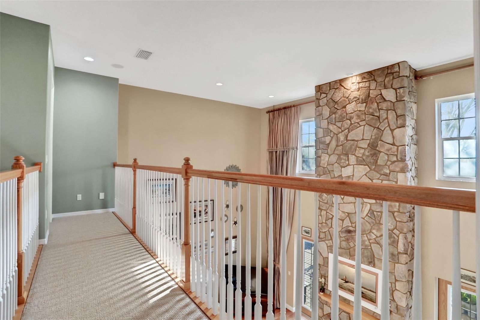 Experience the perfect blend of comfort, space, and resort-style living in this beautifully crafted custom home ideally situated in a welcoming family-friendly neighborhood just minutes from the beach. Set on a generous 0.68-acre homesite spanning three parcels, this home offers privacy with natural buffers on each side. The fully fenced backyard features a pristine pool which creates a peaceful retreat for everyday living. This solidly constructed two-story home showcases concrete block construction on both levels with a maintenance free brick exterior, delivering both durability and classic curb appeal. Inside, you’ll find 3,010 square feet of thoughtfully designed living space, including 3 spacious bedrooms, 2.5 bathrooms, and versatile areas perfect for families, entertaining, and working from home. Each room offers exceptional space and comfort notably larger than what is typically found in newer construction homes. The expansive 0.68-acre lot further sets this property apart by providing a rare combination of privacy and room to enjoy outdoor living that is seldom available in today’s new construction. The open-concept floorplan is warm and inviting. It is highlighted by soaring ceilings, rich hardwood flooring, and a striking stone wood-burning fireplace. The kitchen is designed to be the heart of the home. It features custom cabinetry, granite countertops, and convenient access to the indoor laundry room. The primary suite is located on the main floor and offers a private retreat with a double sink vanity and a spacious walk-in shower. Upstairs there are two additional bedrooms, a full bath, a loft, and a dedicated office or den which provide ample space for family, guests, and hobbies. Step outside to your own backyard oasis. The 20,000-gallon saltwater pool and spa, complemented by a newer pump, heater, and pool sweep, sets the stage for endless outdoor enjoyment. The recently added outdoor grill station makes entertaining your family and friends effortless. Additional highlights include—ROOF (2024), 4-zone A/C system (2023), central vacuum system, quick hot water circulation, and abundant storage throughout. The elevated lot provides added peace of mind. No HOA or CDD fees. This move-in ready home offers the perfect combination of luxury, comfort, and community—an ideal setting for creating lasting family memories. Schedule your private showing today and discover all this exceptional home has.