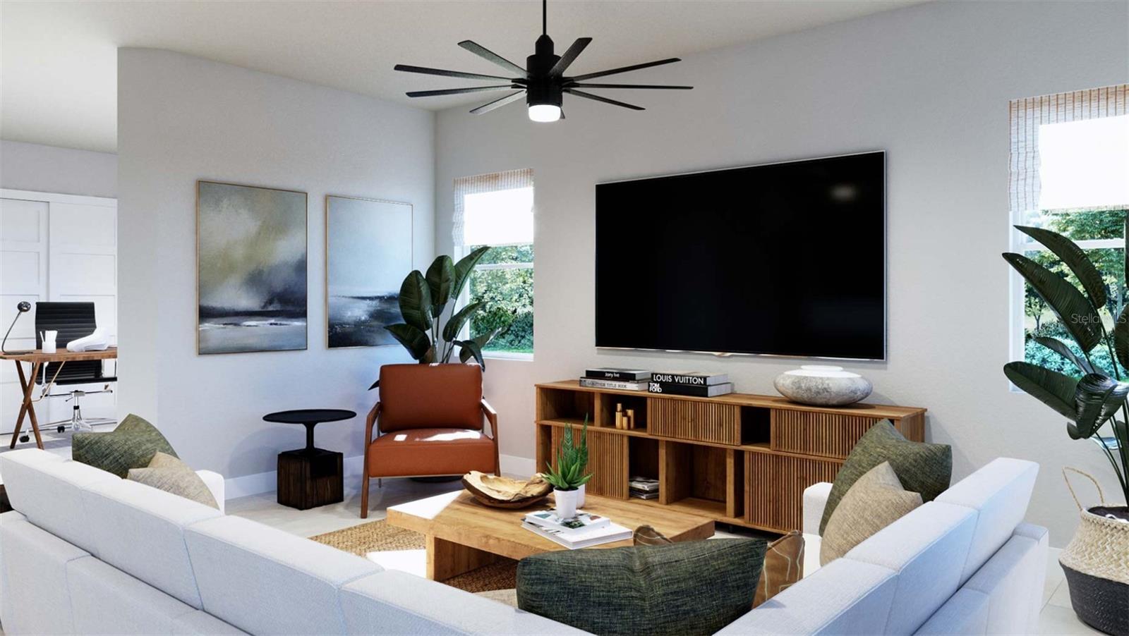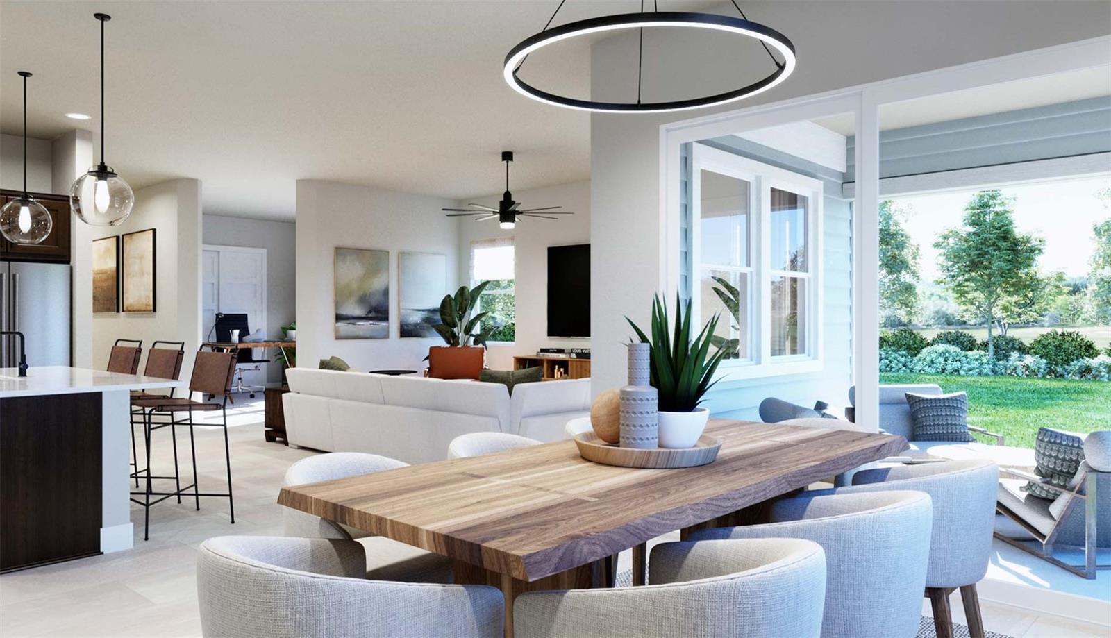 The Clark model in Reverie's Meadows Collection presents a thoughtfully designed living space of 1,967 air-conditioned square feet. This home stands out with its versatile layout featuring two bedrooms plus a flexible room that can adapt to your needs - whether as a home office, hobby room, or additional living space. The unique feature of this home is its three-car tandem garage, offering extra space for vehicles, storage, or a workshop. This tandem design efficiently provides the benefits of a three-car garage while maintaining an attractive exterior facade. Living in the Clark model at Reverie means enjoying all the premium community amenities that make everyday feel like a vacation. The gated entrance leads to a vibrant community centered around an active lifestyle. Residents can start their morning at the fitness center, spend afternoons by the resort-style pool and spa, or challenge neighbors to a match on one of six tournament-class pickleball courts.