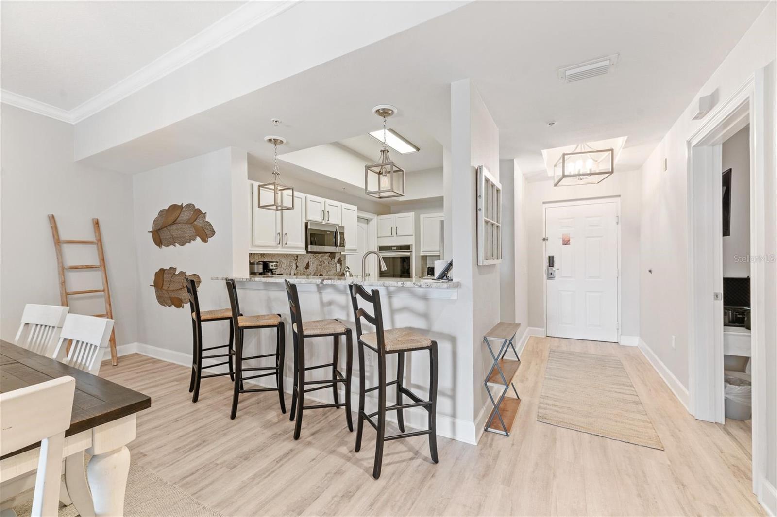 Experience effortless coastal elegance and proven income potential in this fully updated first floor unit in the highly desired Yacht Harbor Village. Offering direct balcony access to the resort style pool, this residence blends comfort, convenience, and true waterfront lifestyle in one of Palm Coast’s most desirable Intracoastal communities. Fully Renovated in 2023, The interior has been beautifully refreshed with luxury vinyl plank flooring throughout, granite countertops, upgraded cabinets and a modern chef’s kitchen that opens seamlessly into the living and dining areas. Natural light enhances the coastal finishes, creating a bright and inviting space designed for both relaxation and entertaining. Being offered fully furnished (valued at over $20,000) this property is completely turnkey and currently enrolled in the Hammock Beach rental program, featuring two years of rental history along with future bookings that transfer to the new owner. Continue generating income immediately or enjoy the flexibility of personal use while maintaining a proven revenue stream. Yacht Harbor residents enjoy gated entry, marina access with boat slips available for vessels up to 100 feet, scenic walking trails, and proximity to Hammock Beach. An optional Hammock Beach Membership provides access to private beach entry, two championship 18-hole golf courses, multiple dining venues, and luxury resort amenities. Whether you’re seeking a personal retreat, seasonal getaway, or investment opportunity, this riverfront condo delivers lifestyle, location, and income potential all in one.