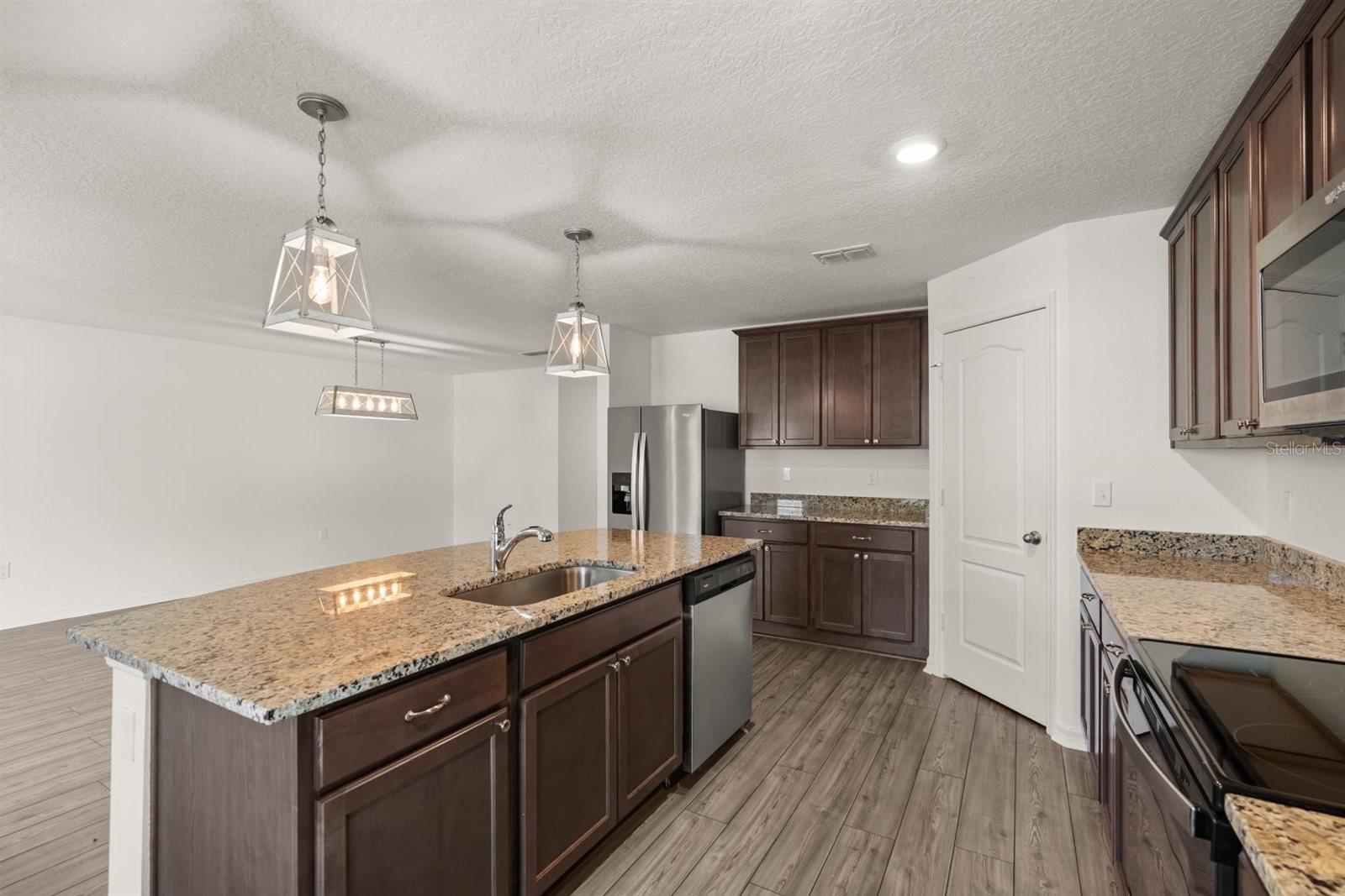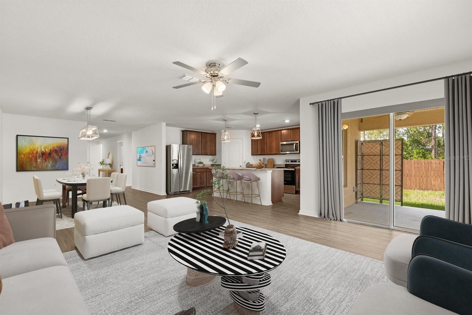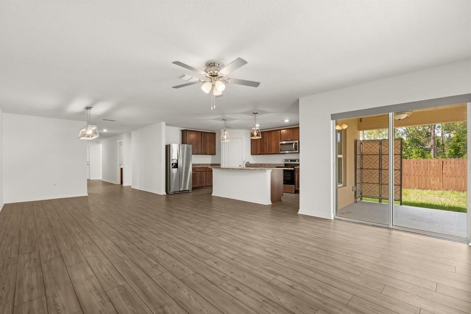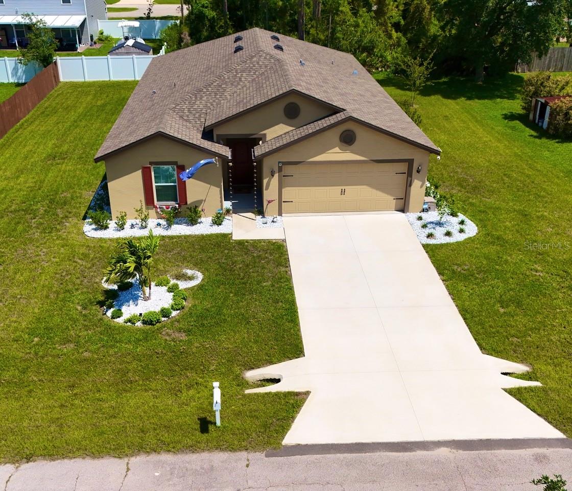 One or more photo(s) has been virtually staged. Bring the whole family to this gorgeous and very spacious 5 bedroom, 3 bathroom home. Built in 2022 by LGI, this home features quality you don't see anywhere else like pre-braced light boxes in the bedrooms so you can add ceiling fans, buried power to the house so you don't have to look at big ugly cables and it is better for storms, sturdy plywood roof sheathing, an HVAC system that is mounted to the ceiling of the garage to free up space for more storage and a whole yard irrigation system with rain sensor. Current owner has also added custom window treatments, light fixtures, beautiful easy to maintain landscaping and a built-in office with butcher block workspace and custom paint scheme for all you Disney fans out there. This home is truly turnkey, you could start living there tomorrow! This home offers everything you could want, a large lot, open living space, covered patio, fire pit area with two enclosures with pond for pets or covert into garden space.