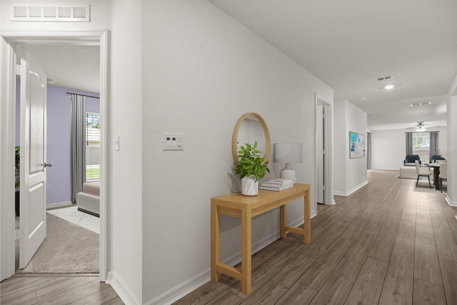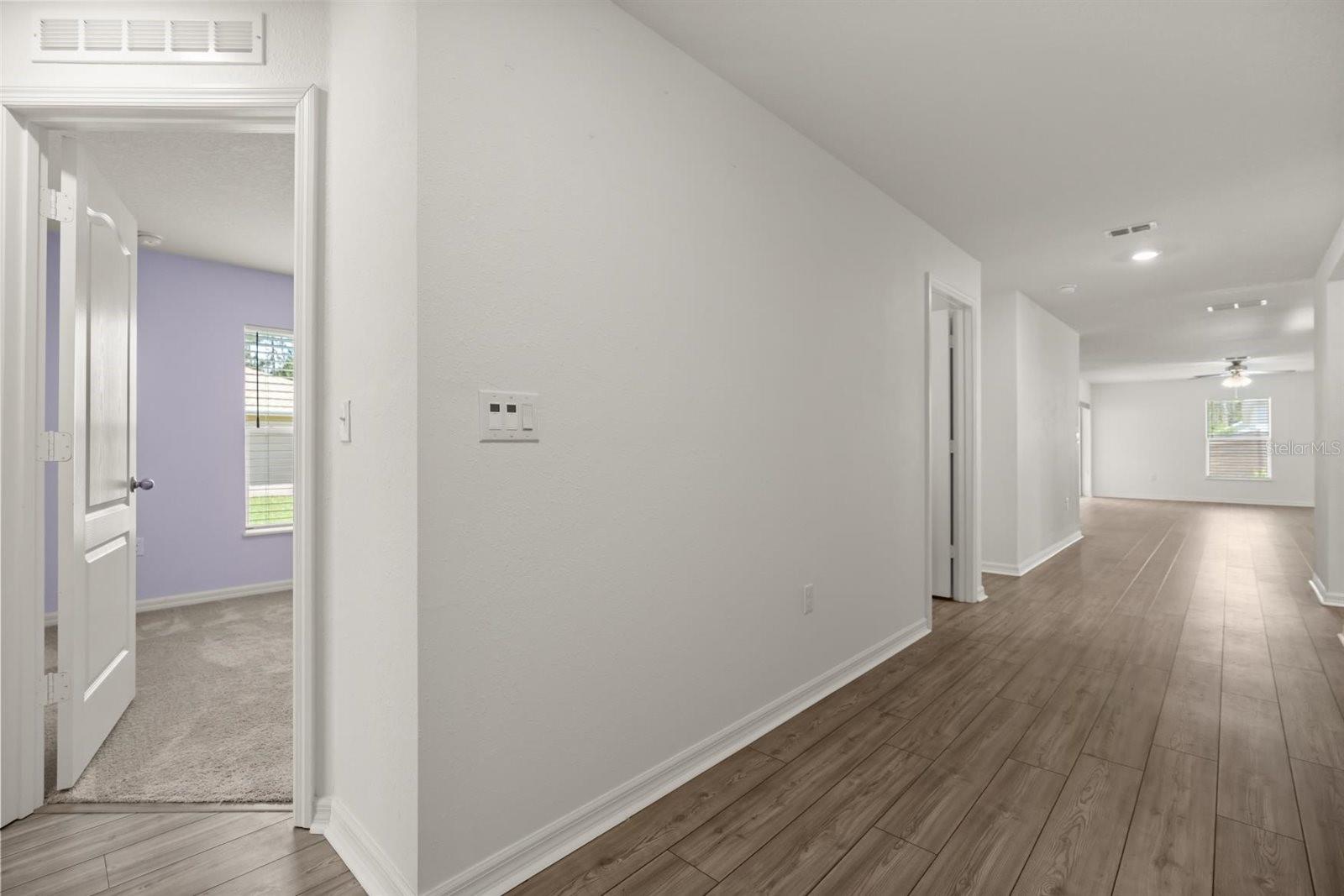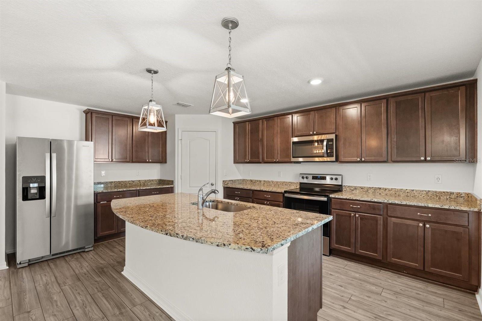 One or more photo(s) has been virtually staged. Bring the whole family to this gorgeous and very spacious 5 bedroom, 3 bathroom home. Built in 2022 by LGI, this home features quality you don't see anywhere else like pre-braced light boxes in the bedrooms so you can add ceiling fans, buried power to the house so you don't have to look at big ugly cables and it is better for storms, sturdy plywood roof sheathing, an HVAC system that is mounted to the ceiling of the garage to free up space for more storage and a whole yard irrigation system with rain sensor. Current owner has also added custom window treatments, light fixtures, beautiful easy to maintain landscaping and a built-in office with butcher block workspace and custom paint scheme for all you Disney fans out there. This home is truly turnkey, you could start living there tomorrow! This home offers everything you could want, a large lot, open living space, covered patio, fire pit area with two enclosures with pond for pets or covert into garden space.