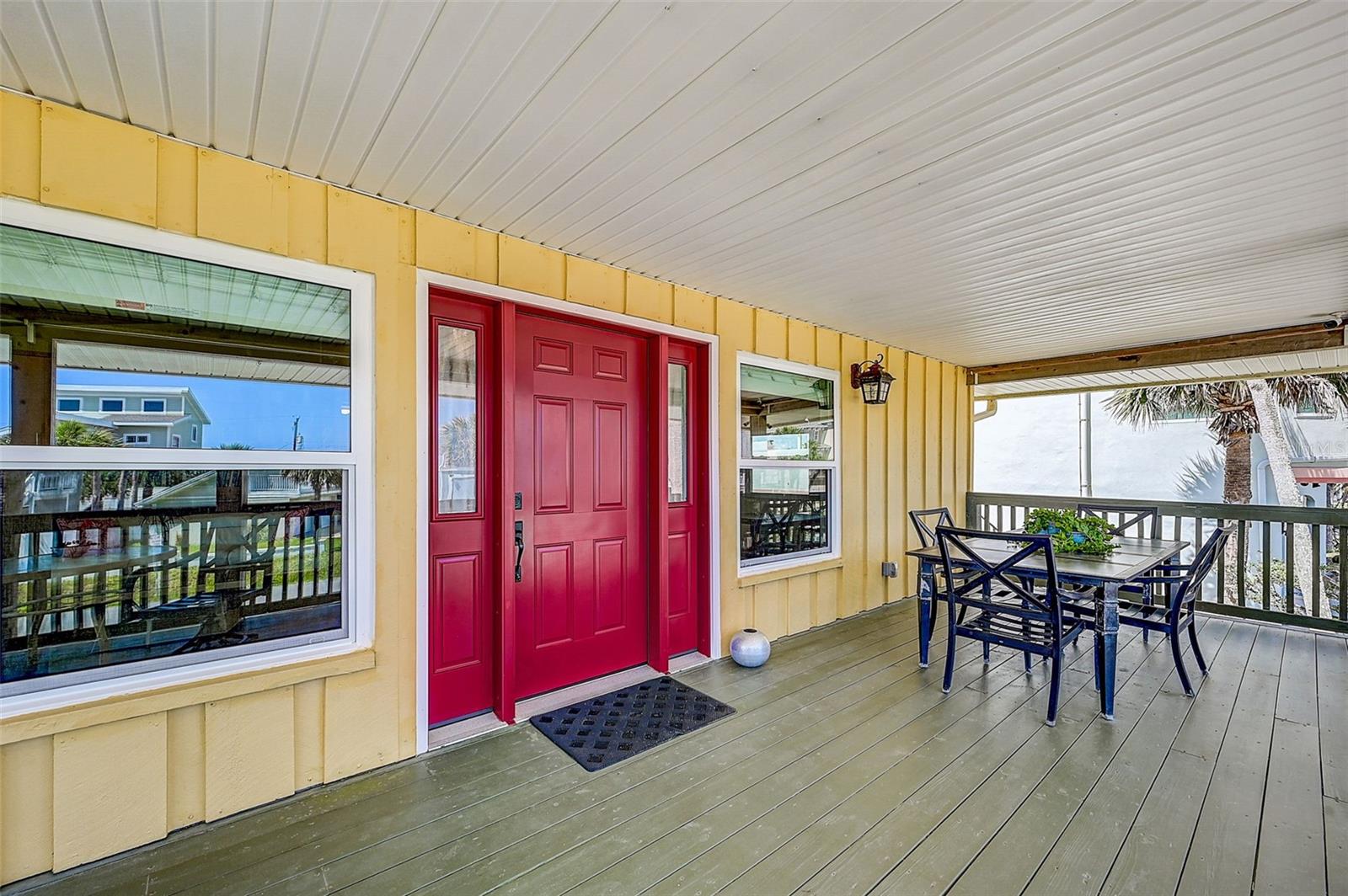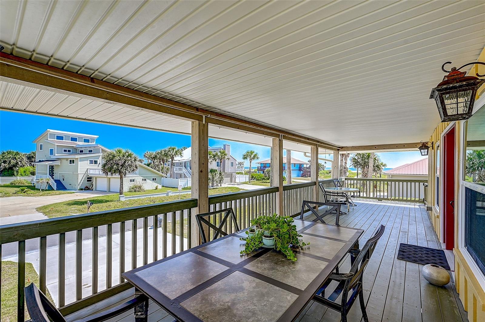One or more photo(s) has been virtually staged. AIRBNB APPROVED ZONE. Imagine beginning your day sipping coffee on an oversized patio while soaking in the mesmerizing ocean view or perhaps going for a morning walk on the beach as the sun rises. Welcome to 56 Ocean Street, located just steps away from the gorgeous Atlantic ocean and where comfort meets coastal charm. This home has been lovingly maintained and upgraded to offer a cozy retreat for its next lucky owner. Downstairs, you'll find a large four-car garage connected to a complete apartment featuring a studio, dining area, full bathroom, washer dryer hookups, and a kitchenette. Perfect for Airbnb rentals, accommodating guests, or providing privacy for family members. As you head upstairs, you'll be greeted by the inviting main living area, boasting balconies on both ends that offer delightful ocean views. Inside, enjoy the airy open layout adorned with stylish finishes, including custom cabinetry in the kitchen and attractive stone countertops. Relax in the spacious primary bedroom, complete with a luxurious bathroom featuring a double vanity, a large shower, a relaxing tub, and a roomy closet with built-in storage. Nearby, a versatile bedroom awaits, perfect for guests, a home office, or any extra space you need. This room conveniently connects to another full bathroom, accessible from both the bedroom and the hallway. Both the master suite and the additional bedroom open onto the back patio, inviting you to enjoy the refreshing ocean breeze and soak up the Florida sunshine. Outside you'll find an outdoor shower located in the most convenient place, perfect for rinsing off after taking a swim in the ocean or simply relaxing on the beach. In 2010 the owners installed Italian Porcelain tile on the main floor (second level), they also had custom KraftMaid Cabinetry installed. In 2015 they enclosed the first floor area creating the mother-in-law suite on the first floor. This space includes a studio, a full bathroom, washer and dryer hook ups, a living room, and a kitchenette. It has its own access through the garage. Some recent updates include: 2020 roof replacement, between the years 2020-2022 the exterior doors, windows, and garage doors were replaced with heavy duty hurricane impact rated windows and doors. In 2022, the entire septic tank was replaced and upgraded to a larger size. The water heater was also replaced this same year. In 2023 the driveway was refinished, a new irrigation system was added, along with the water filter for the house filtration system. Your dream coastal retreat awaits – don't miss this chance to embrace the relaxed beach lifestyle you've always wanted.