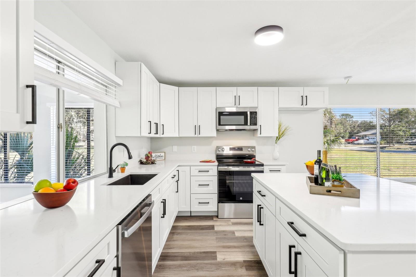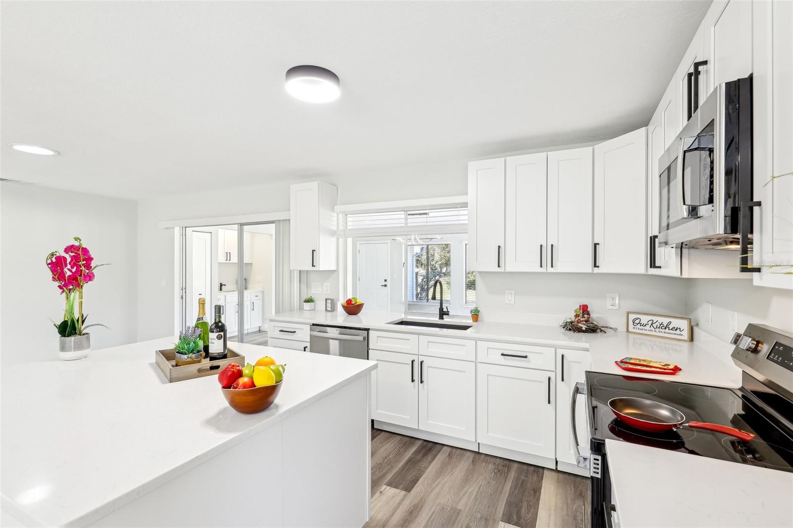 One or more photo(s) has been virtually staged. Nestled in a highly sought-after neighborhood, this beautifully updated home sits on a spacious lot of over 1/4 acre with no HOA, offering both privacy and freedom. With no neighbors to the right or back, enjoy an unmatched sense of seclusion and tranquility. A brand-new roof adds to the home’s value and peace of mind, while fresh updates throughout—including a modern kitchen, new flooring, and fresh paint—make it completely move-in ready. The heart of the home is the recently renovated kitchen, featuring sleek new cabinetry, high-end appliances, and a spacious island perfect for cooking and entertaining. An enclosed four-season lanai with expansive windows floods the space with natural light and provides stunning views of the lush surroundings and adjacent golf course. Whether you're sipping morning coffee or unwinding in the evening, this serene retreat will be a favorite spot. Located in a prime area, this home combines the best of both worlds—privacy and convenience. You're just a short drive from the marina, pristine beaches, and top-rated dining and shopping, with many amenities within walking distance. Don't miss out on this rare opportunity to own a beautifully updated home in an unbeatable location!