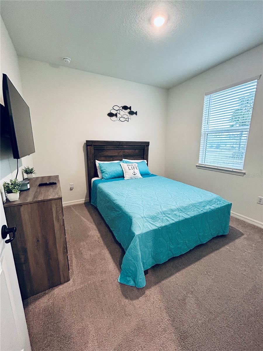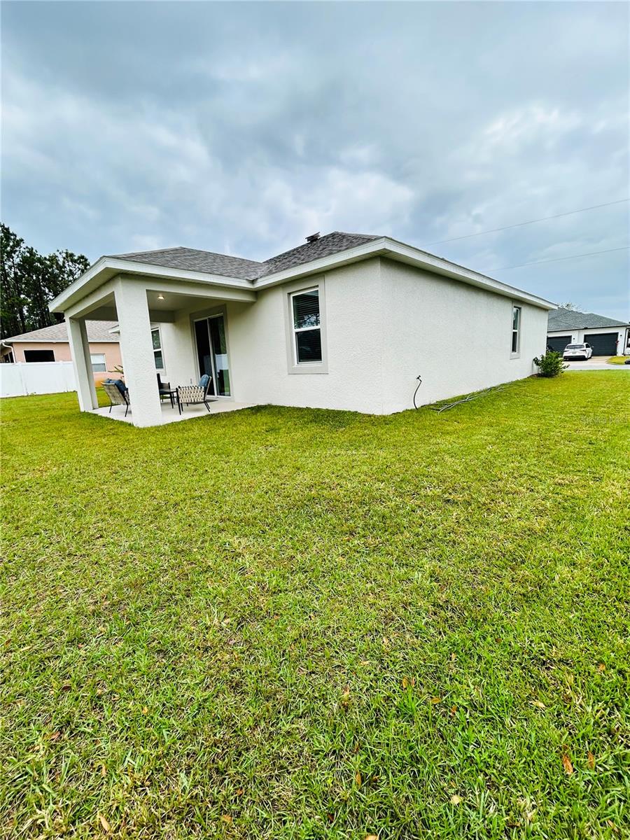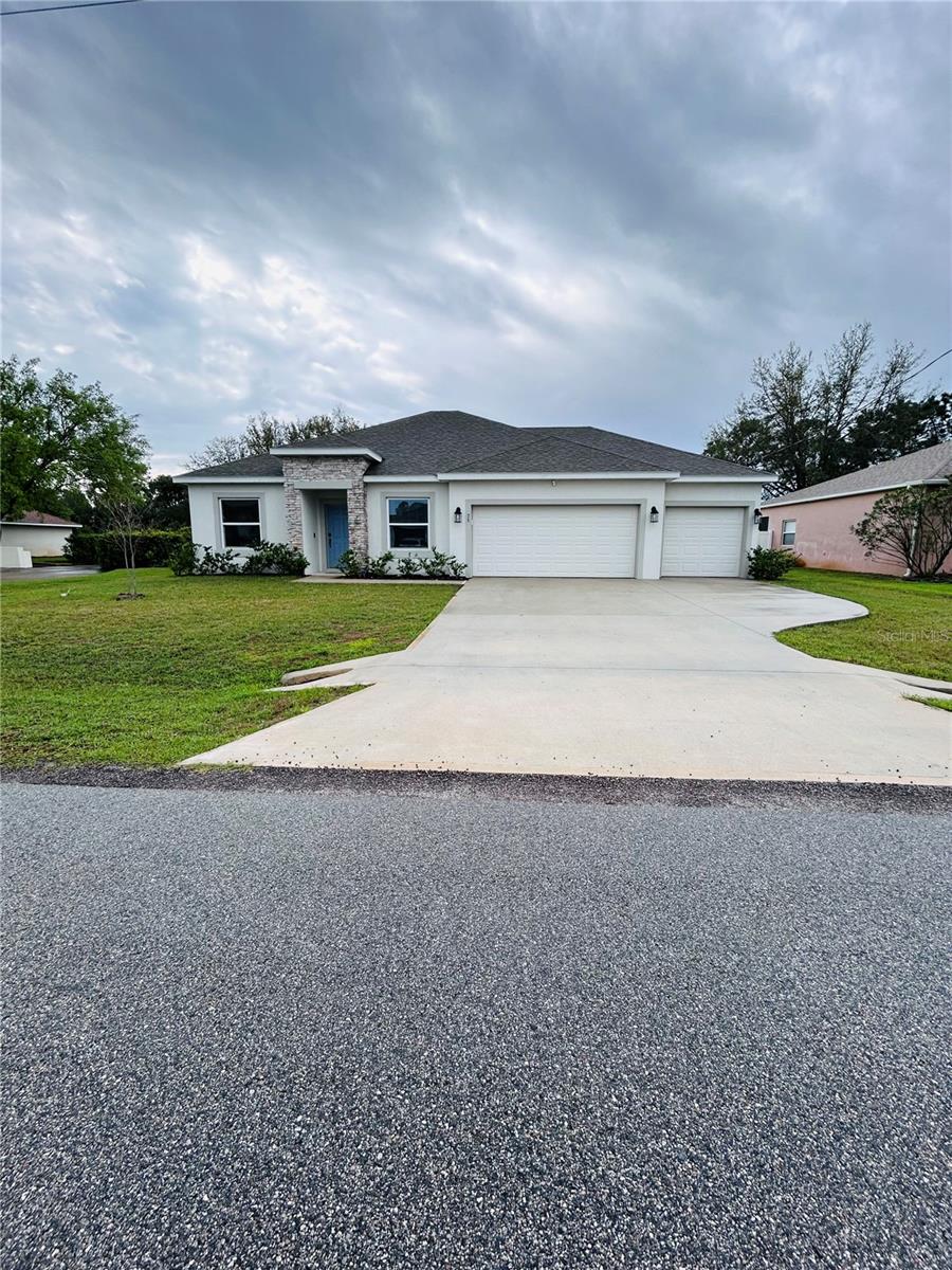 This beautiful 3 bedroom 2 Bathroom home was built in 2023 by Holiday Builders. It is The Highland model with an extended 3 car garage coupled with finished flooring and it is waiting for you! This lovely home has a covered lanai and a modern open floor plan with a beautiful kitchen that has granite countertops and elegant backsplash, there is a den in the front that can be used as an office or converted to a 4th bedroom this delight will make you feel right at home. You will enjoy your spacious laundry room that is equipped with lovely cabinets and a utility sink! Vinyl flooring throughout the house and carpet in the bedrooms. Your new home will have a spacious great room that is perfect for gatherings with family and friends! You will feel right at home when you step into your spacious master bedroom, complete with a generously sized walk-in closet offering ample storage and organization. The beautifully designed master bathroom is a true retreat featuring elegant finishes and a walk-in shower that is perfect for unwinding after a long day. Enjoy your home cooked meals in the dining room or have a meal in your lovely backyard while enjoying the space of your .27 acre lot! NO HOA! Looking for an investment property? This home can be used as an airbnb or you can lease it long term as well! The opportunities are endless when you're just minutes from the beach and no flood zone! Just 6 minutes to nearby shopping and restaurants the super market is also just minutes away so don't have a cow when you need to make a quick run to the store because its just minutes away you will be back home in no time! With nice parks for the family nearby you can also take your dog to the dog park to meet some new fur friends! Want to take a day trip to historic Saint Augustine? It is just 30 minutes away! What are you waiting for? Come see your new home today!