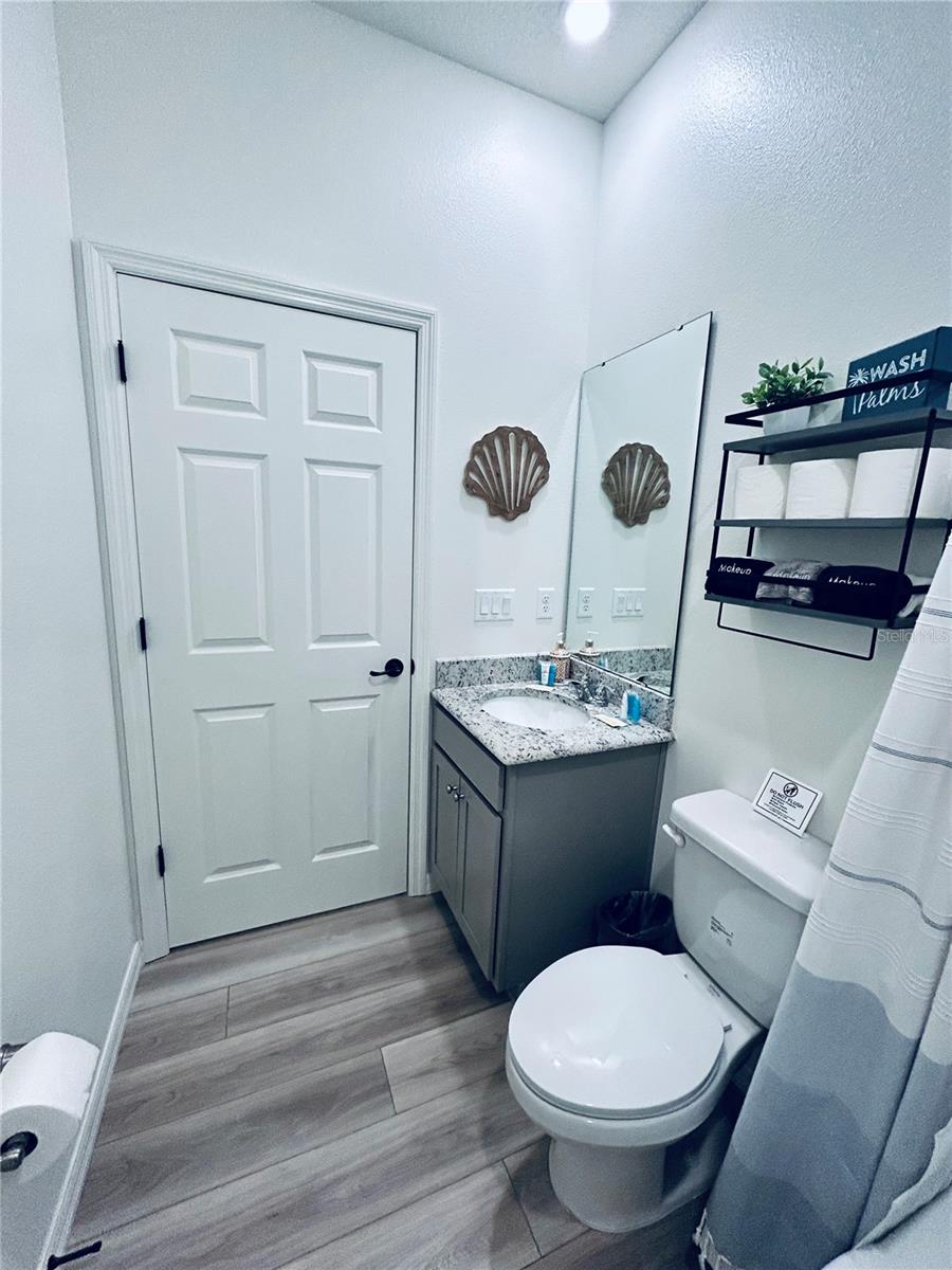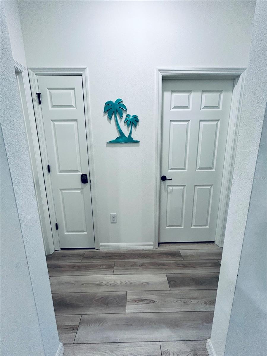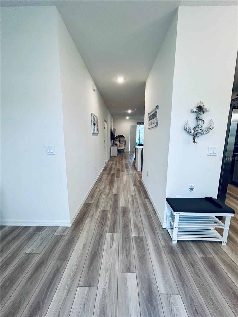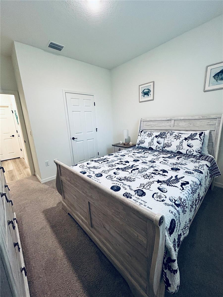 This beautiful 3 bedroom 2 Bathroom home was built in 2023 by Holiday Builders. It is The Highland model with an extended 3 car garage coupled with finished flooring and it is waiting for you! This lovely home has a covered lanai and a modern open floor plan with a beautiful kitchen that has granite countertops and elegant backsplash, there is a den in the front that can be used as an office or converted to a 4th bedroom this delight will make you feel right at home. You will enjoy your spacious laundry room that is equipped with lovely cabinets and a utility sink! Vinyl flooring throughout the house and carpet in the bedrooms. Your new home will have a spacious great room that is perfect for gatherings with family and friends! You will feel right at home when you step into your spacious master bedroom, complete with a generously sized walk-in closet offering ample storage and organization. The beautifully designed master bathroom is a true retreat featuring elegant finishes and a walk-in shower that is perfect for unwinding after a long day. Enjoy your home cooked meals in the dining room or have a meal in your lovely backyard while enjoying the space of your .27 acre lot! NO HOA! Looking for an investment property? This home can be used as an airbnb or you can lease it long term as well! The opportunities are endless when you're just minutes from the beach and no flood zone! Just 6 minutes to nearby shopping and restaurants the super market is also just minutes away so don't have a cow when you need to make a quick run to the store because its just minutes away you will be back home in no time! With nice parks for the family nearby you can also take your dog to the dog park to meet some new fur friends! Want to take a day trip to historic Saint Augustine? It is just 30 minutes away! What are you waiting for? Come see your new home today!