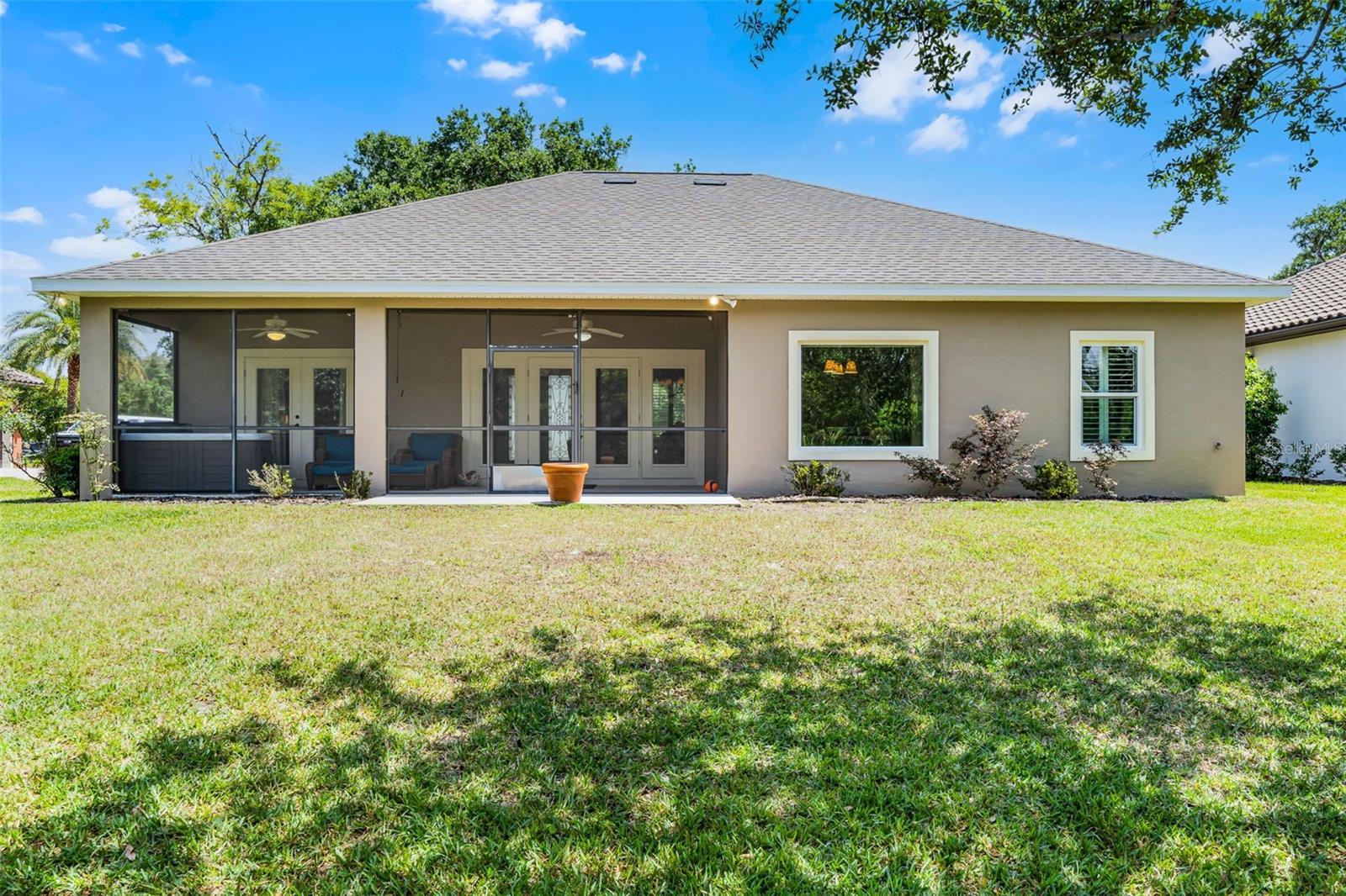 Welcome to this beautifully maintained custom home by Skyway Builders, nestled in the sought-after gated community of Palm Coast Plantation. Offering 3 spacious bedrooms, 2.5 baths, and a versatile flex space perfect for a formal dining room or home office, this home is designed for both comfort and function. Enjoy peace of mind with hurricane impact windows and a brand-new 2024 AC system. Backing up to a lush preserve, you'll experience added privacy and serene natural views. Inside, tile flows through all main living areas, filling the home with natural light. The covered, screened lanai features a relaxing spa, perfect for unwinding or entertaining. Additional highlights include elegant French doors, stainless steel appliances, plantation shutters, tray ceilings in both the living room and primary suite, an oversized two-car garage, and carefully curated finishes throughout. Palm Coast Plantation offers resort-style amenities including a clubhouse with fitness center, resort pool, playground, tennis, pickleball, and basketball courts. Water enthusiasts will love the lake access, fishing pier, boat and RV storage, and proximity to Marina Del Palma with available boat slips! A true Florida lifestyle awaits—schedule your private showing today!