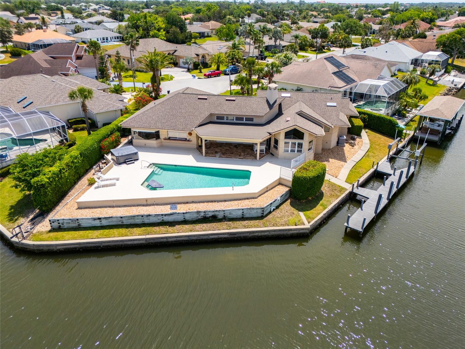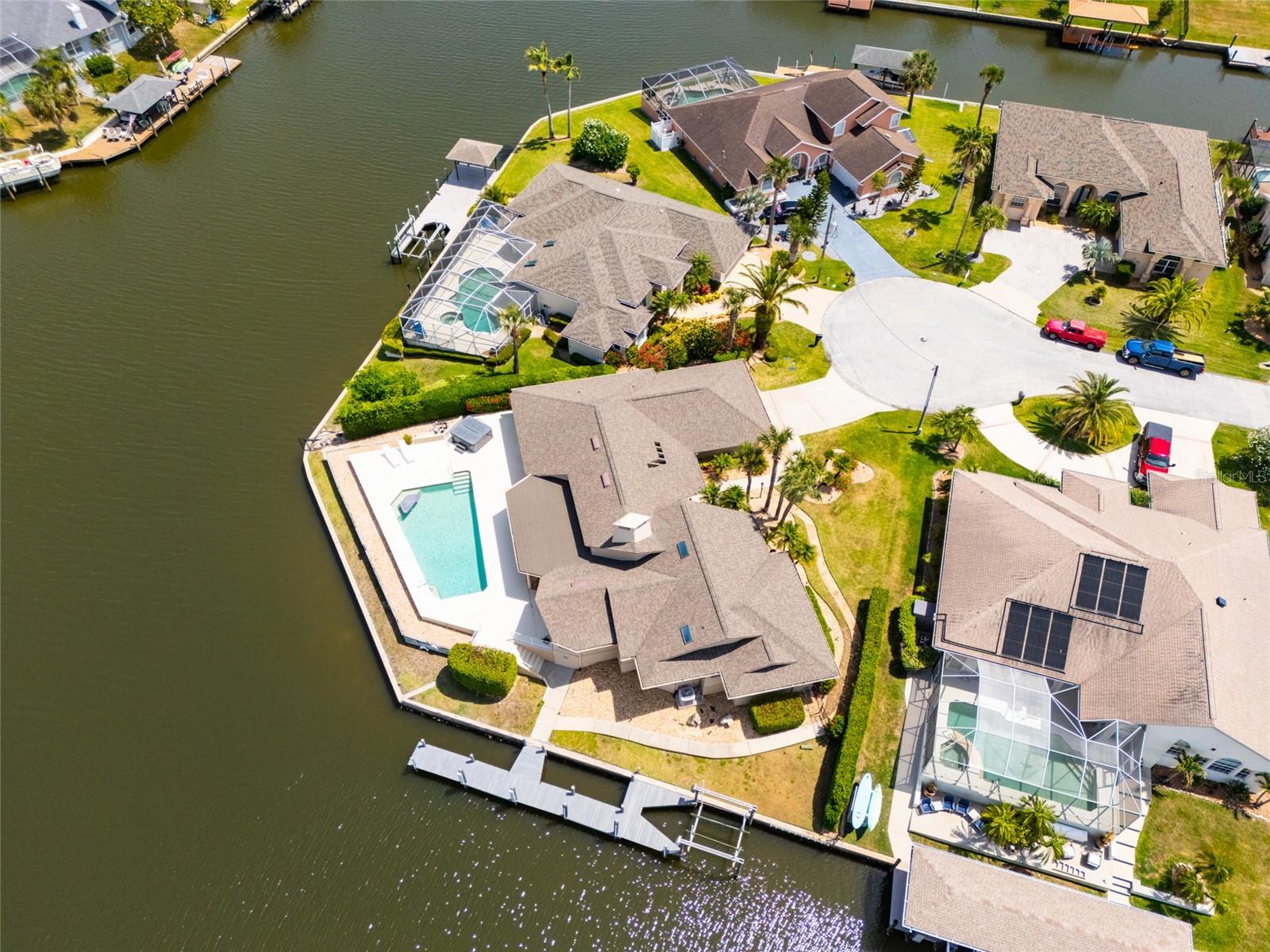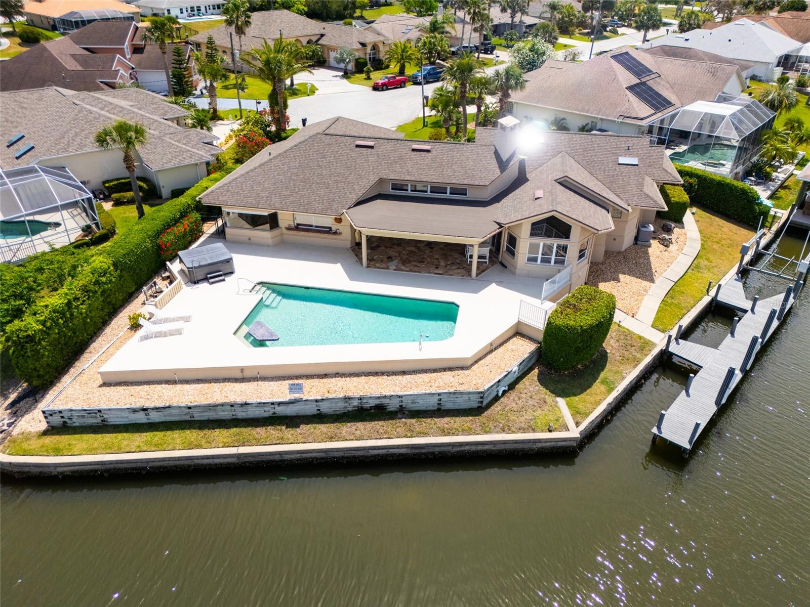 Under contract-accepting backup offers. "Reduced To Sell" "Sailboat Country" Located on Cul-de-Sac, Quiet Road. Up-Scale Community area. "C" Section on waterfront. Deep Water Country, Sits on Large Canal Water Basin, Full Boat Dock with Lift. Pool is in sun all day. Rear of house faces West for excellent sunsets and view of pool, deck and canal basin. Dolphin and Tarpon in the Basin. Interior Features: Primary Bedroom has a Walk-in closet for two with Built-in Drawers and shelves. Great room has a Stone Fireplace that rises to the vaulted ceiling. Ceiling Fans: 11, Eat-In Kitchen w/counter sitting, Nook area table with view of pool & canal. High Ceilings, Vaulted, Tall Flat Surface Counters consist of a mix of Tile and Laminated materials, Flooring: Tile, Tennessee Sandstone, Carpet, Vinyl in laundry room. Window Features: Anderson brand 8’ sliding doors and windows. Other Insulated Glass windows. Central Air Two Units, Zones for different controllable areas. Over-sized Laundry Room w/Lots of Cabinets, food storage pantry. Second Refrigerator & Freezer area. Up Scaled Landscape w/ Palms, Hibiscus flowers all stone beds no wood chips. Oversized Garage Very Larger Bi-Fold closet storage 18' x 2'-6" Walk-in Attic Storage space w/pull down staircase . High Anderson Windows to brighten up and ventilate. In-Wall folding Ironing Board. Stem wall superior Concrete foundation w/monolithic slab on grade. Covered front porch, Large rear covered porch, w/beautiful stone floor, very large pool deck. Large Benched seat w/ tiled table area. Massive Pool Deck overlooking Canal Basin. UPDATE: New bath remodel, tile shower, floors & new vanity w/ sink. New White Quartz kitchen counters, all new stainless steel appliances. Today's cost to rebuild this Home & Pool with this premium lot $1,650,000.