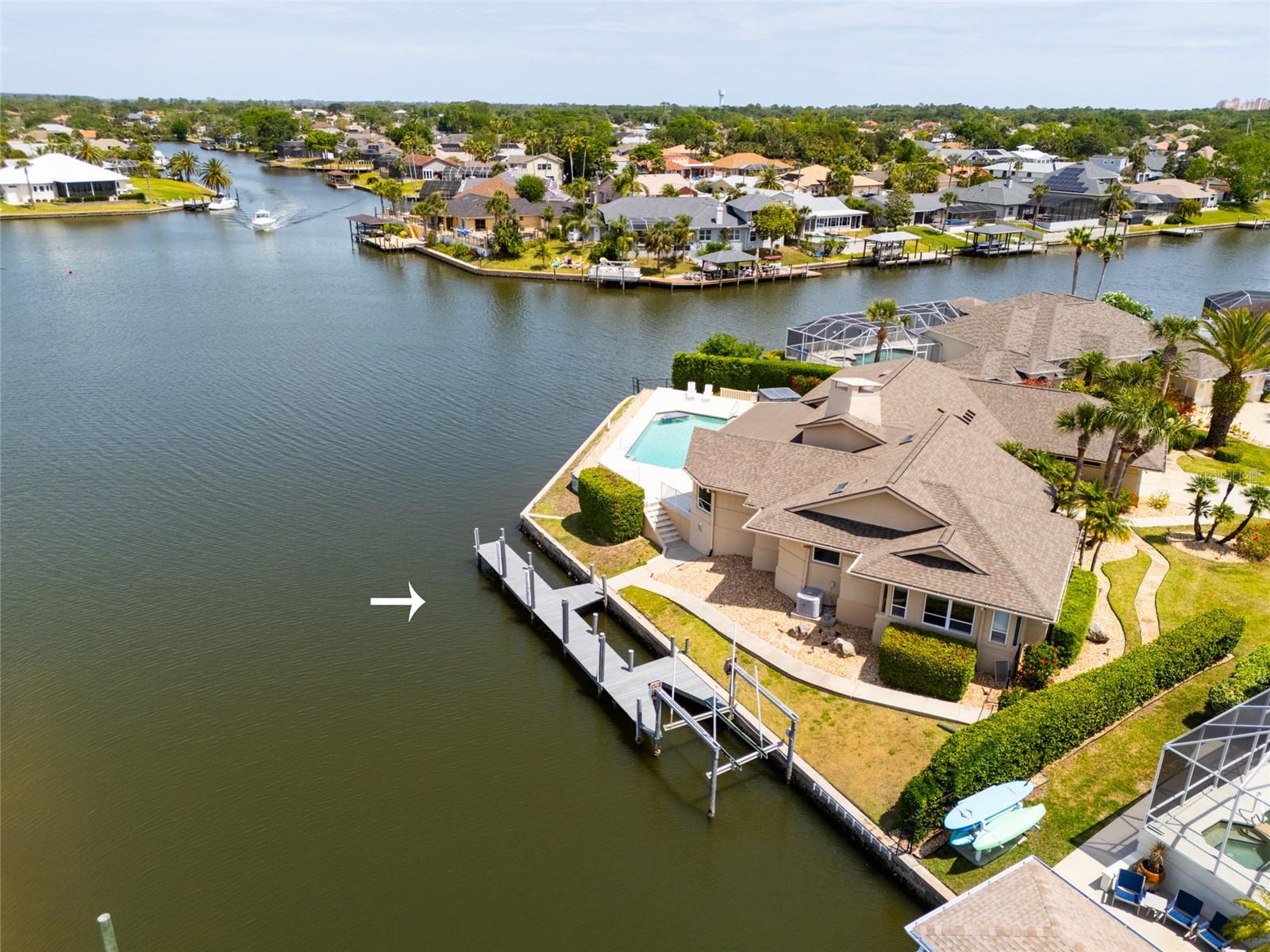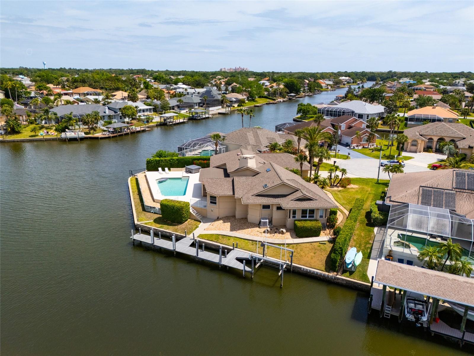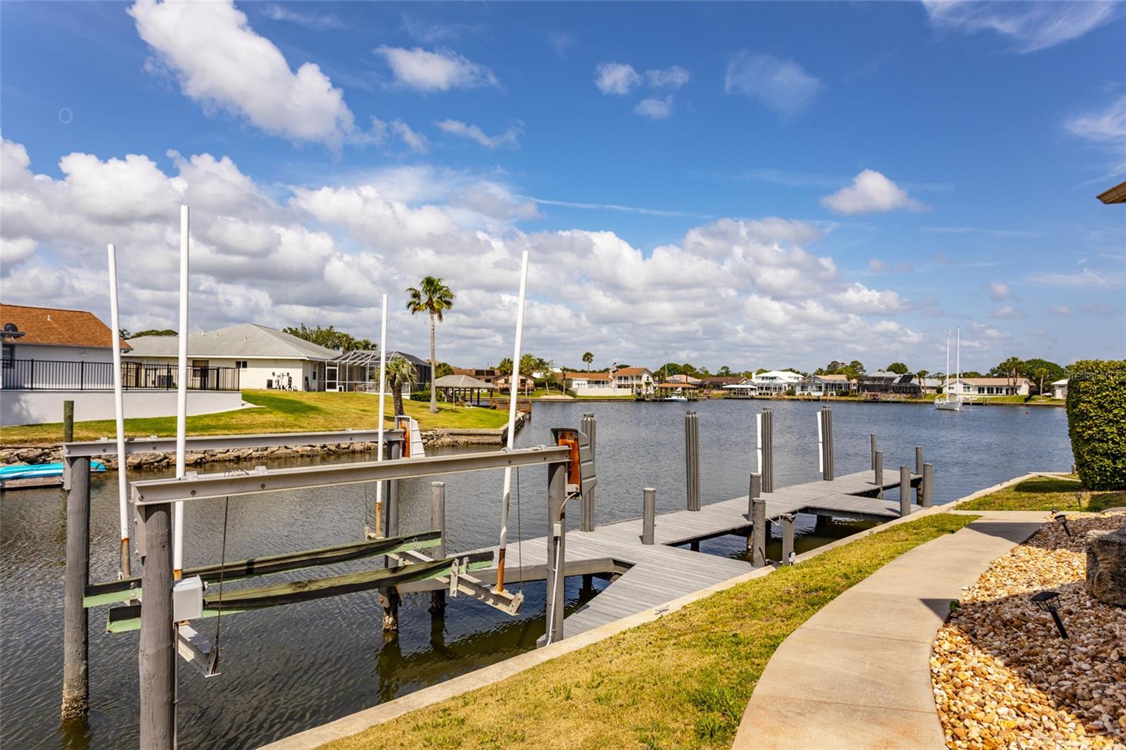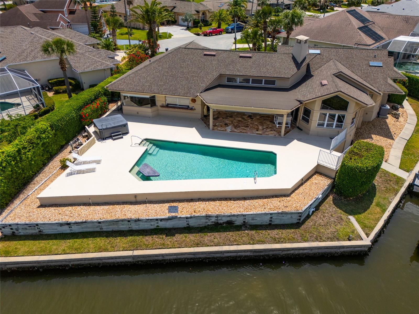 Under contract-accepting backup offers. "Reduced To Sell" "Sailboat Country" Located on Cul-de-Sac, Quiet Road. Up-Scale Community area. "C" Section on waterfront. Deep Water Country, Sits on Large Canal Water Basin, Full Boat Dock with Lift. Pool is in sun all day. Rear of house faces West for excellent sunsets and view of pool, deck and canal basin. Dolphin and Tarpon in the Basin. Interior Features: Primary Bedroom has a Walk-in closet for two with Built-in Drawers and shelves. Great room has a Stone Fireplace that rises to the vaulted ceiling. Ceiling Fans: 11, Eat-In Kitchen w/counter sitting, Nook area table with view of pool & canal. High Ceilings, Vaulted, Tall Flat Surface Counters consist of a mix of Tile and Laminated materials, Flooring: Tile, Tennessee Sandstone, Carpet, Vinyl in laundry room. Window Features: Anderson brand 8’ sliding doors and windows. Other Insulated Glass windows. Central Air Two Units, Zones for different controllable areas. Over-sized Laundry Room w/Lots of Cabinets, food storage pantry. Second Refrigerator & Freezer area. Up Scaled Landscape w/ Palms, Hibiscus flowers all stone beds no wood chips. Oversized Garage Very Larger Bi-Fold closet storage 18' x 2'-6" Walk-in Attic Storage space w/pull down staircase . High Anderson Windows to brighten up and ventilate. In-Wall folding Ironing Board. Stem wall superior Concrete foundation w/monolithic slab on grade. Covered front porch, Large rear covered porch, w/beautiful stone floor, very large pool deck. Large Benched seat w/ tiled table area. Massive Pool Deck overlooking Canal Basin. UPDATE: New bath remodel, tile shower, floors & new vanity w/ sink. New White Quartz kitchen counters, all new stainless steel appliances. Today's cost to rebuild this Home & Pool with this premium lot $1,650,000.