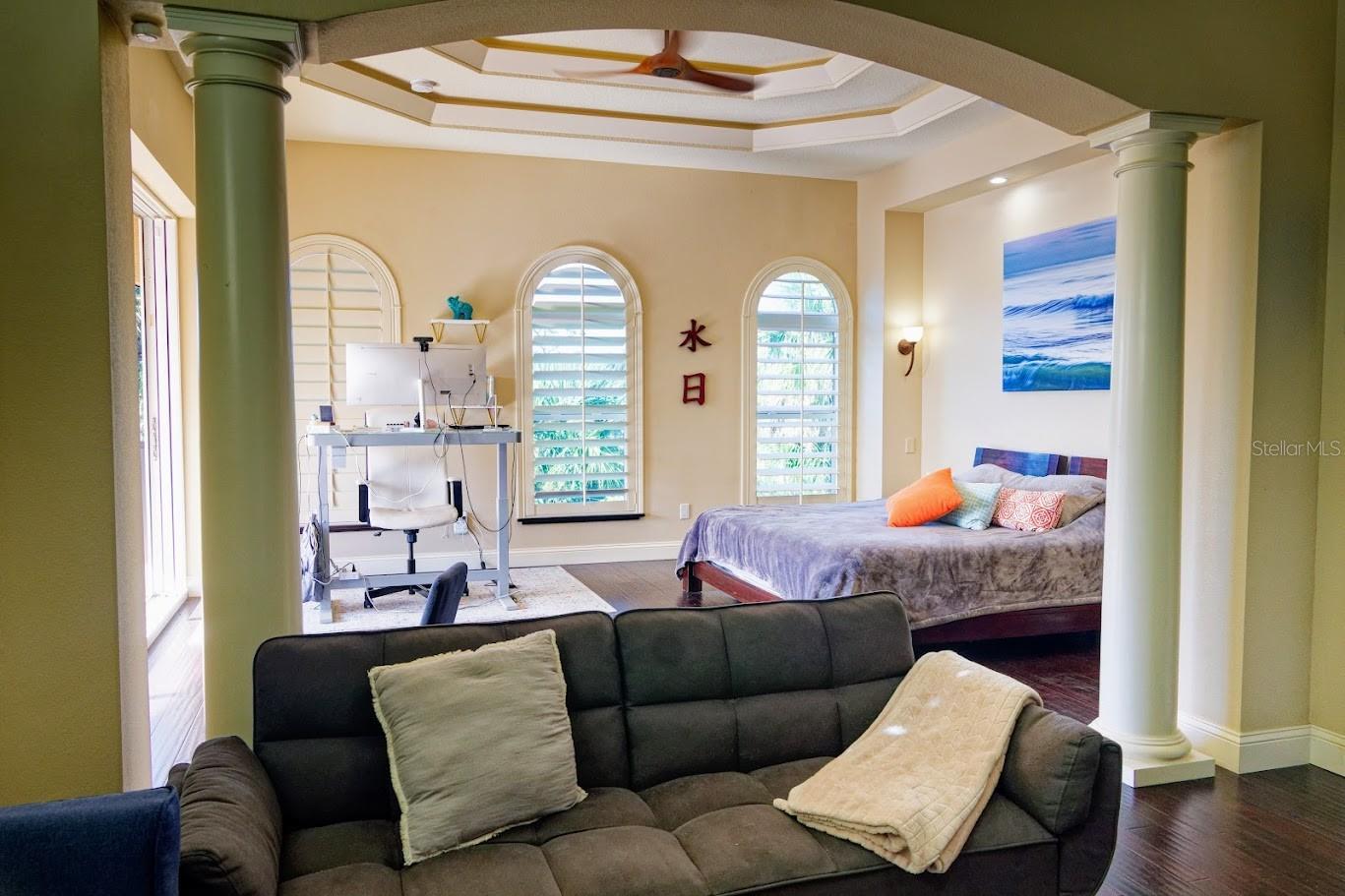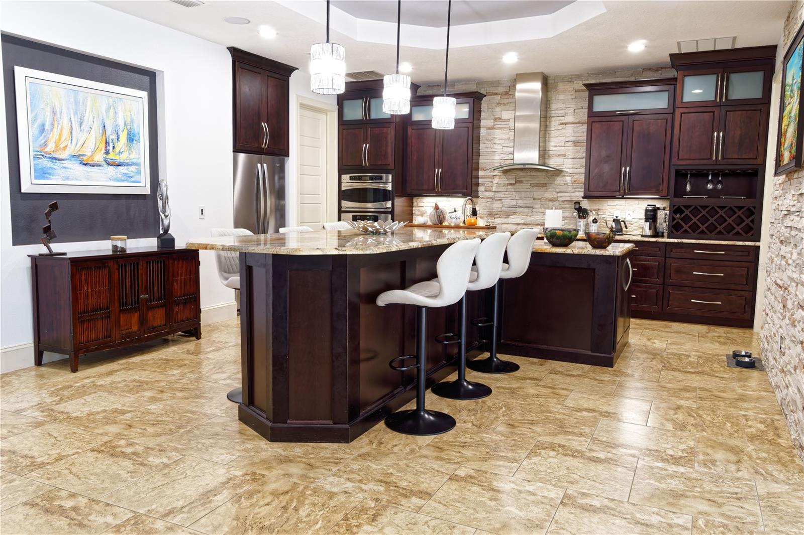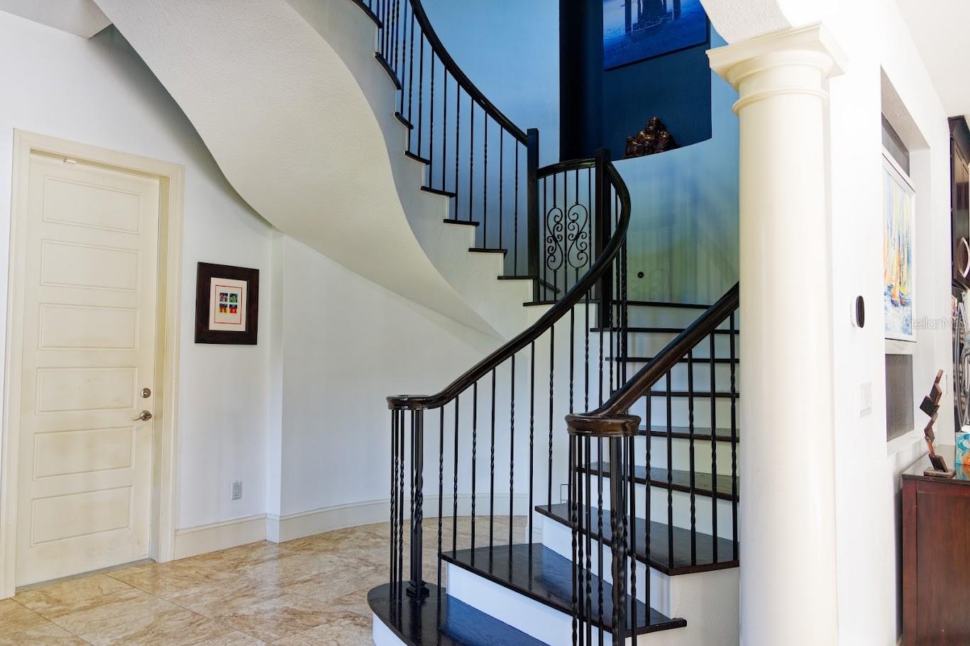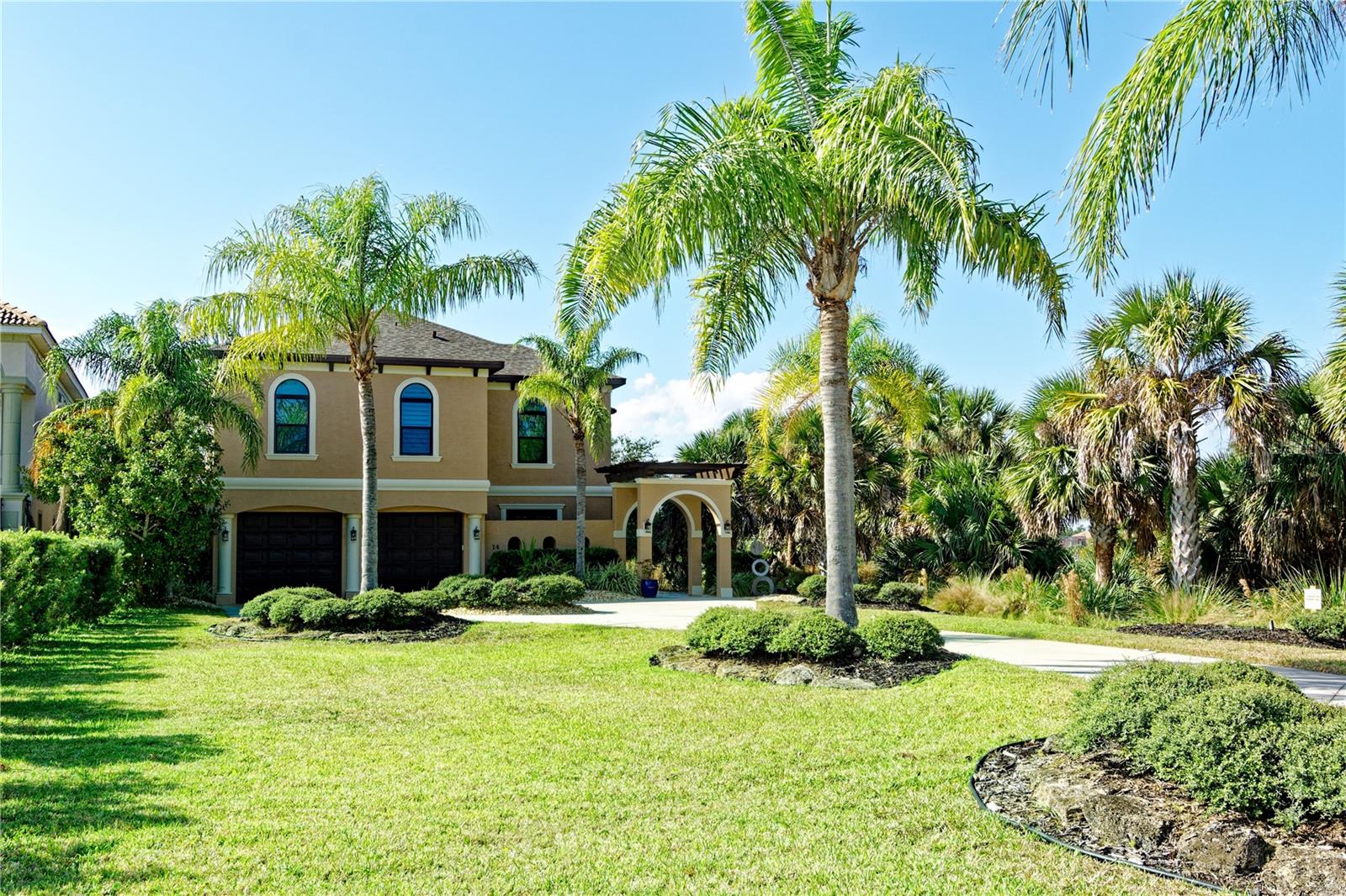 Discover one of the most private and picturesque homes in Palm Coast Plantation, set on a secluded waterfront lot overlooking the 125-acre lake. With modern upgrades, Mediterranean character, and exceptional outdoor living, 14 Heron Drive offers comfort, privacy, and a true Florida-lifestyle experience. A graceful arched breezeway welcomes you inside to a grand foyer and sweeping curved staircase. Sunlit living areas immediately draw your eye to the tranquil water views, accentuated by rich wood flooring and a dramatic stacked-stone feature wall with an in-wall fireplace. Large windows fill the home with natural light, creating a warm and inviting atmosphere from the moment you arrive. At the heart of the home, the kitchen features a substantial center island, granite counters, vent hood, pendant lighting, new induction cooktop (2025) and stainless-steel appliances. It flows beautifully into the main living spaces and the lanai, making everyday living and entertaining effortless. Just off the kitchen, the private dining room offers a warm, elegant setting - ideal for hosting memorable dinners, celebrating holidays, or enjoying intimate meals with family and friends. The owner’s suite is a true retreat with a tray ceiling, a relaxing sitting area, a spa-style bath with soaking tub, an expansive walk-in shower, dual vanities, and a customized walk-in closet. Upstairs, a spacious bonus room provides exceptional versatility. Whether used as an office, a gym, a reading room, or a quiet hobby space, it offers elevated views of the lake and a peaceful ambiance throughout the day. Stepping outside, you’ll find your own private oasis under the screened enclosure: a raised spa with serene water views, multiple covered lounging and dining areas with ceiling fans, and a private dock (2022, with power and water to the dock) ideal for fishing, relaxing, or launching a kayak. A second screened balcony upstairs provides another beautiful vantage point to enjoy the lake. This home has been thoughtfully updated for efficiency and peace of mind, including a new roof (2025), new downstairs A/C (2025), new hot-tub pump (2025), and a Rachio-controlled irrigation system that uses water directly from the lake. The home also features LED lighting throughout, fiber-optic internet, a whole-house water filtration system (under quarterly maintenance), and included garage shelving units for added convenience. With exceptional privacy, modern improvements, and stunning waterfront living, 14 Heron Drive captures the best of Palm Coast Plantation, beautiful, welcoming, and designed to enjoy every day.
