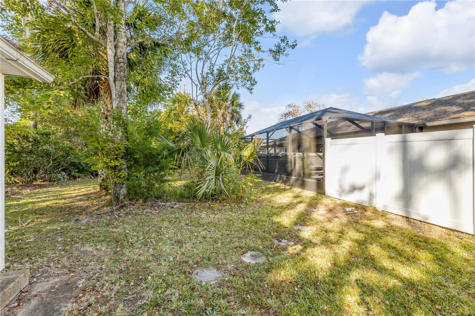 One or more photo(s) has been virtually staged. Welcome to this charming 3-bedroom, 2-bathroom home in Palm Coast, FL, offering 1,258 square feet of thoughtfully designed living space. Step inside to an open floor plan with vaulted ceilings, seamlessly connecting the dining area, living room, and kitchen. The kitchen is equipped with stainless steel appliances, solid surface countertops, and a window overlooking the backyard, making it a bright and inviting space for cooking and entertaining. Built-in archways add character and a sense of flow from room to room. The primary bedroom features a spacious en suite bathroom with a large vanity and a built-in shower and tub combo, creating a private retreat. Additional bedrooms are generously sized, providing comfort for family, guests, or a home office. Outside, enjoy a screened-in lanai overlooking a spacious and private backyard, complete with a large swim spa for relaxation and entertainment. The backyard also includes a convenient shed, perfect for storage or hobbies. Situated on over a quarter of an acre, the property offers room to enjoy outdoor living while maintaining privacy. This home is ideally located close to grocery stores, shopping, golf courses, and major highways, with popular beaches just 10 miles away, offering the perfect balance of convenience and leisure. With its open design, thoughtful features, and outdoor amenities, this Palm Coast home is ready to welcome its next owner. Mortgage savings may be available for buyers of this listing.