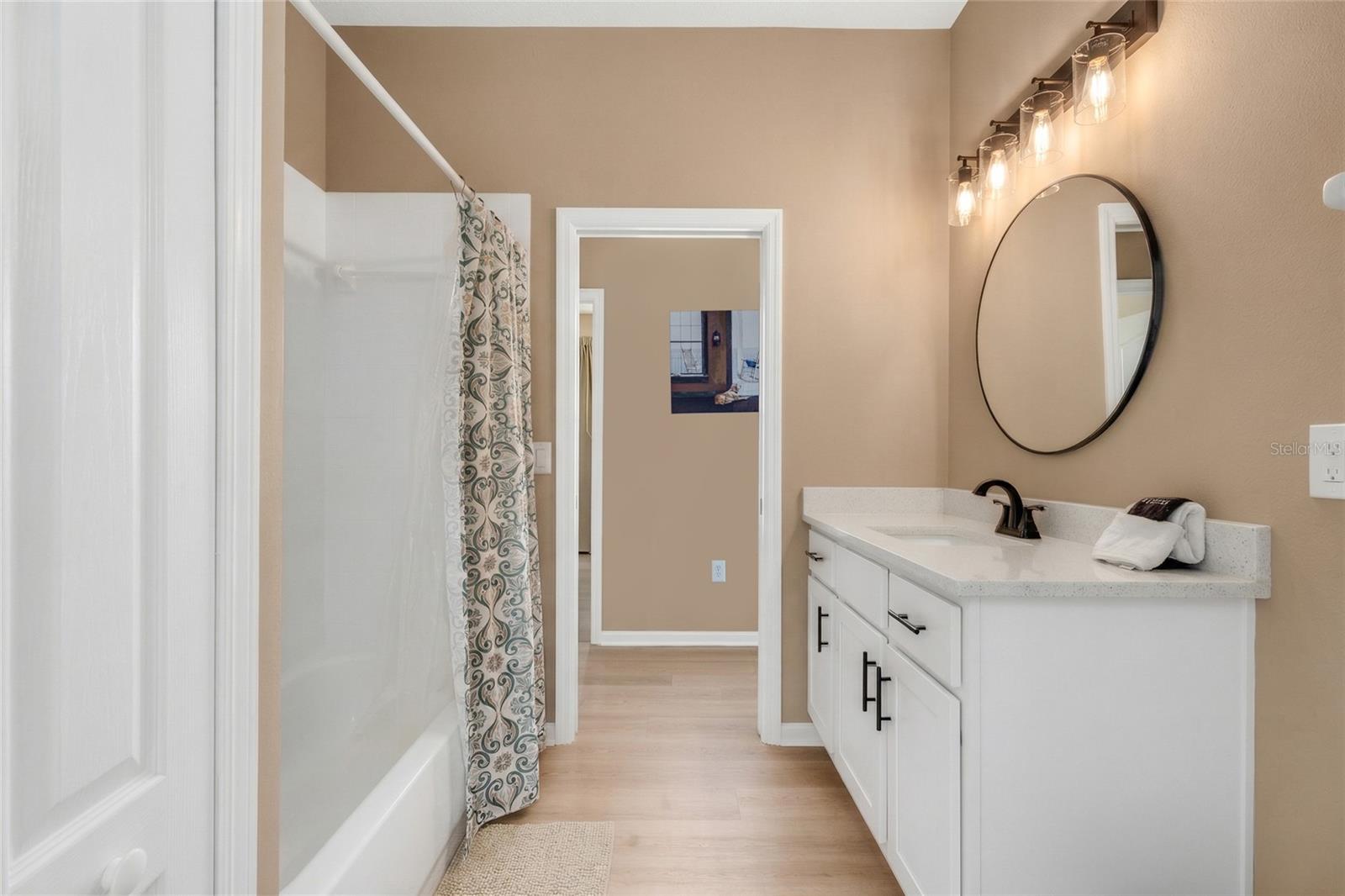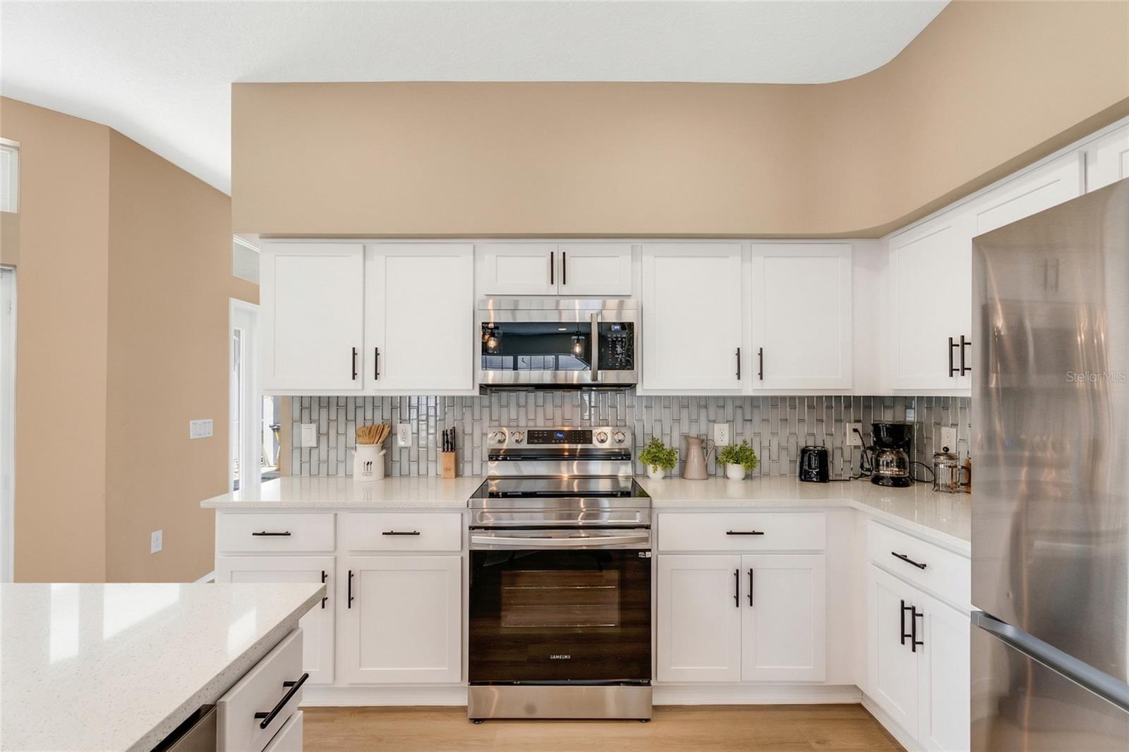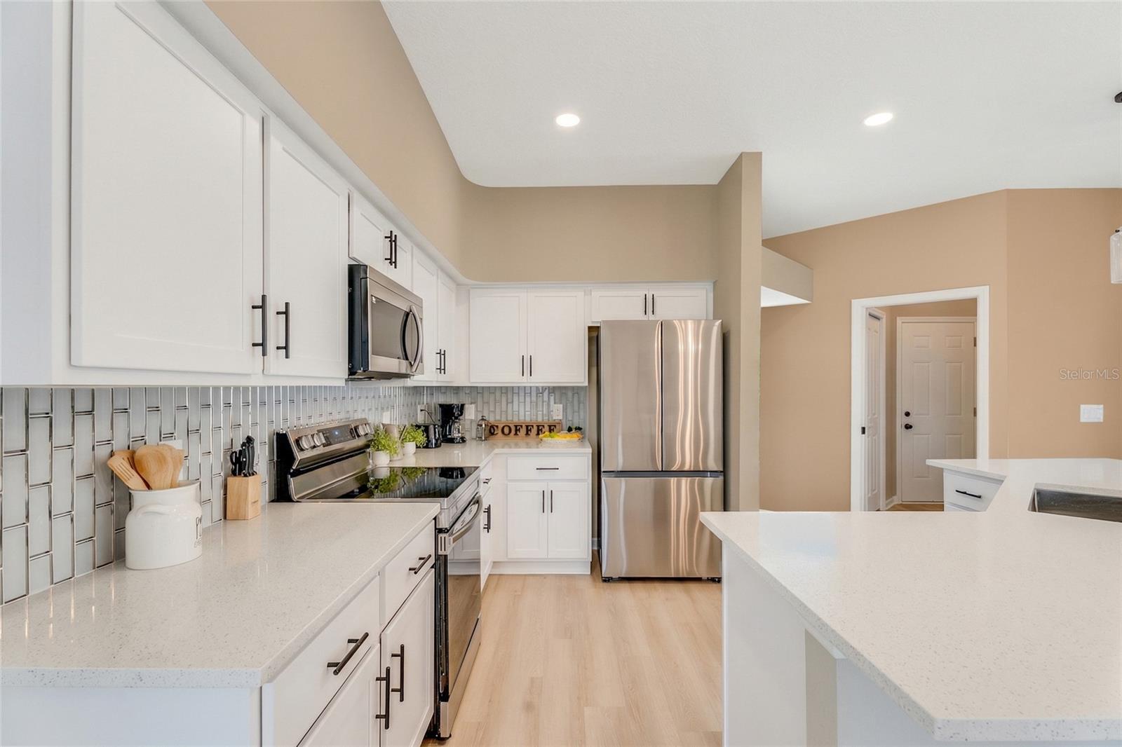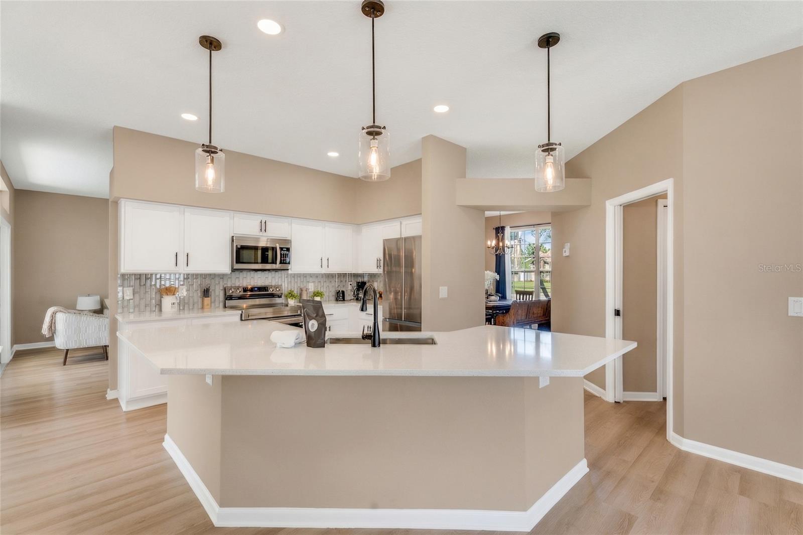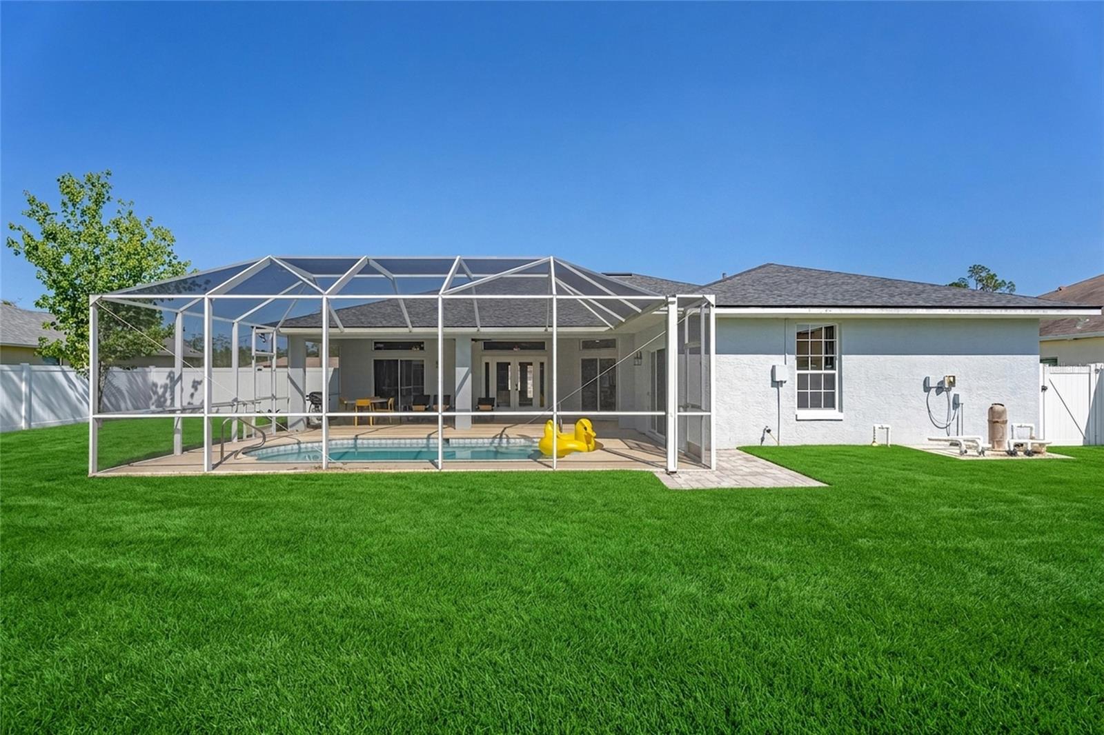 Tastefully renovated 3-bedroom, 2-bathroom concrete block home with a screened-in pool, offering the perfect blend of style and convenience. Nestled in the heart of Palm Coast with no HOA or CDD fees, this property is a rare find. The open-concept floor plan boasts vaulted ceilings and a seamless flow, ideal for modern living and entertaining. The fully renovated kitchen features solid wood shaker cabinets, quartz countertops, brand-new stainless steel appliances, and a stylish glass tile backsplash. Enjoy peace of mind with a brand-new roof and AC, as well as fresh interior and exterior paint. The pool area has been revitalized with new plaster, pump, and lighting, creating a private oasis for relaxation and fun. Inside, the home is updated with new luxury vinyl plank flooring, modern plumbing fixtures, and lighting throughout. This home is a must see!